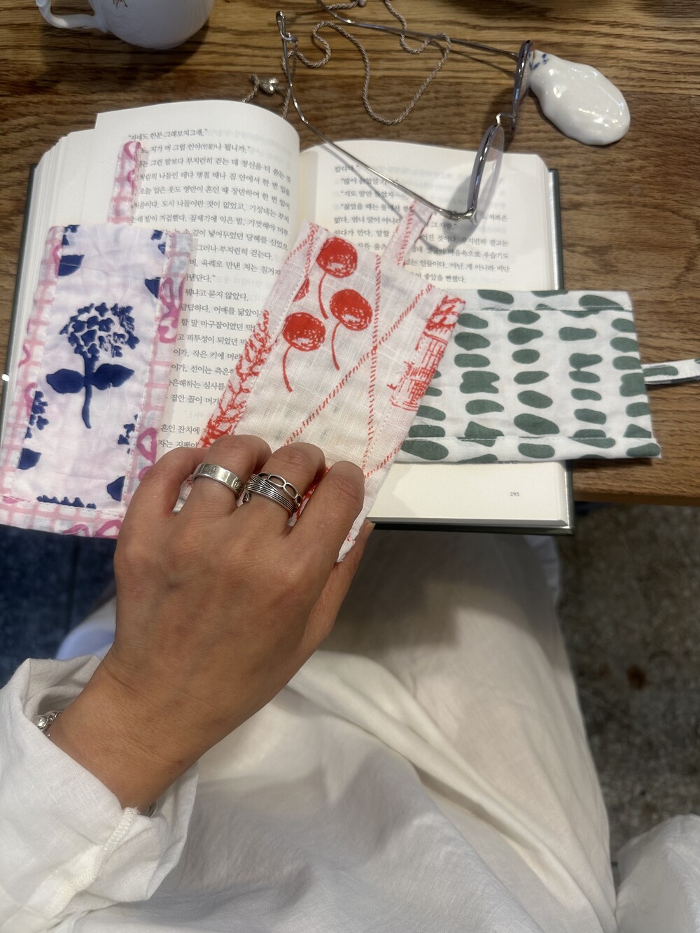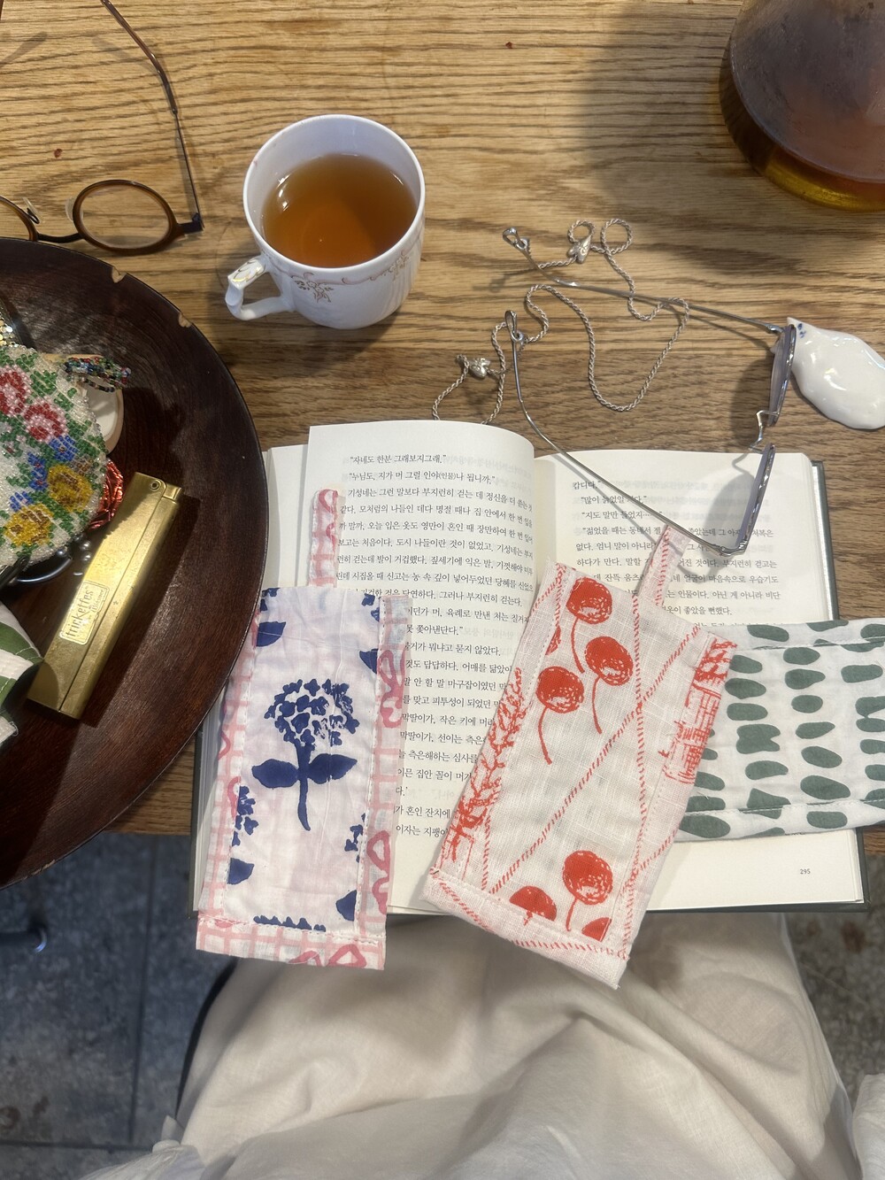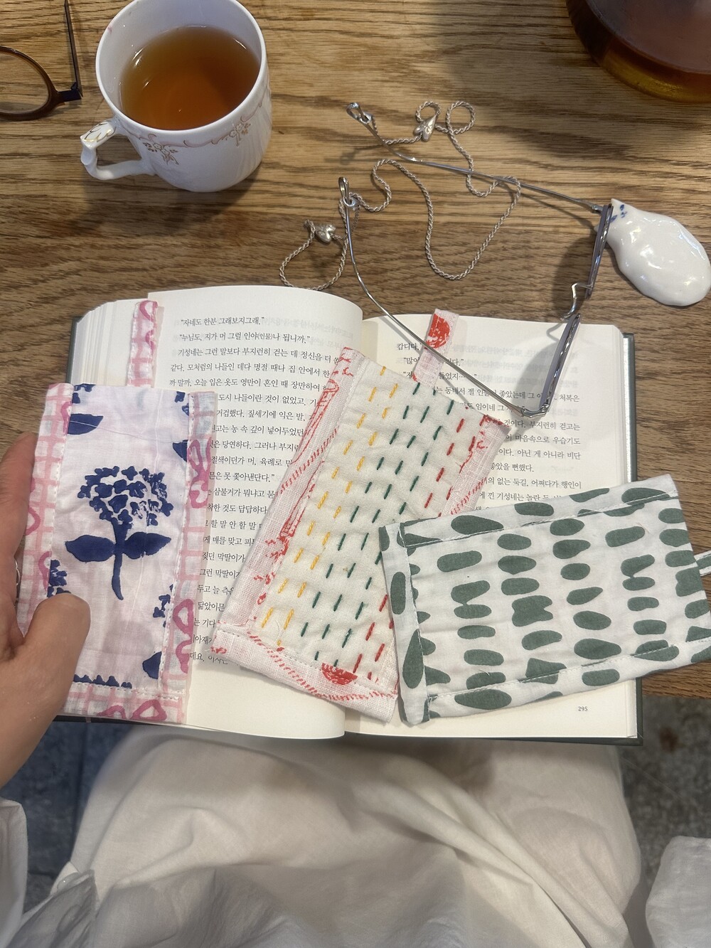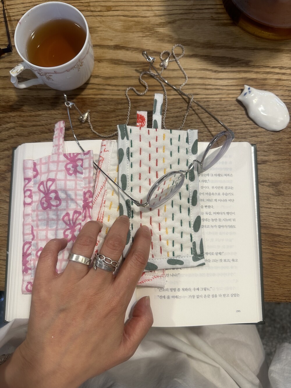 책갈피 3종과 지퍼 파우치 샛트.책갈피는 랜덤이에요.