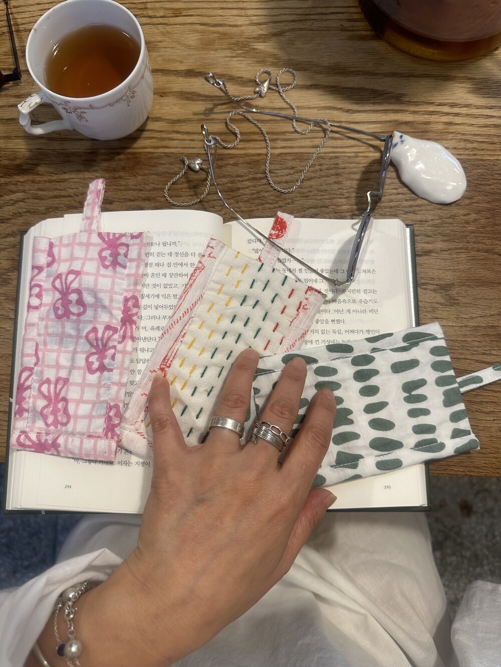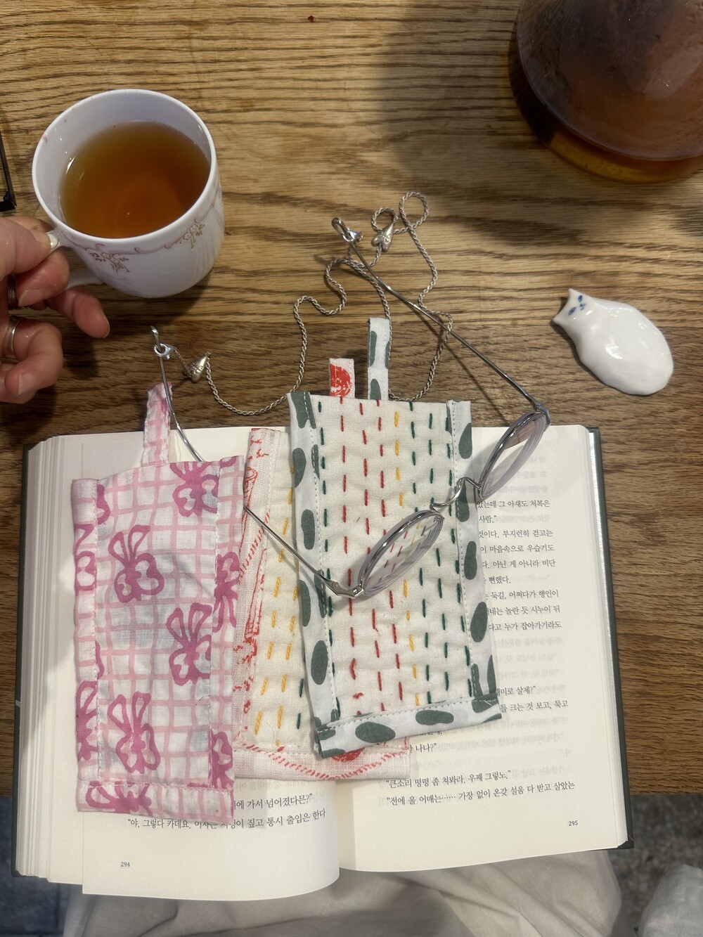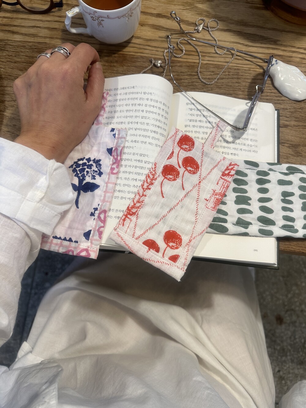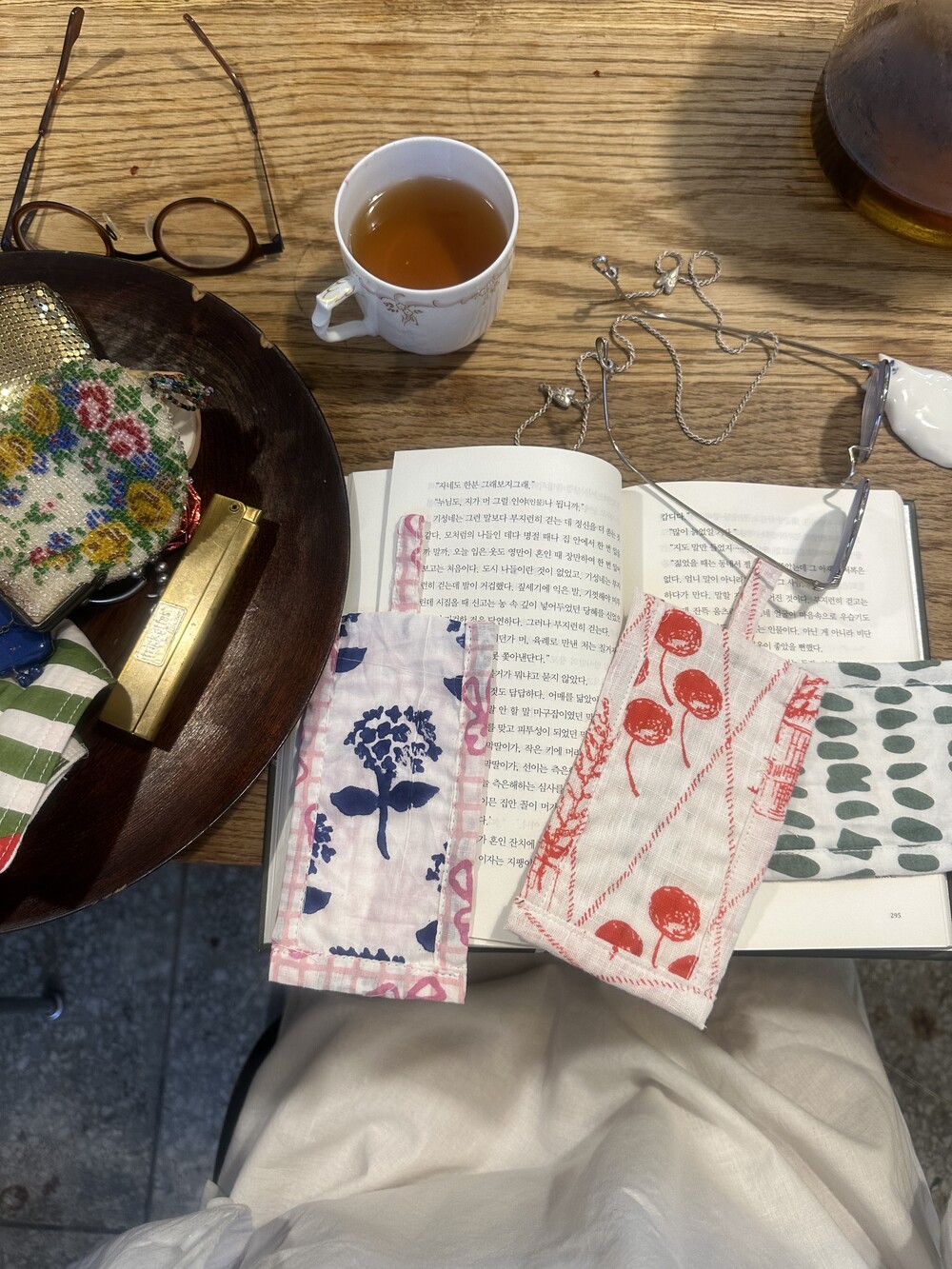 책갈피 3종과 지퍼 파우치 샛트.책갈피는 랜덤이에요.