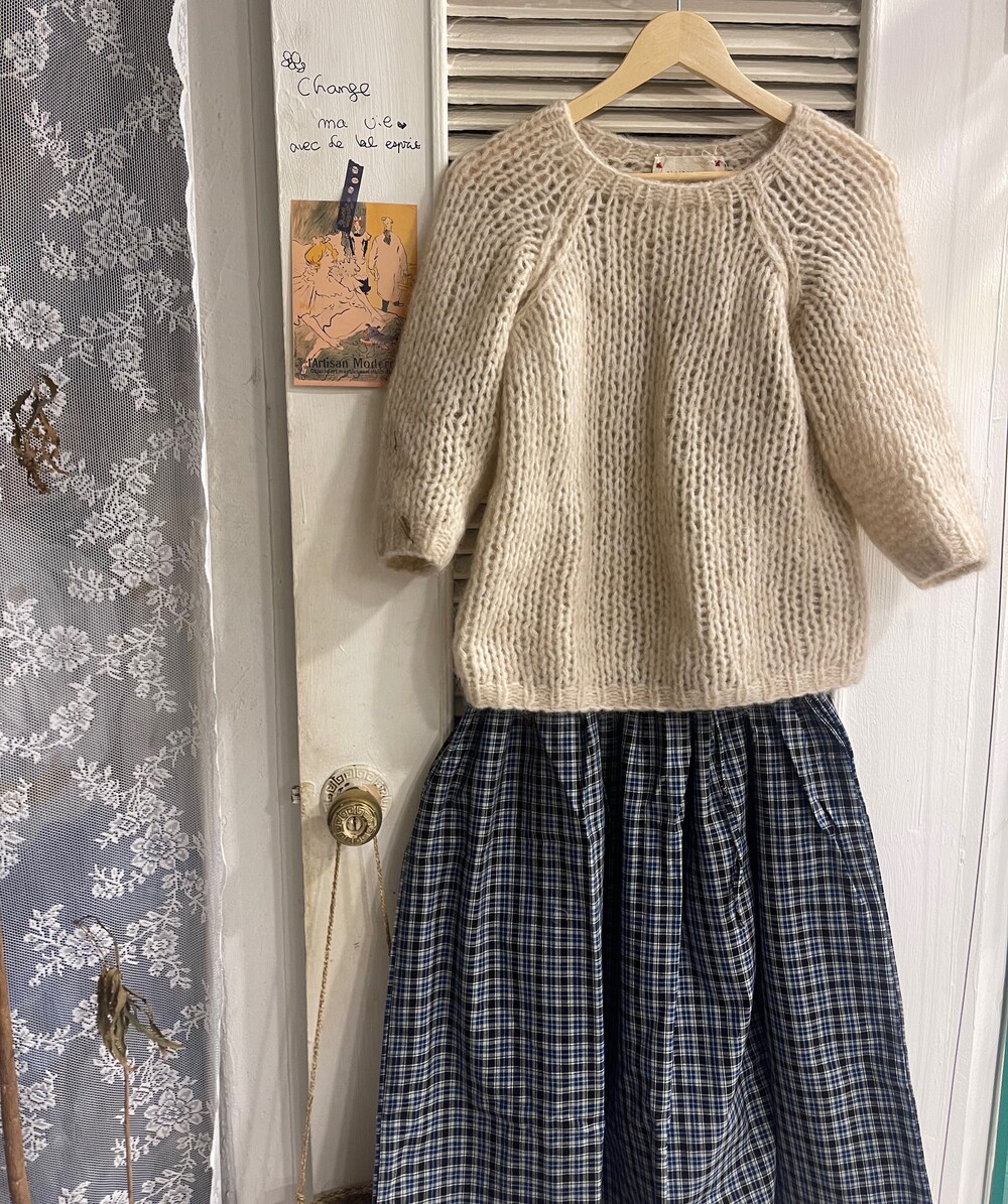 체크원단으로 울과 면이 섞인 예쁜 스커트에요.