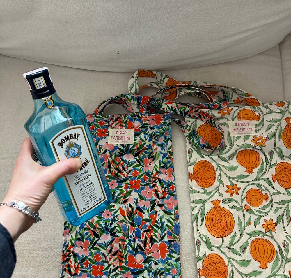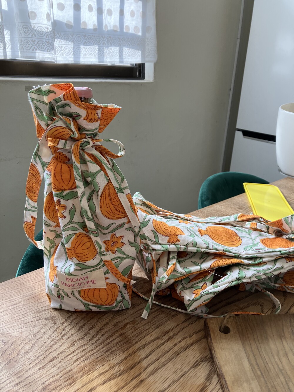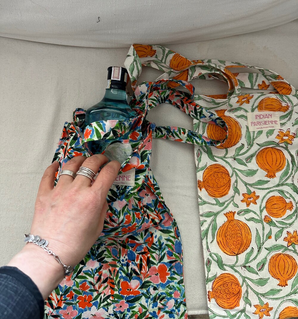 톡톡한면의 야수파느낌의 와인가방,두병을 넣으실수있도록 가방안에 가방 형태이고 일반 에코백 사용하시기도 좋아요.야수파는 품절입니다.