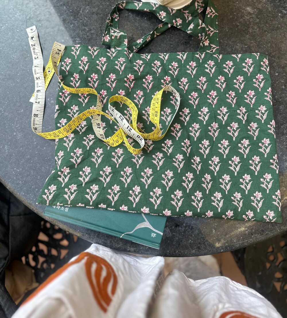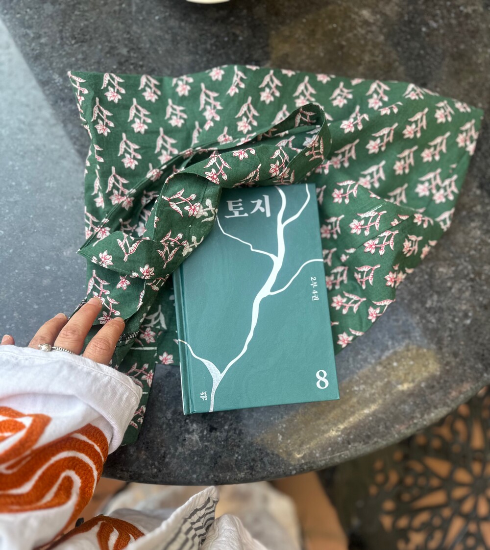 책 넣고 다니기 좋은 사이즈의 가방이에요, 주문제작으로 삼일에서 오일 소요되요❤️ 31*41사이즈에요.홑겹 가방이지만 너무 후들거리지 않는 사이즈이고 단순변심 힘들어요❤️