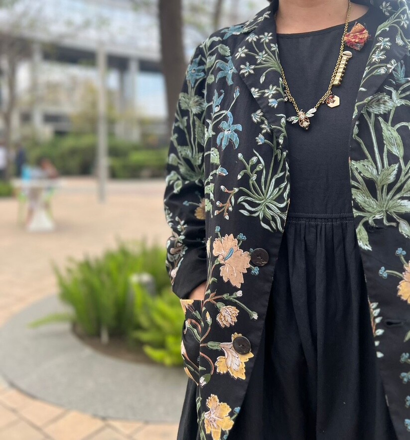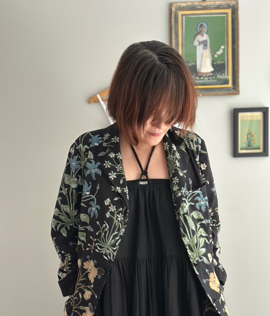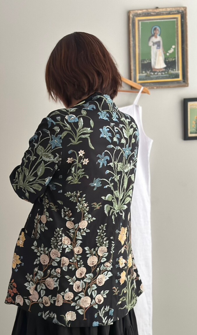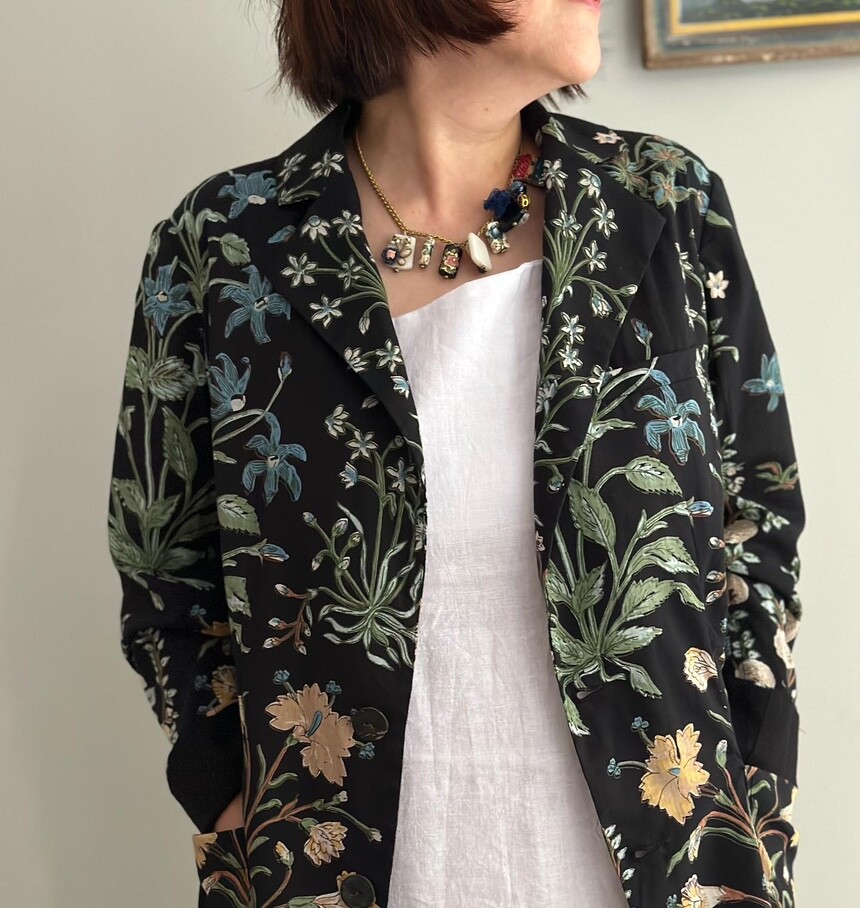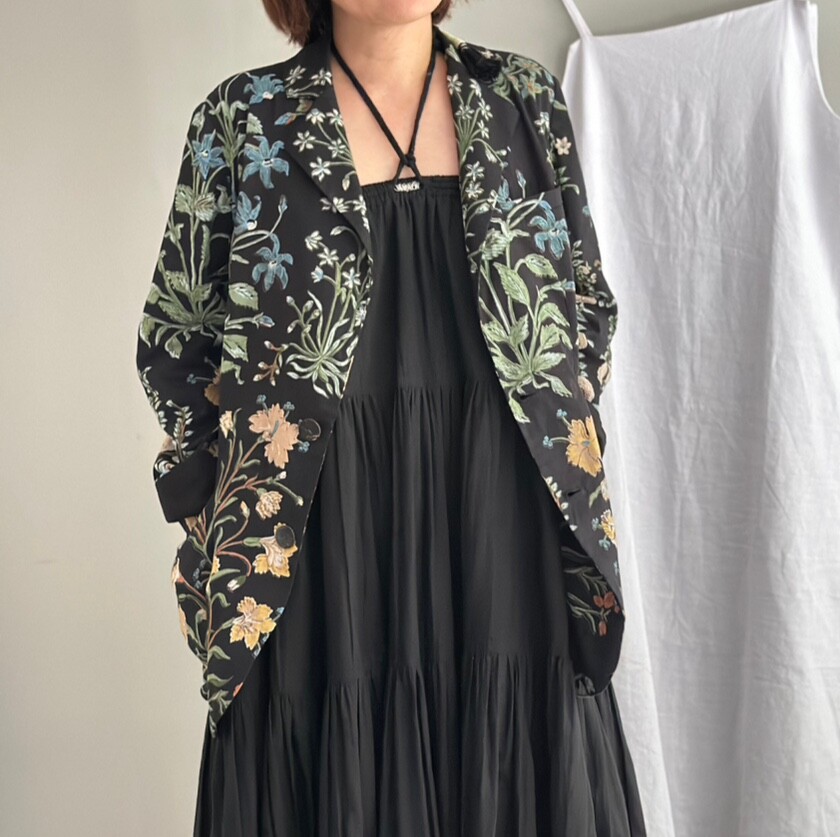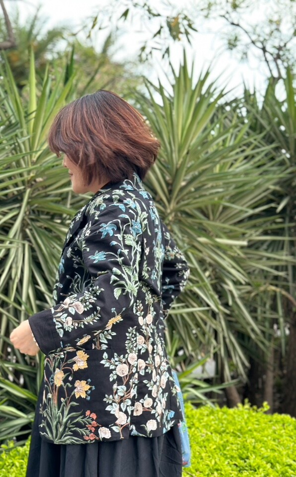민화에서 본 꽃 자켓 블랙