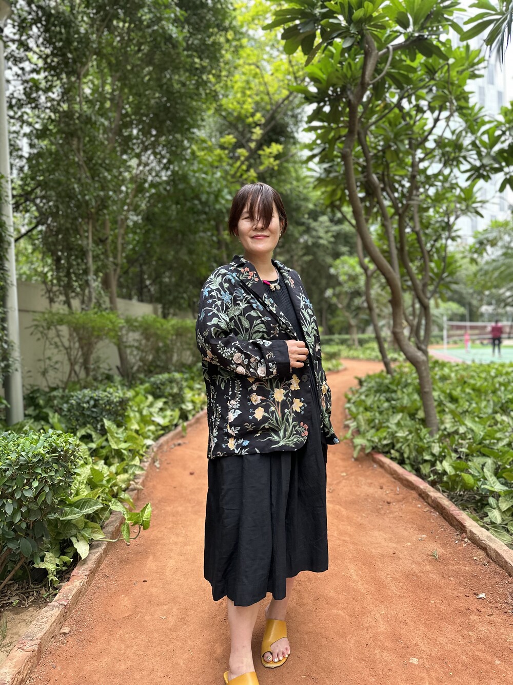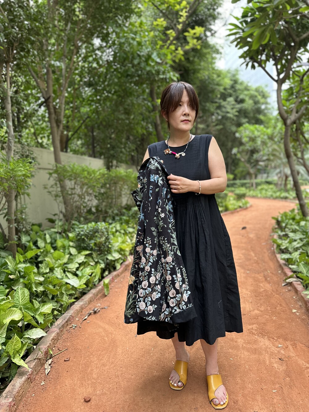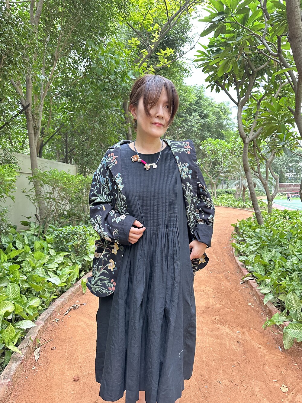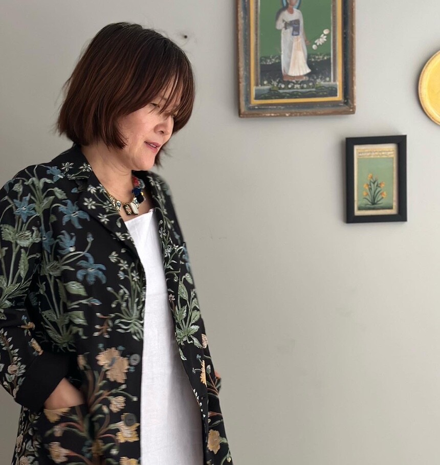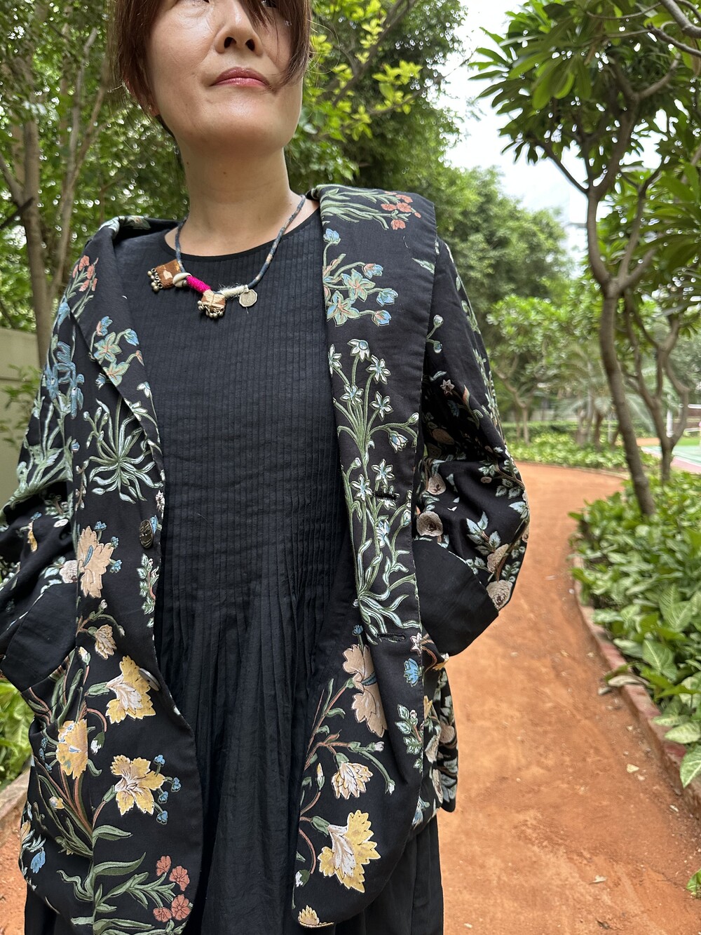 민화에서 본 꽃 자켓 블랙