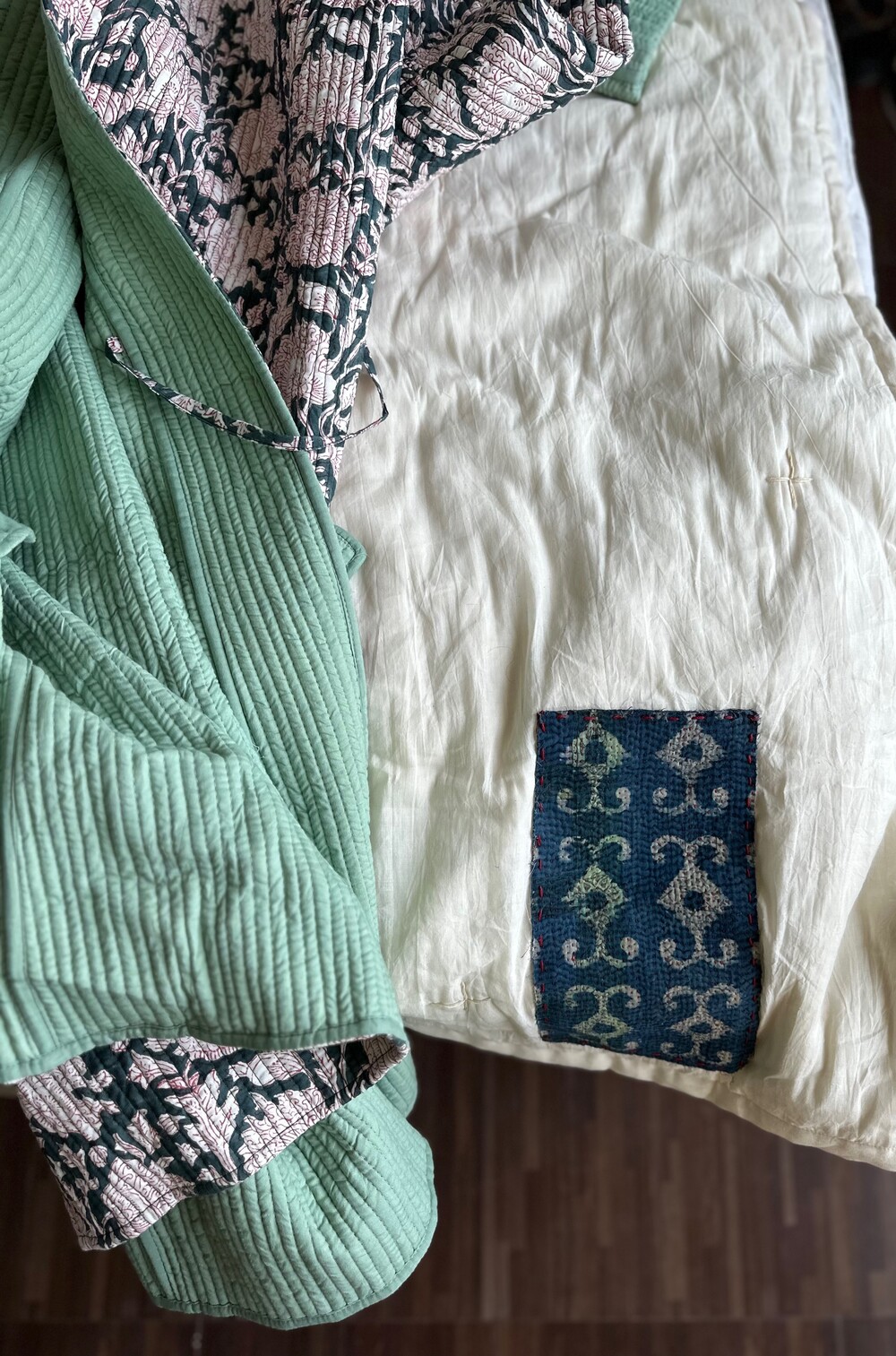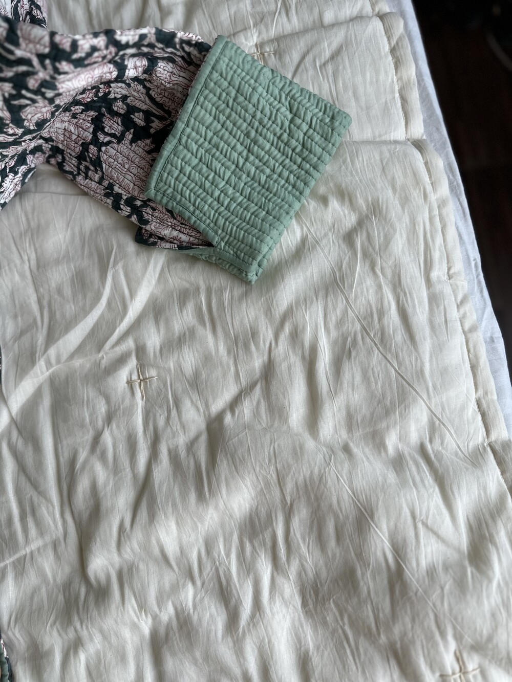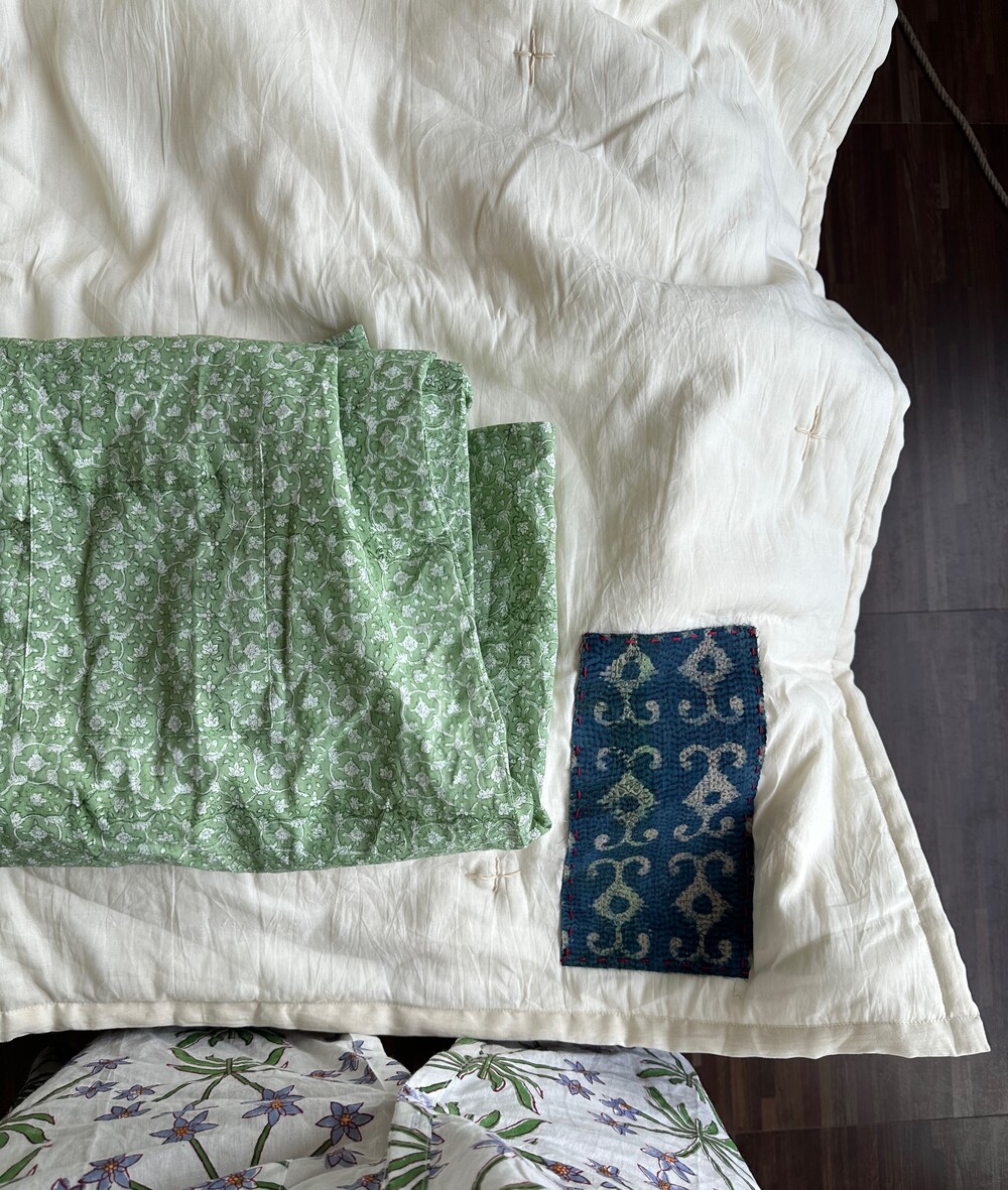 목화솜을 얇게 넣은 패드,스프레드에요. 전 겨울에 장판 안쓰고 요걸 사용하는데 넘 따뜻해요 포근하고.