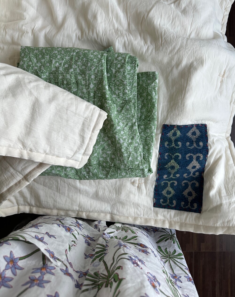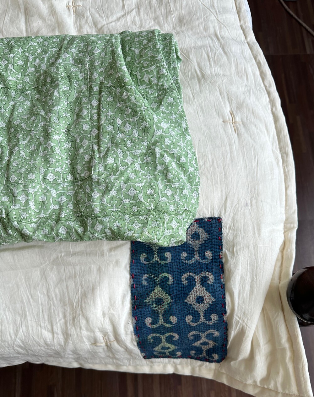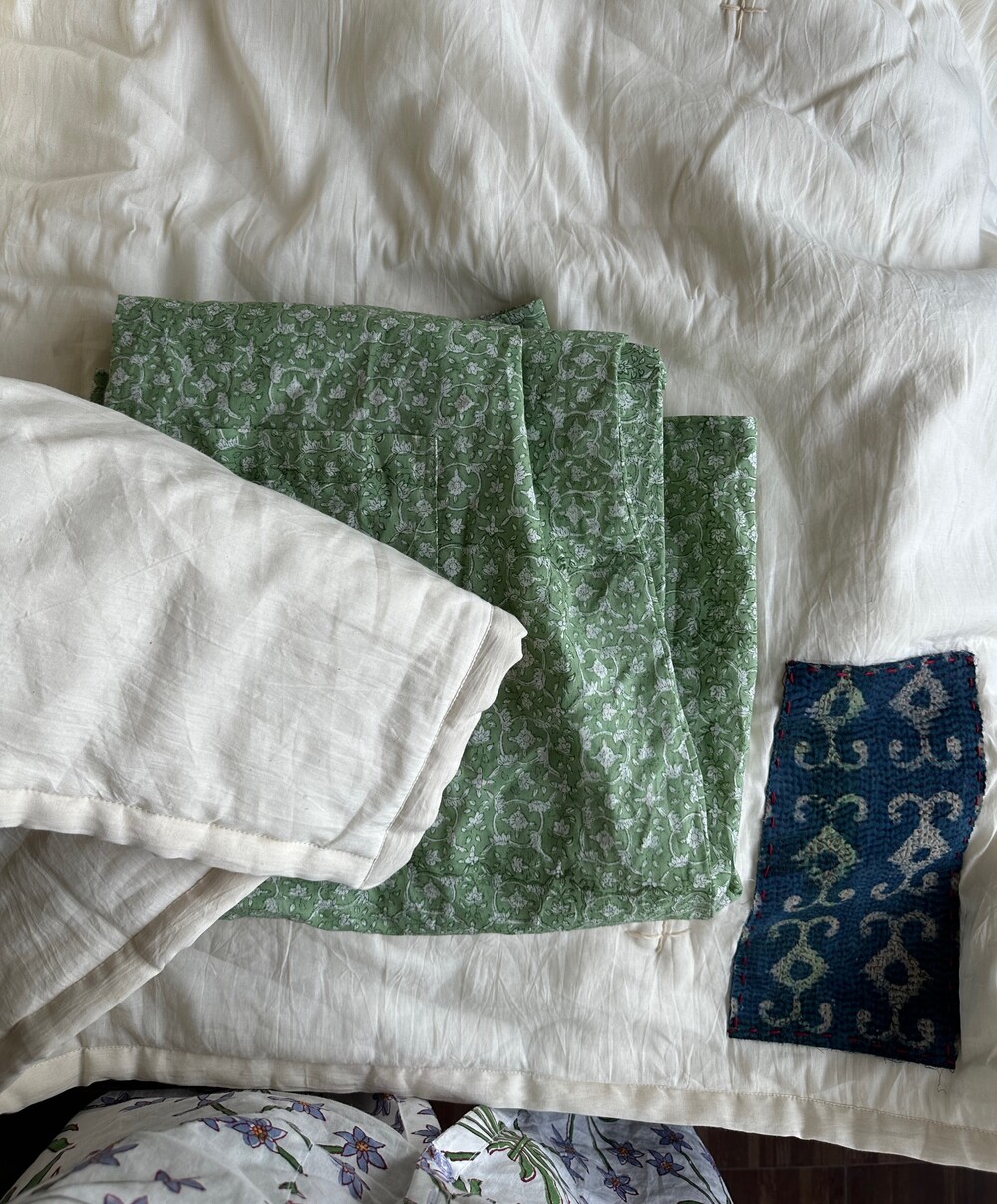 목화솜을 얇게 넣은 패드,스프레드에요. 전 겨울에 장판 안쓰고 요걸 사용하는데 넘 따뜻해요 포근하고.