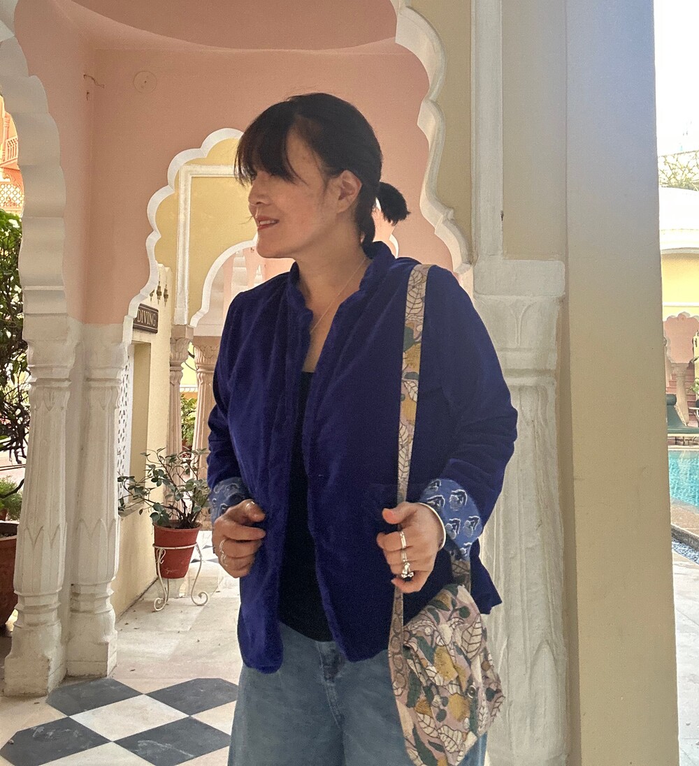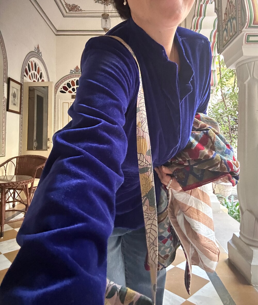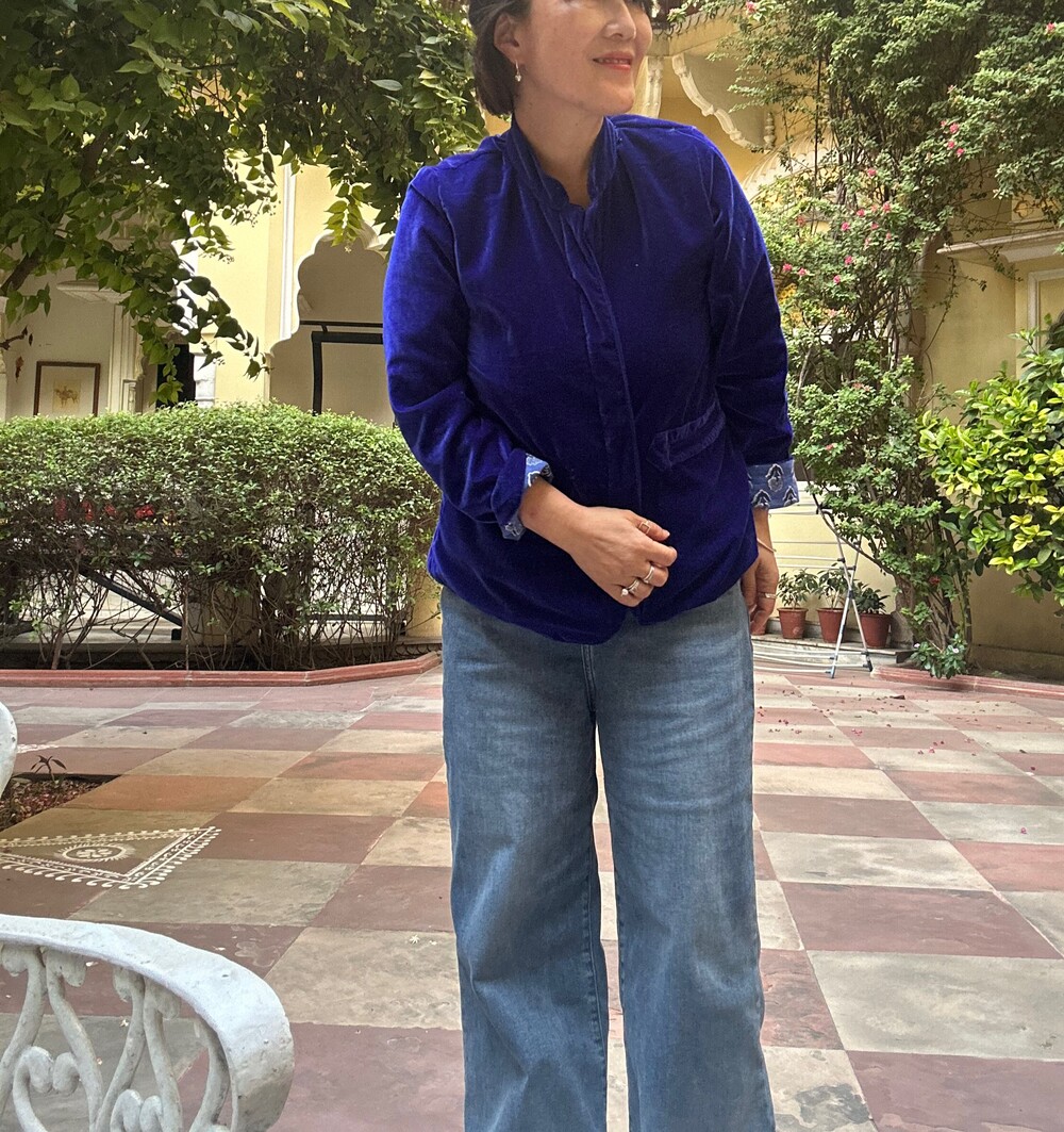 로얄블루 면 벨벳 자켓이에요