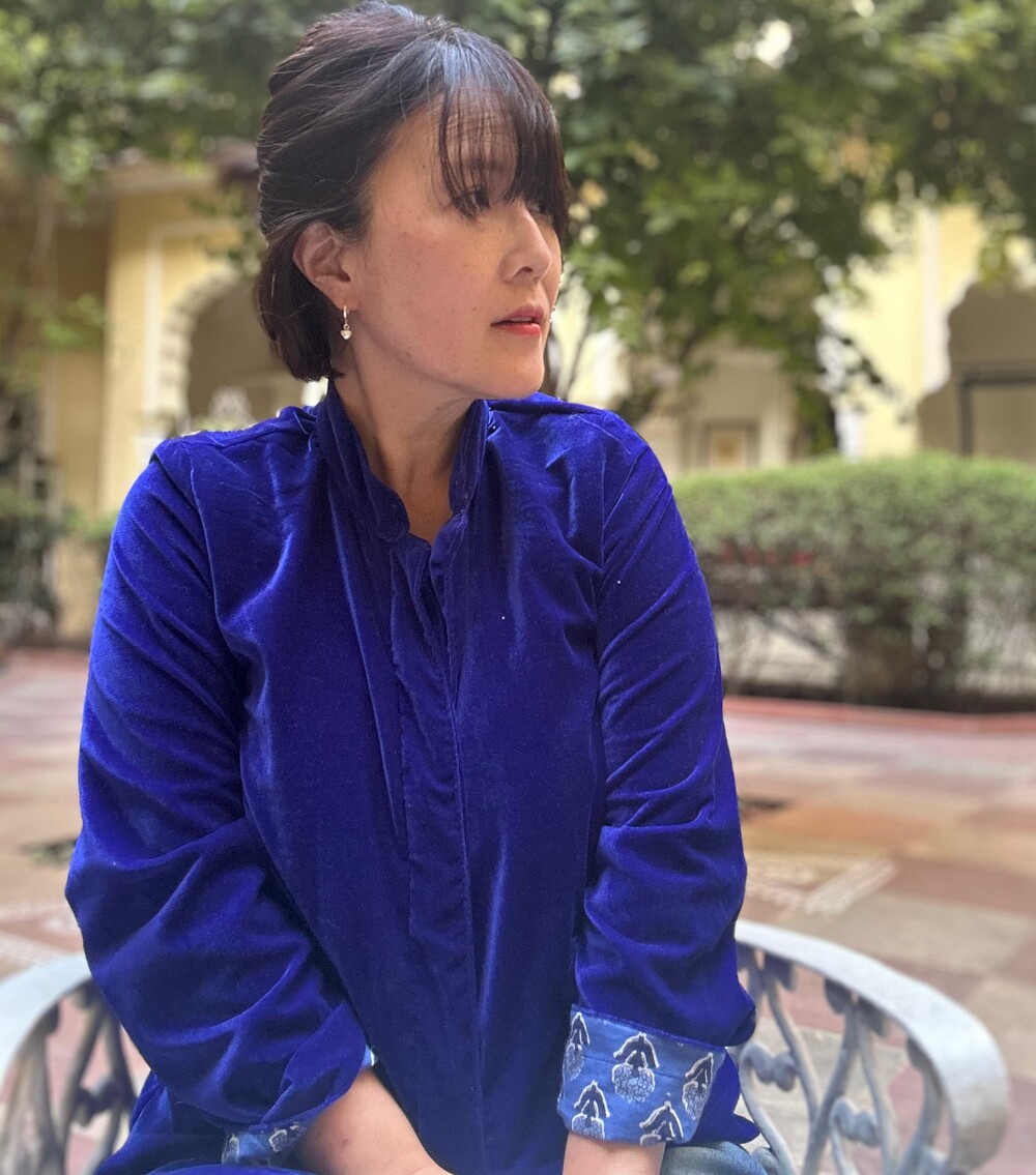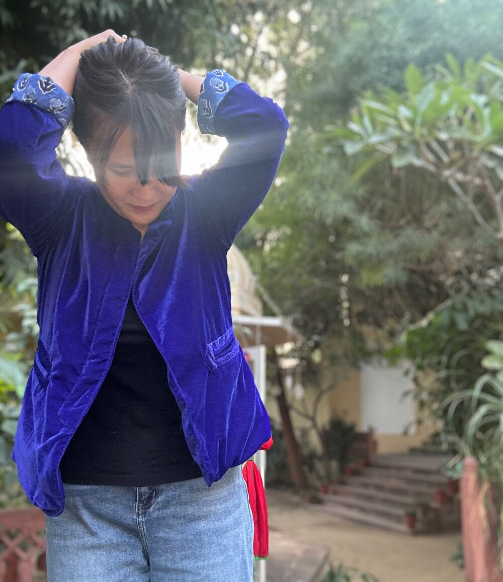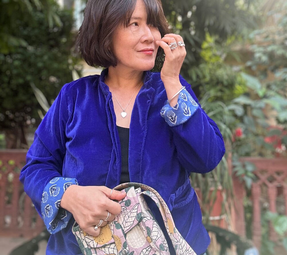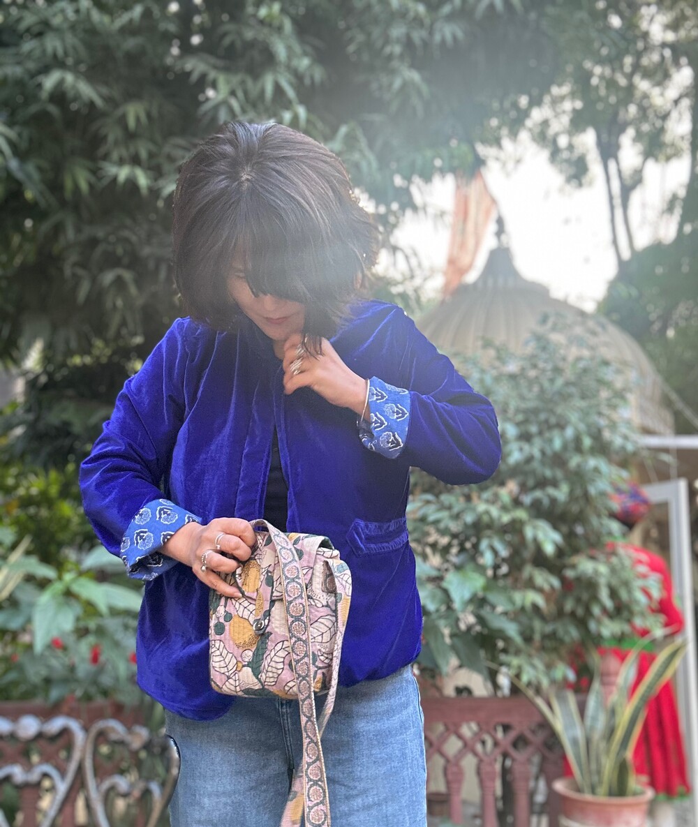 로얄블루 면 벨벳 자켓이에요