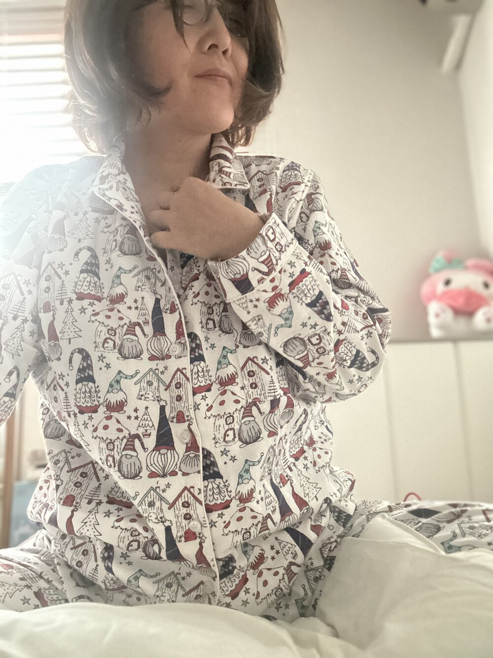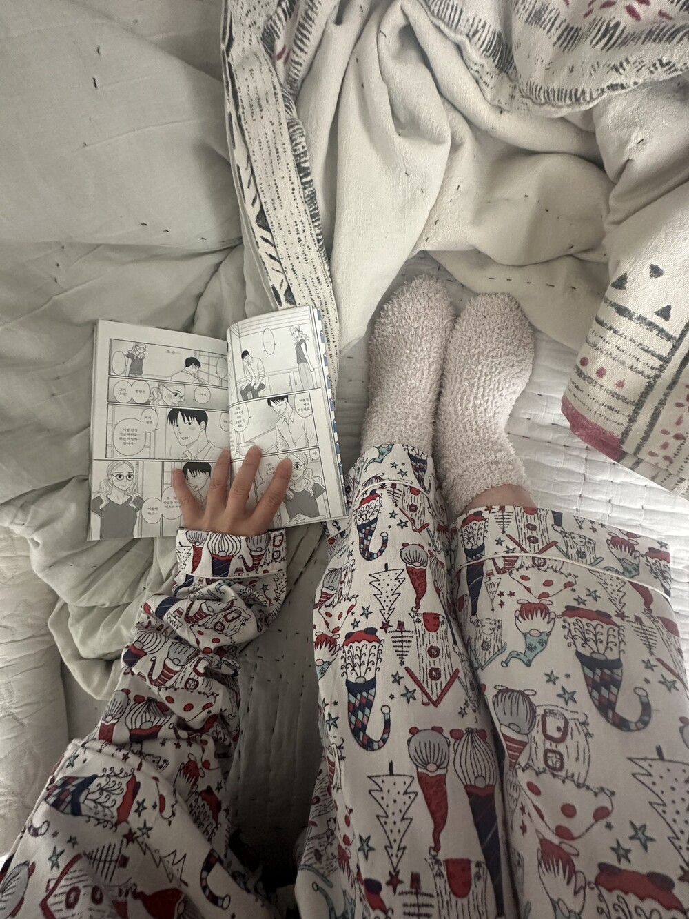 연말분위기 겨울분위기 완전 홈 스위트 홈 파자마에요.이런 잠옷을 입고 나홀로 집에 이런거보면서 붕어빵을 먹고 겨울을 보내야는게 늘 저의 연말목표에요. 그래서 좀 더 톡톡하고 따뜻한 소재로 만들었어요 .