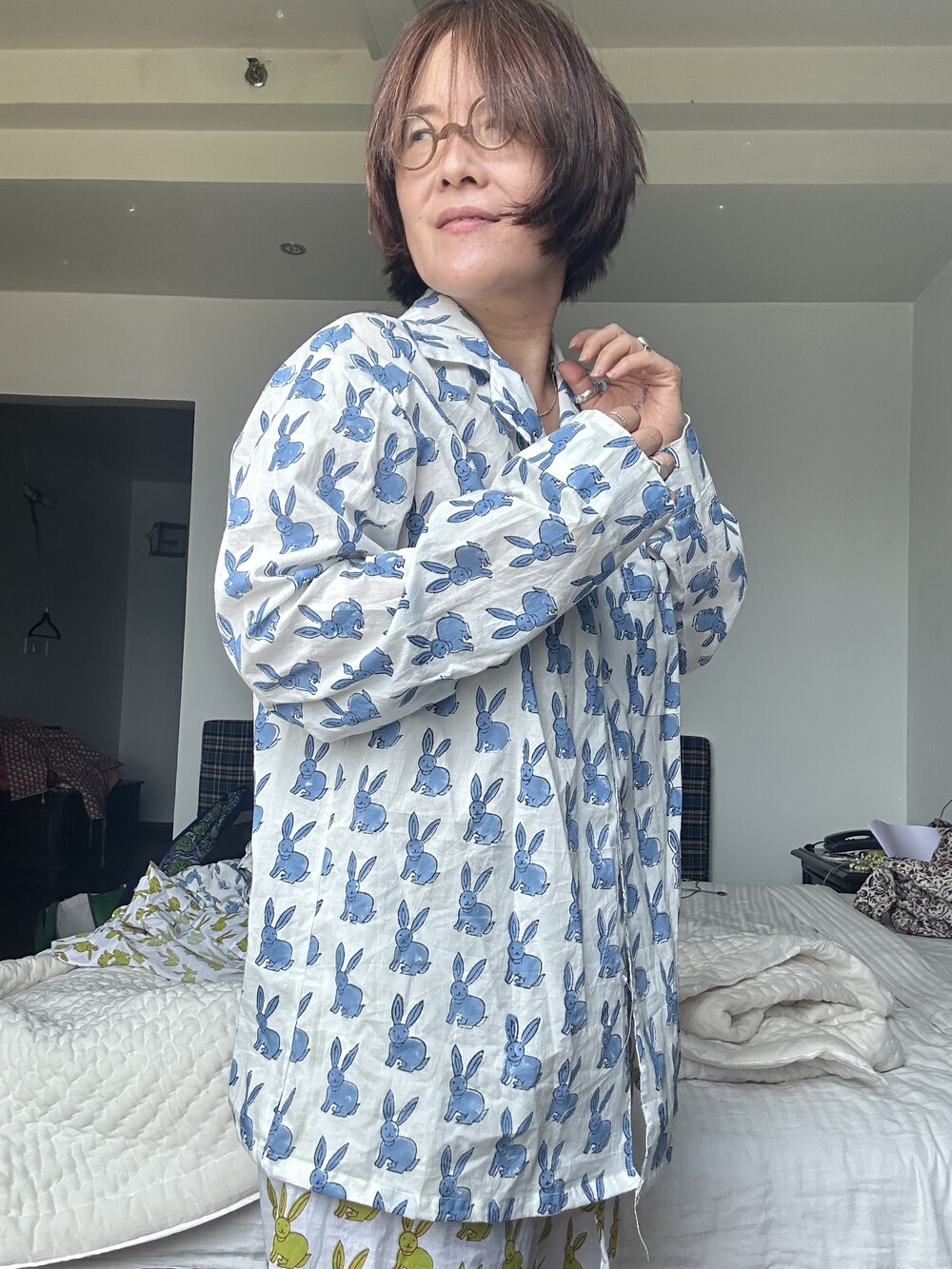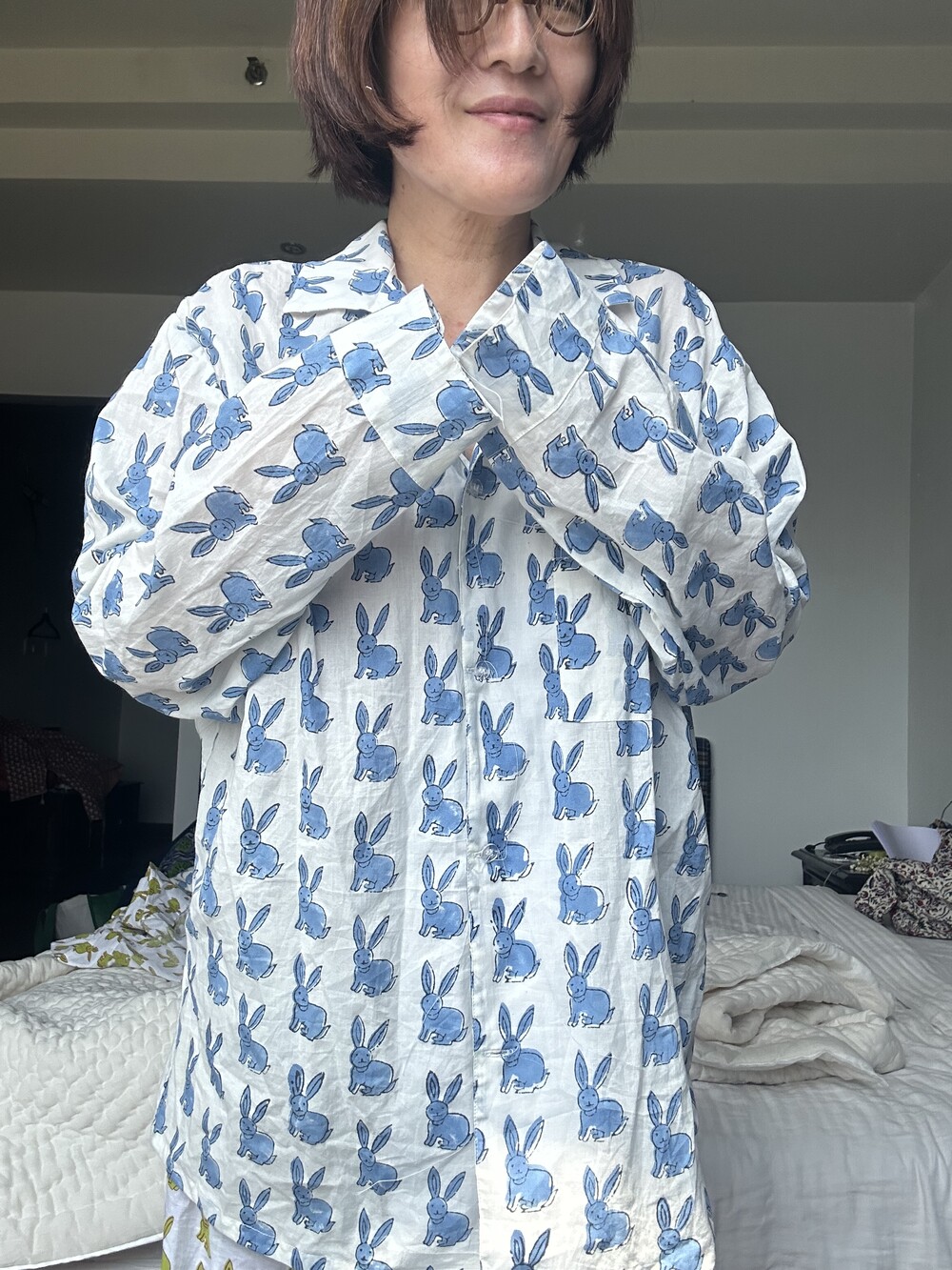 남자 잠옷은 가슴단면 60센티이고 상의 기장이 69-70이고 하의는 허리 33 고무줄이니 왕 넉넉하고요,기장은 83센티에요!