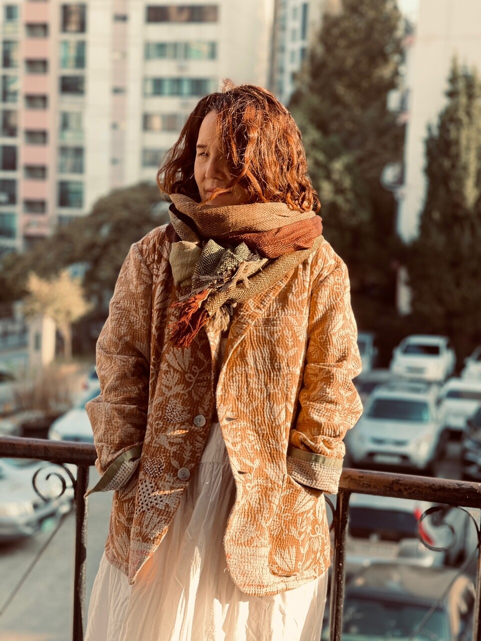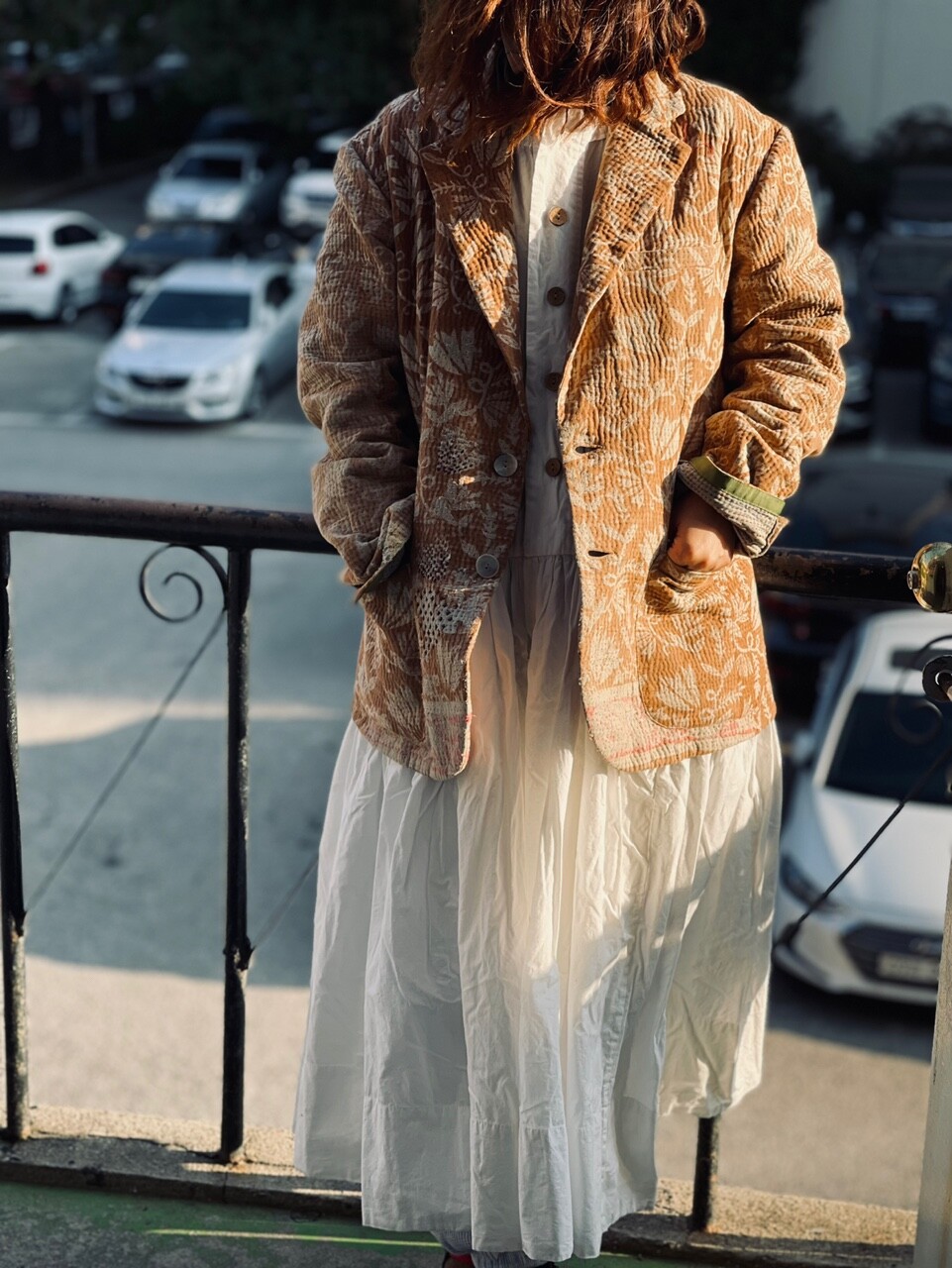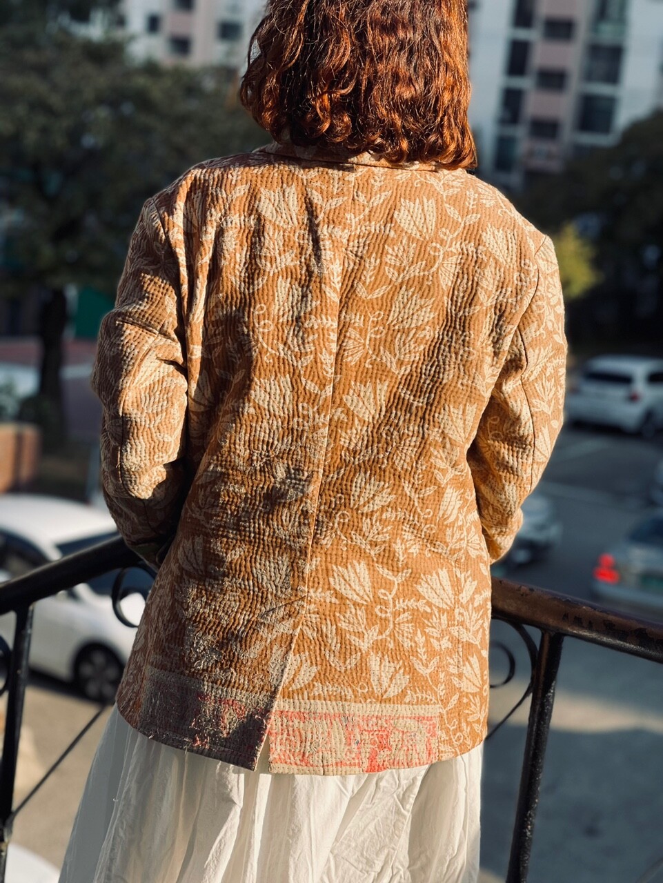 박시한 빈티지자켓입니다.77사이즈까지가능하시고 57센티폭이고 72센티기장입니다.100 ceny hand made로 만들어졌고 이 세상에 딱하나 있는 자켓이에요 면 퀼트라 아주 따뜻해요