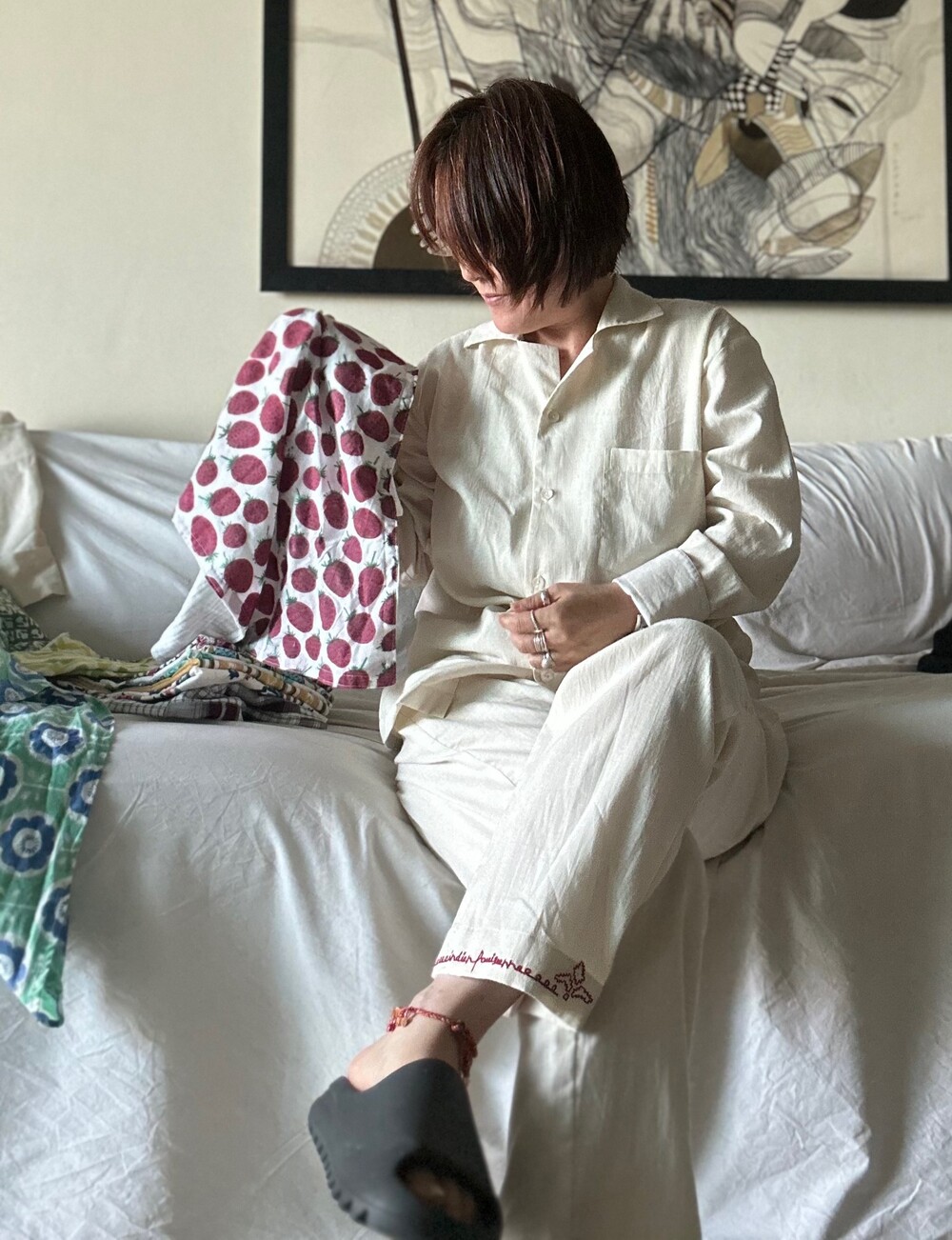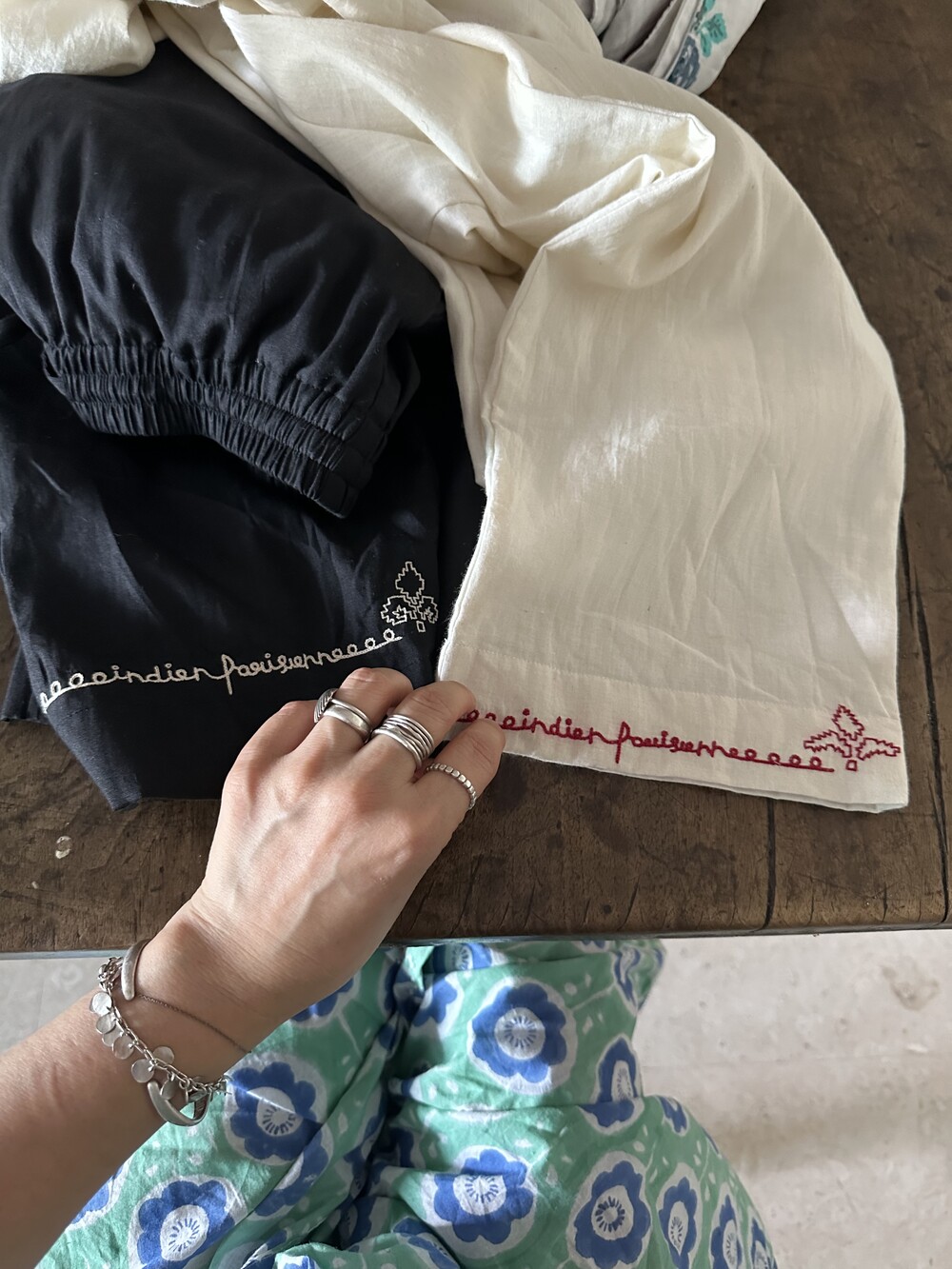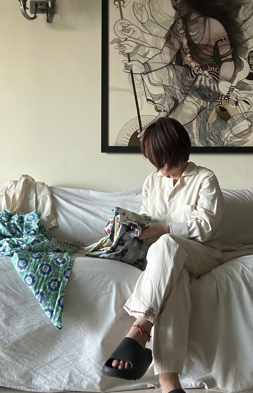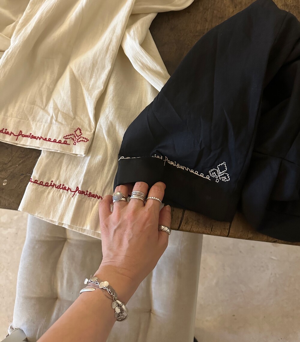 손 자수의 골동느낌과 기계가 아닌 직조로 짠 카디의 결이 넘 잘어울려요.