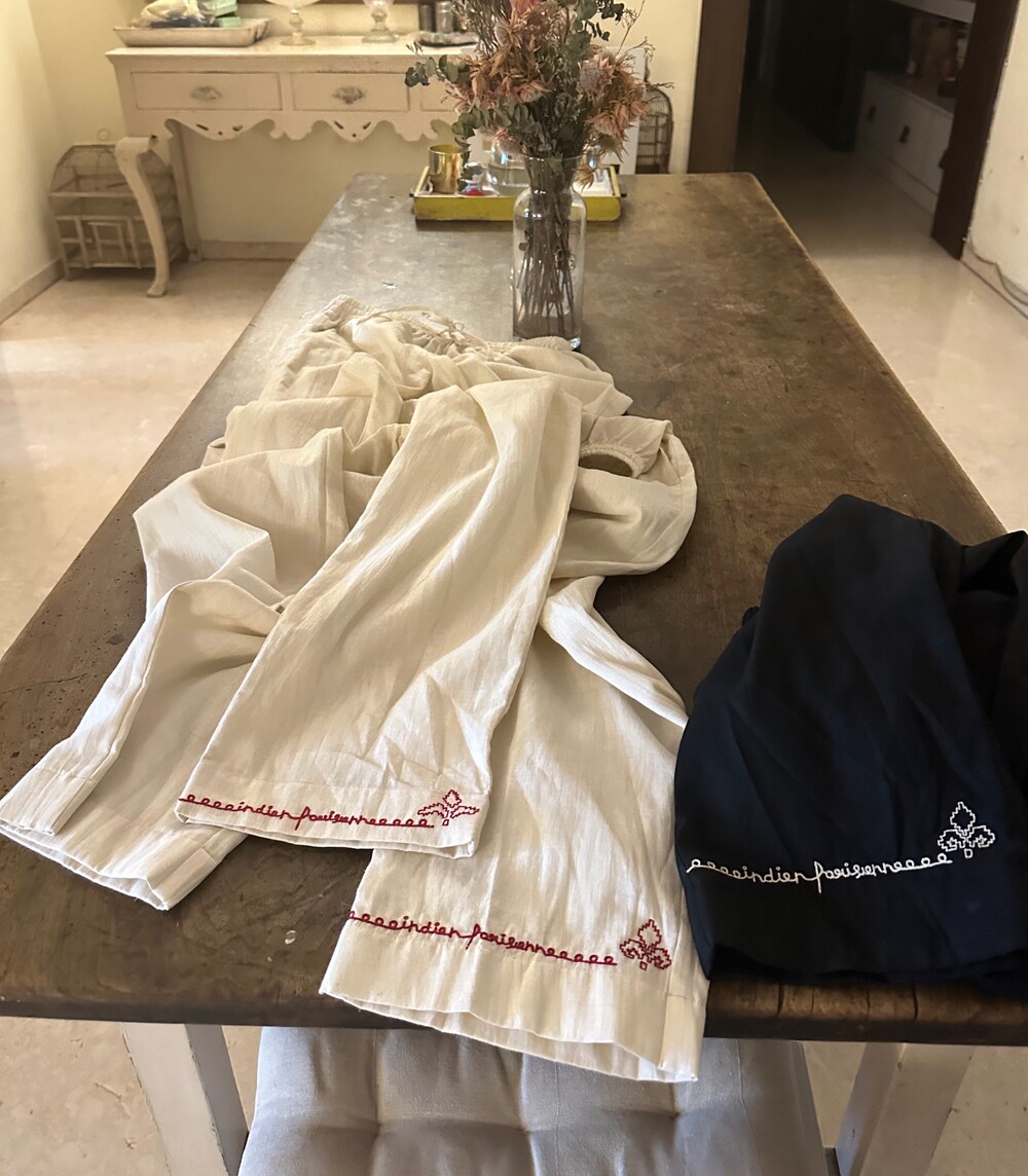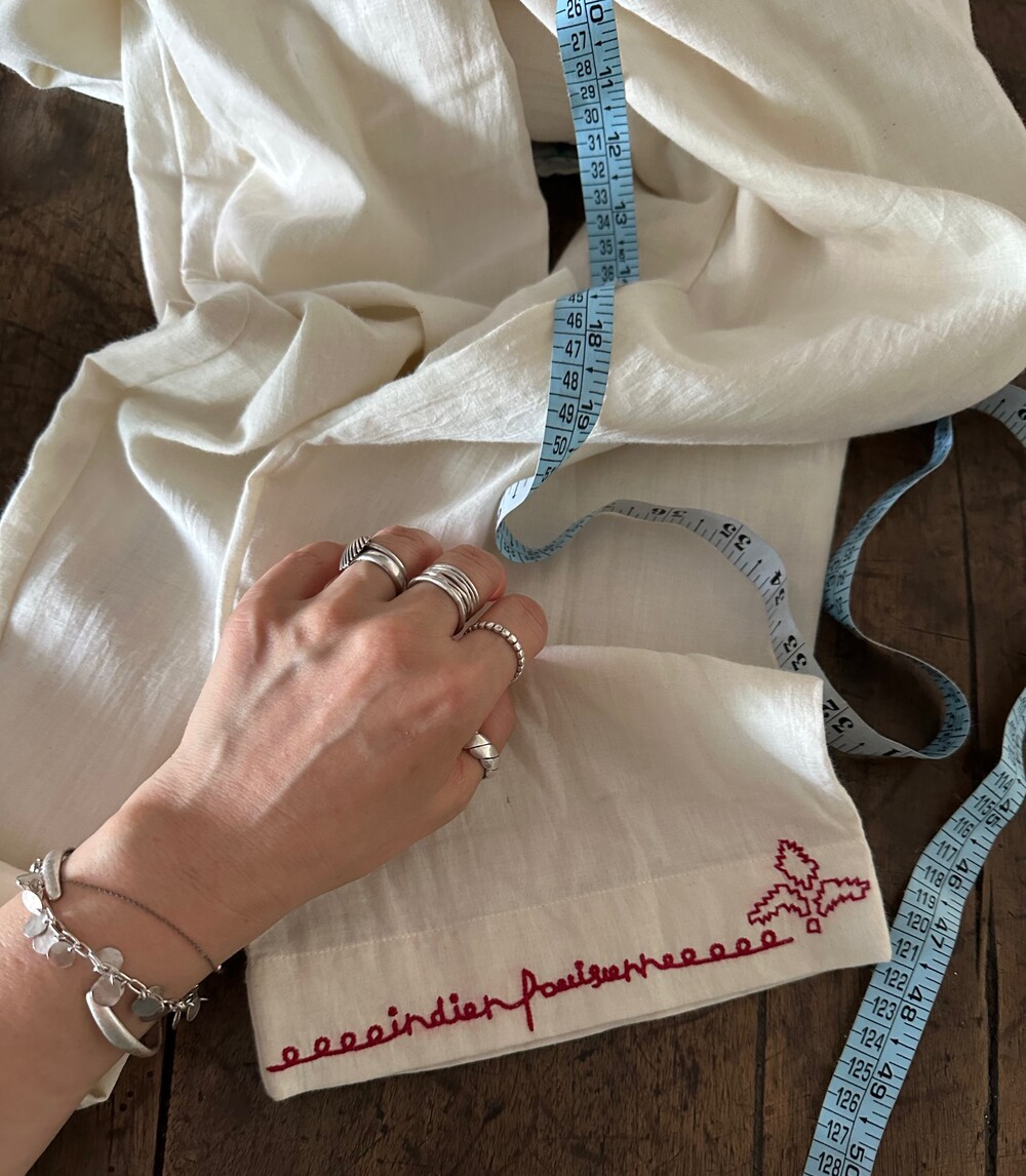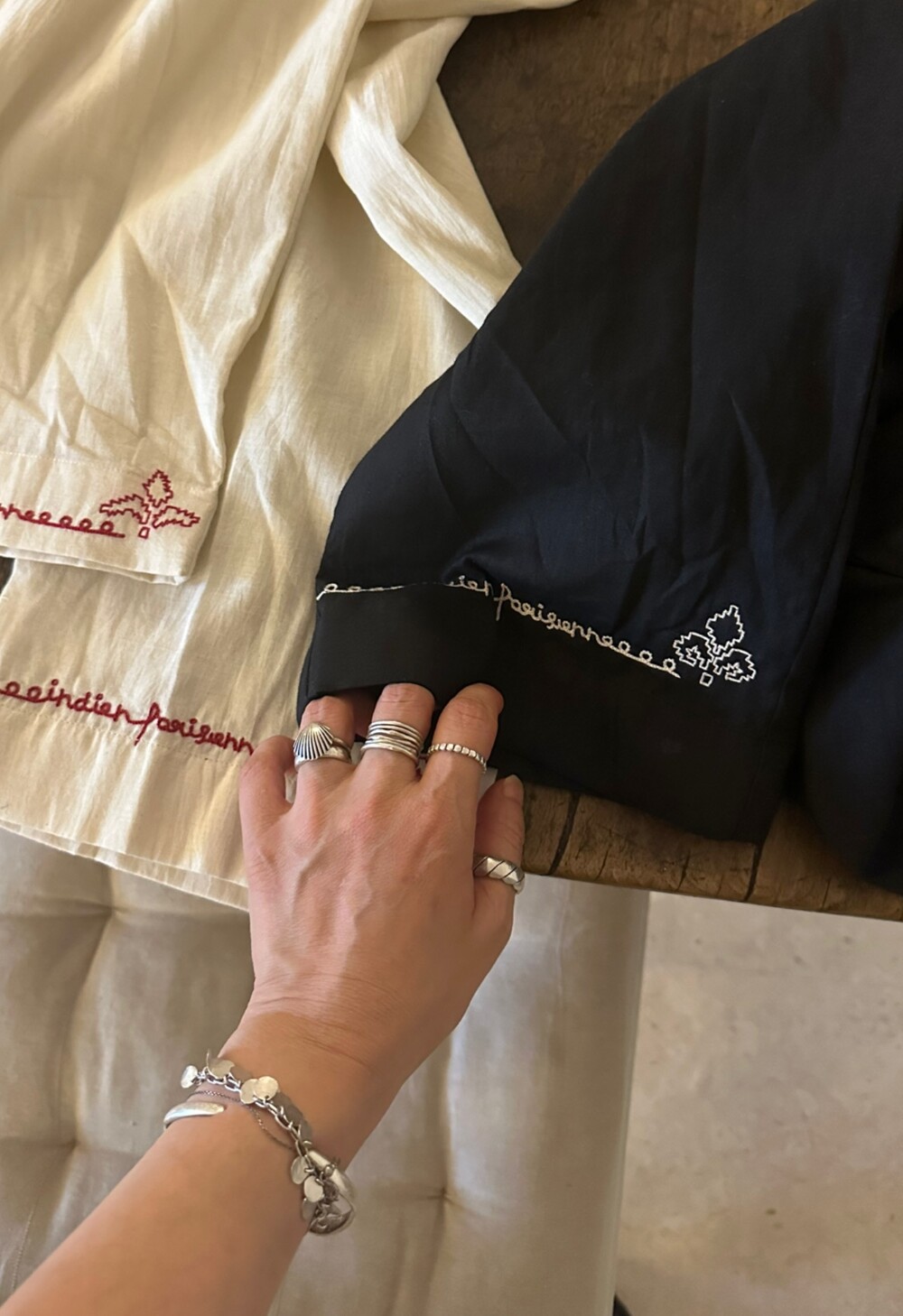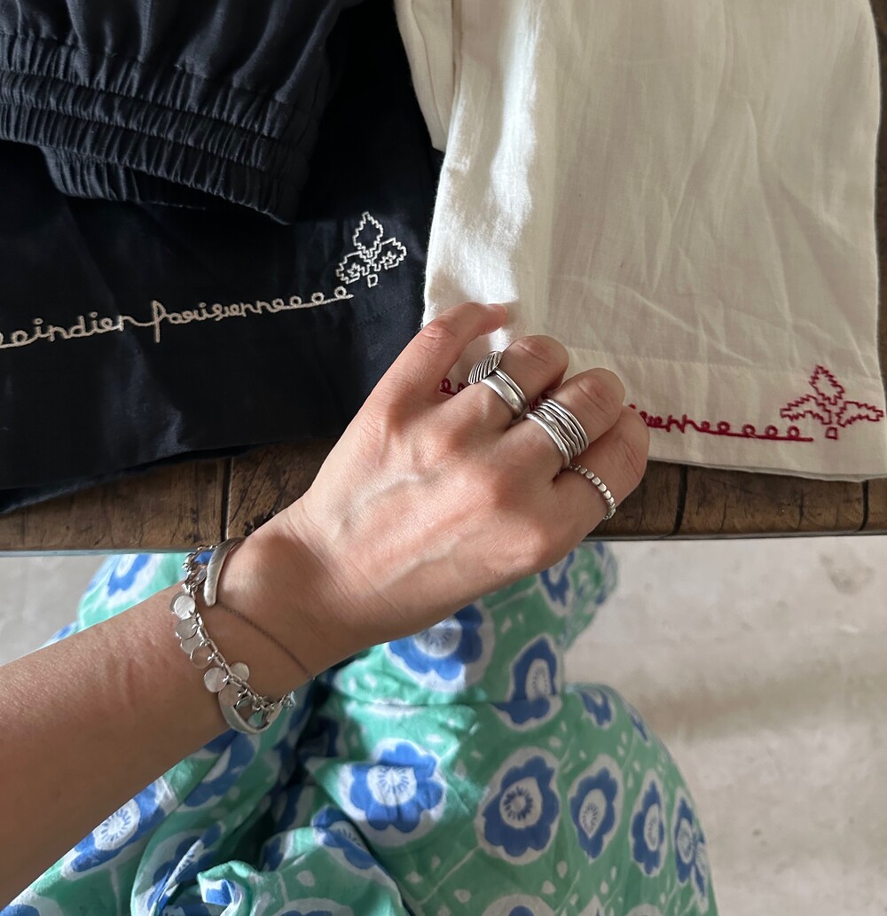 손 자수의 골동느낌과 기계가 아닌 직조로 짠 카디의 결이 넘 잘어울려요.