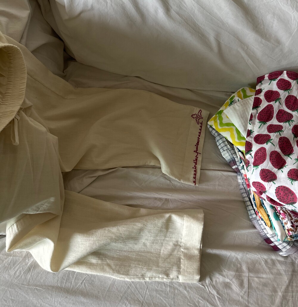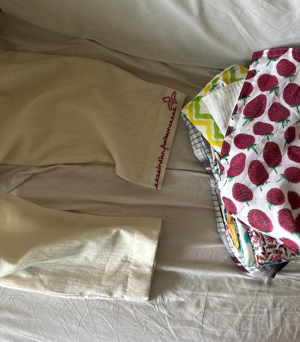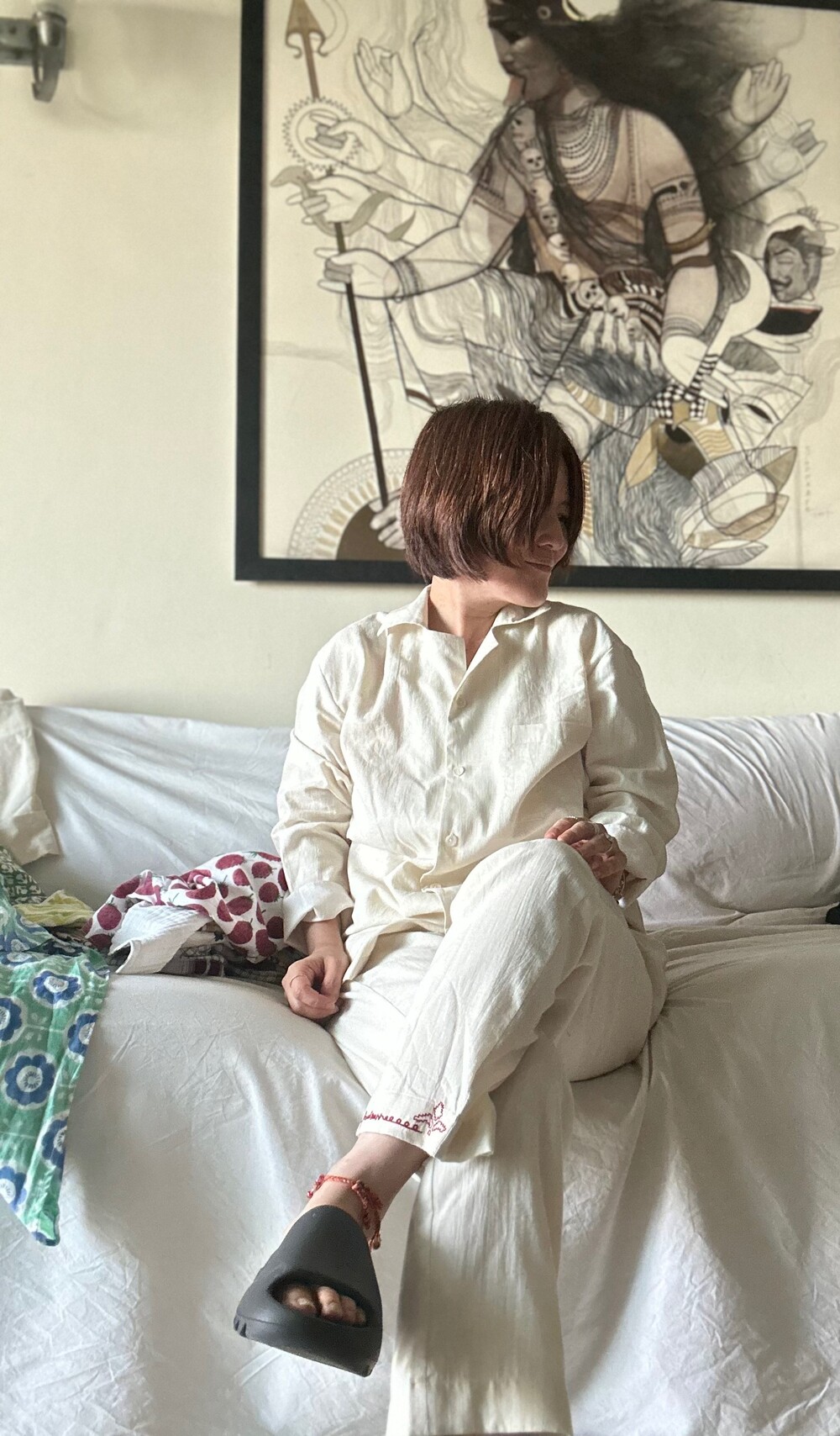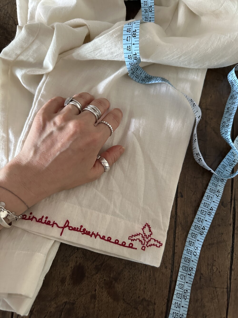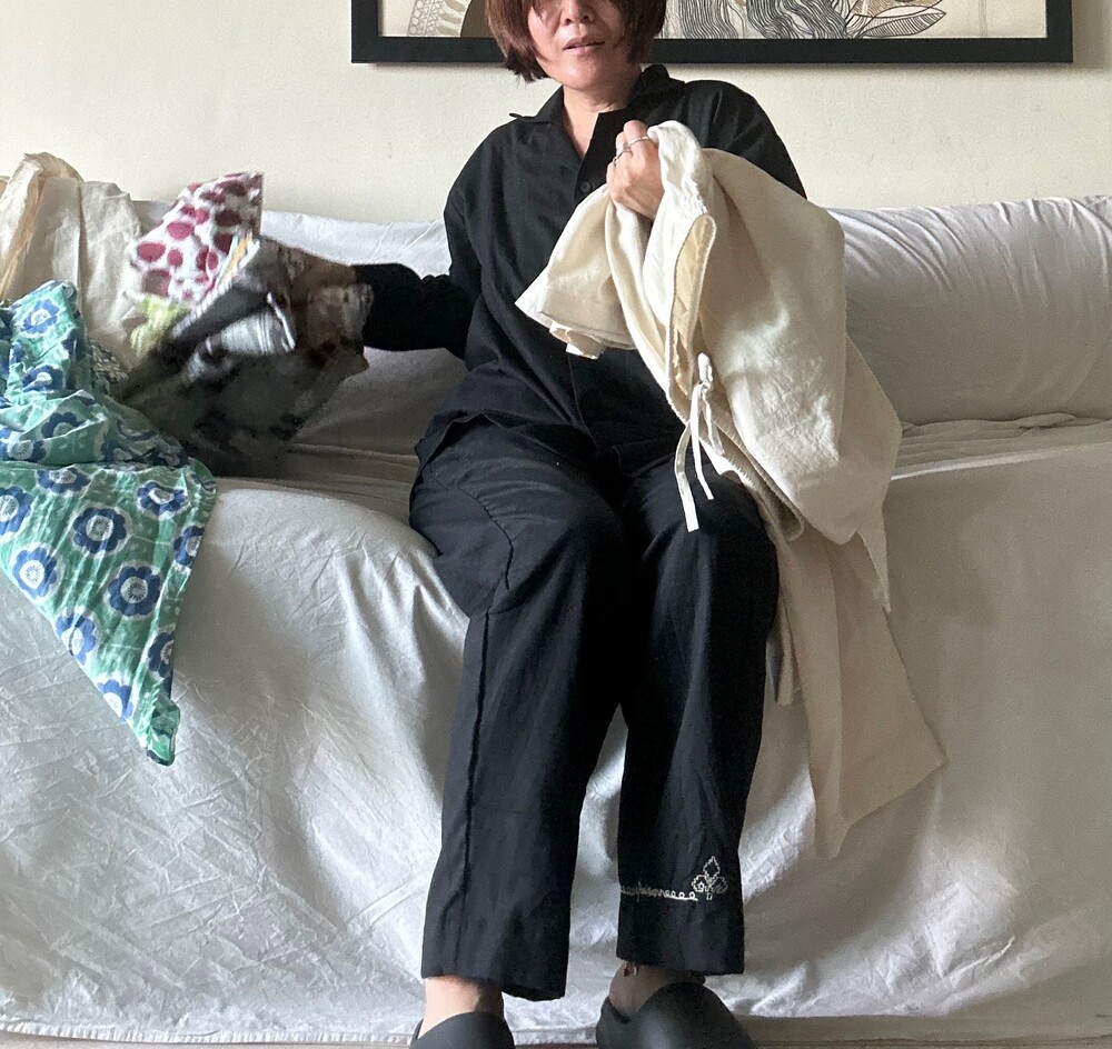 손 자수의 골동느낌과 기계가 아닌 직조로 짠 카디의 결이 넘 잘어울려요.