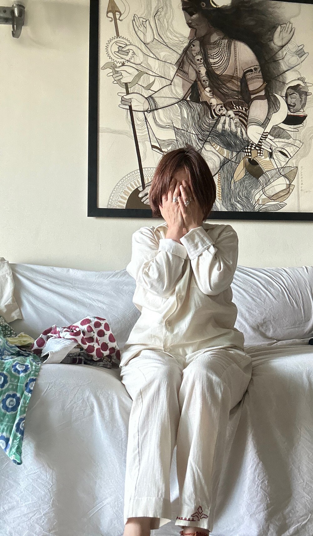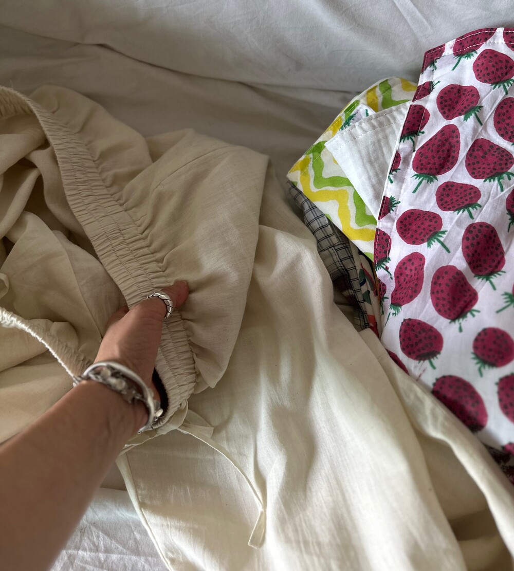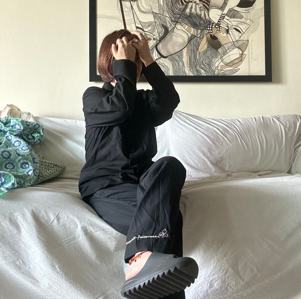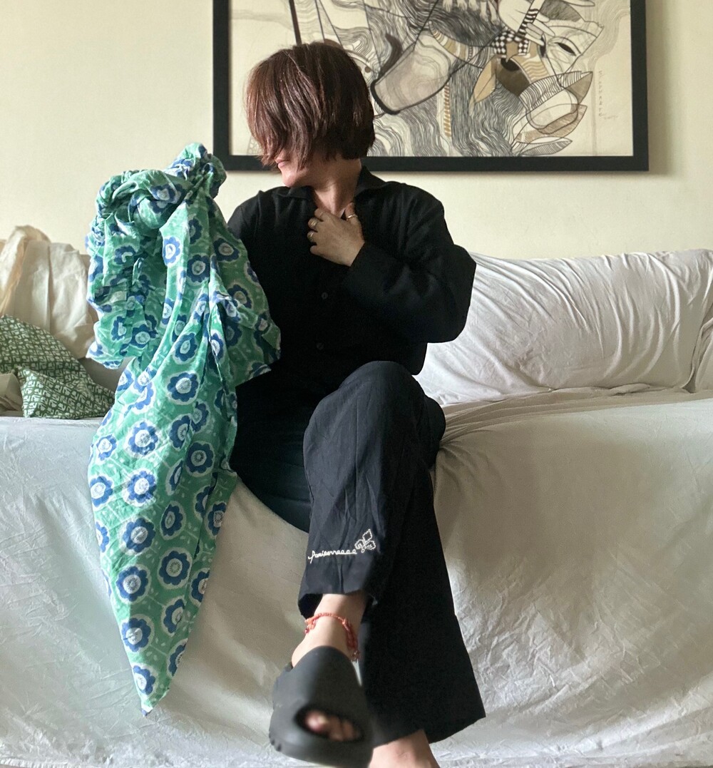 손 자수의 골동느낌과 기계가 아닌 직조로 짠 카디의 결이 넘 잘어울려요.