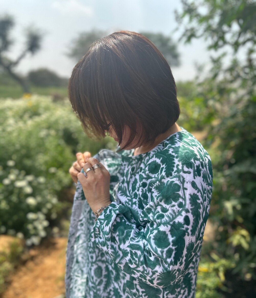 그린컬러는 거즈면으로 만들어졌고 핑크는 면 제품이에요.