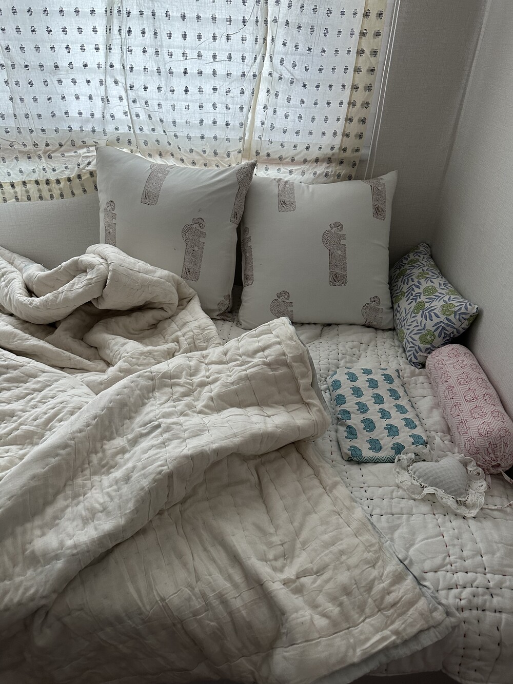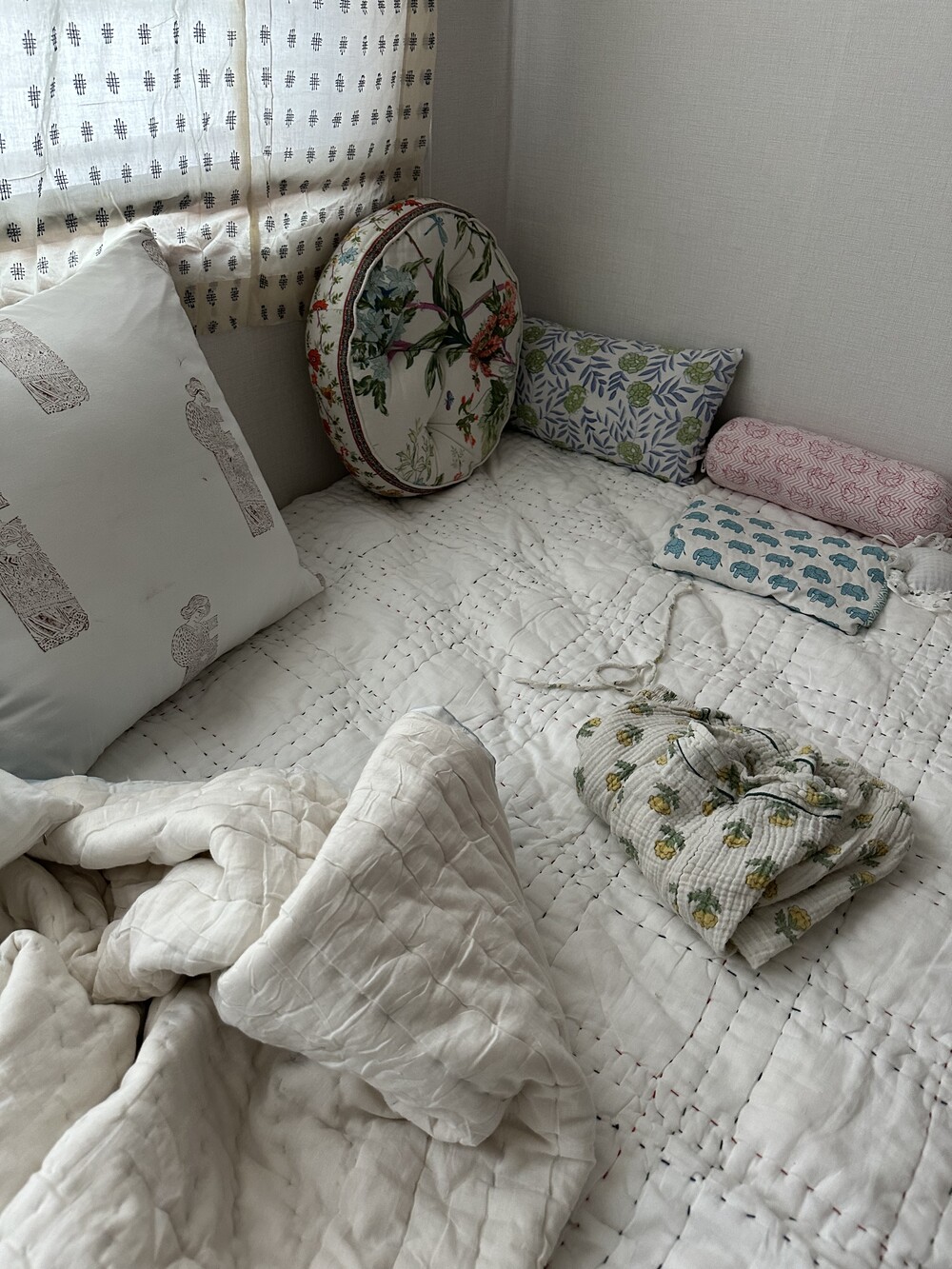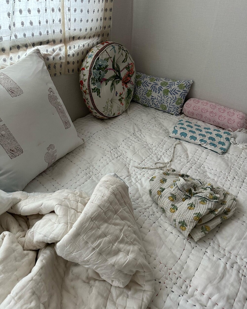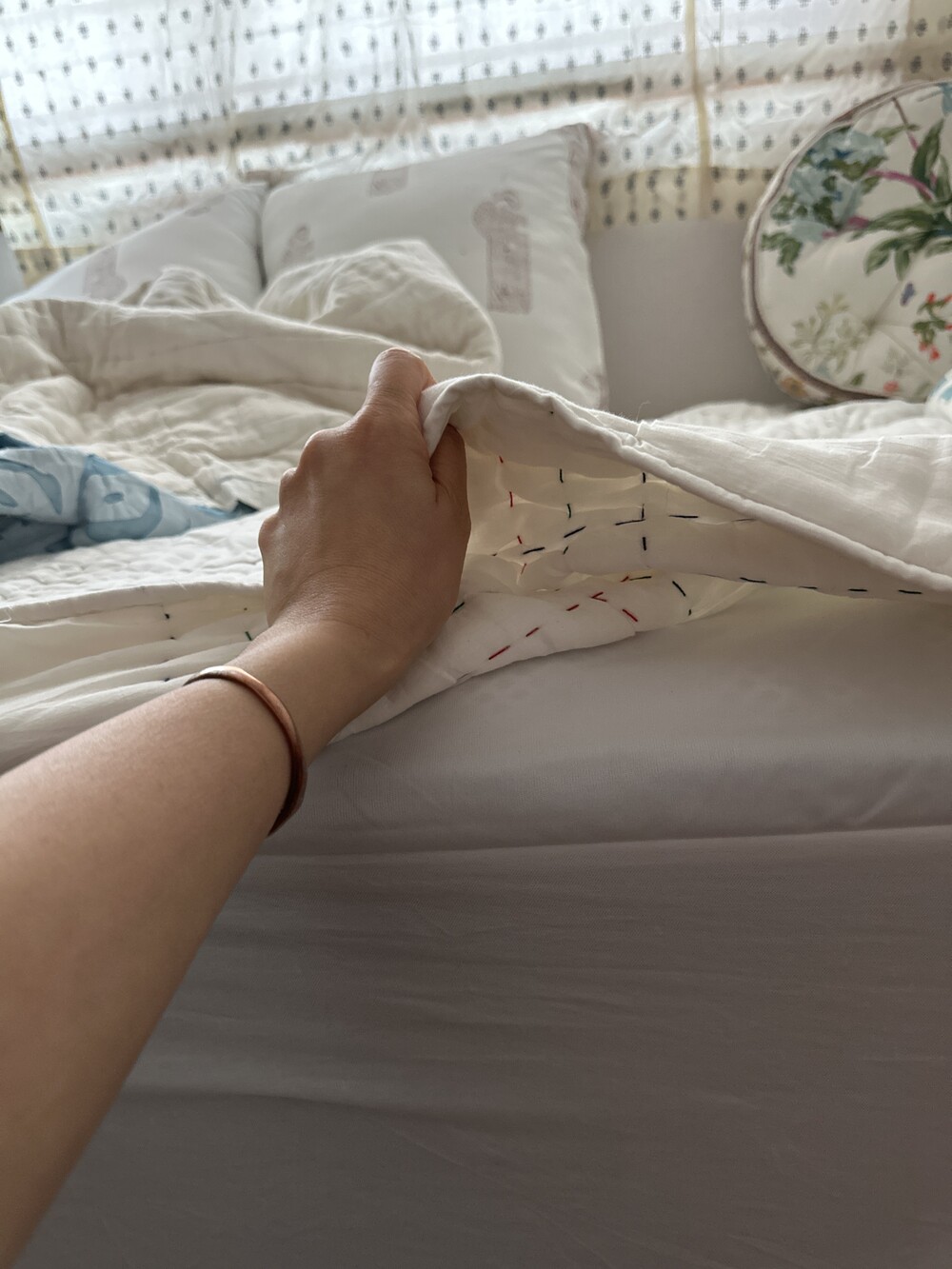 여름엔 이불로 그리고 스프레드로도 깔면 너무 뽀송한 목화솜 스티치 이불이에요. 8월 이십일경 배송됩니다