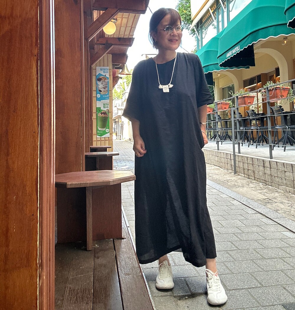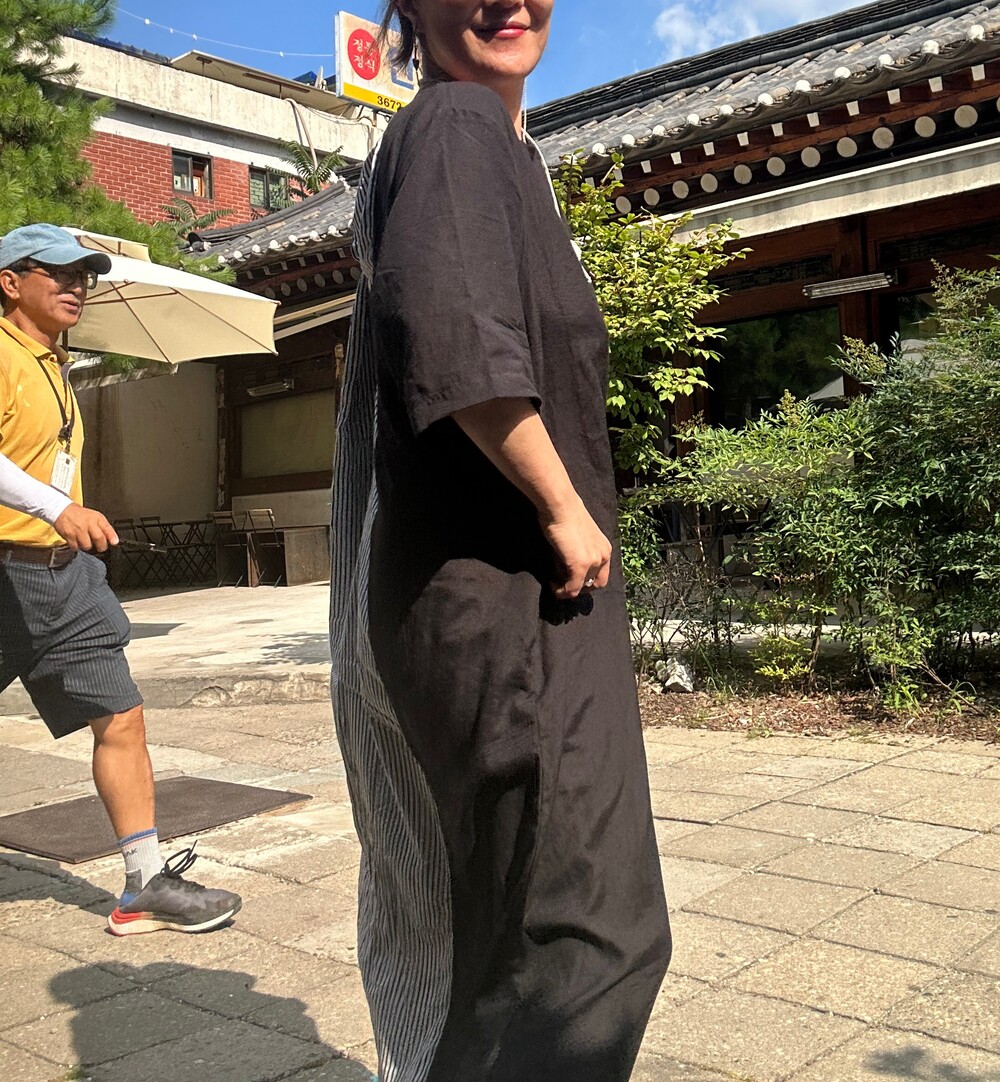 동일한 디자인의 드레스에요 . 7.31까지 주문하시는 분들은 8.8한국에서 발송되요.그 이후는 팔월 중순에 받으세요.기장 119이고 어깨단면 40,42이고 가슴둘레 반품 59까지 미듐이고 그 이상 66반품까지 라지에요 더 큰사이즈는 메모주세요.정말 잘입는 원피스에요.소매기장도 정말 넘 좋아요.면 백퍼센트 드레스에요!
