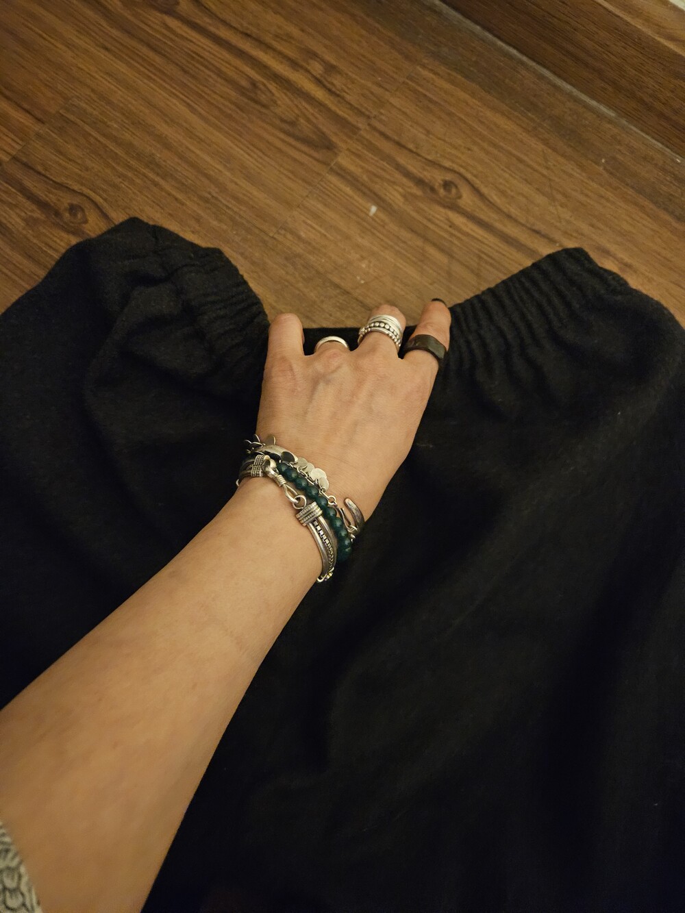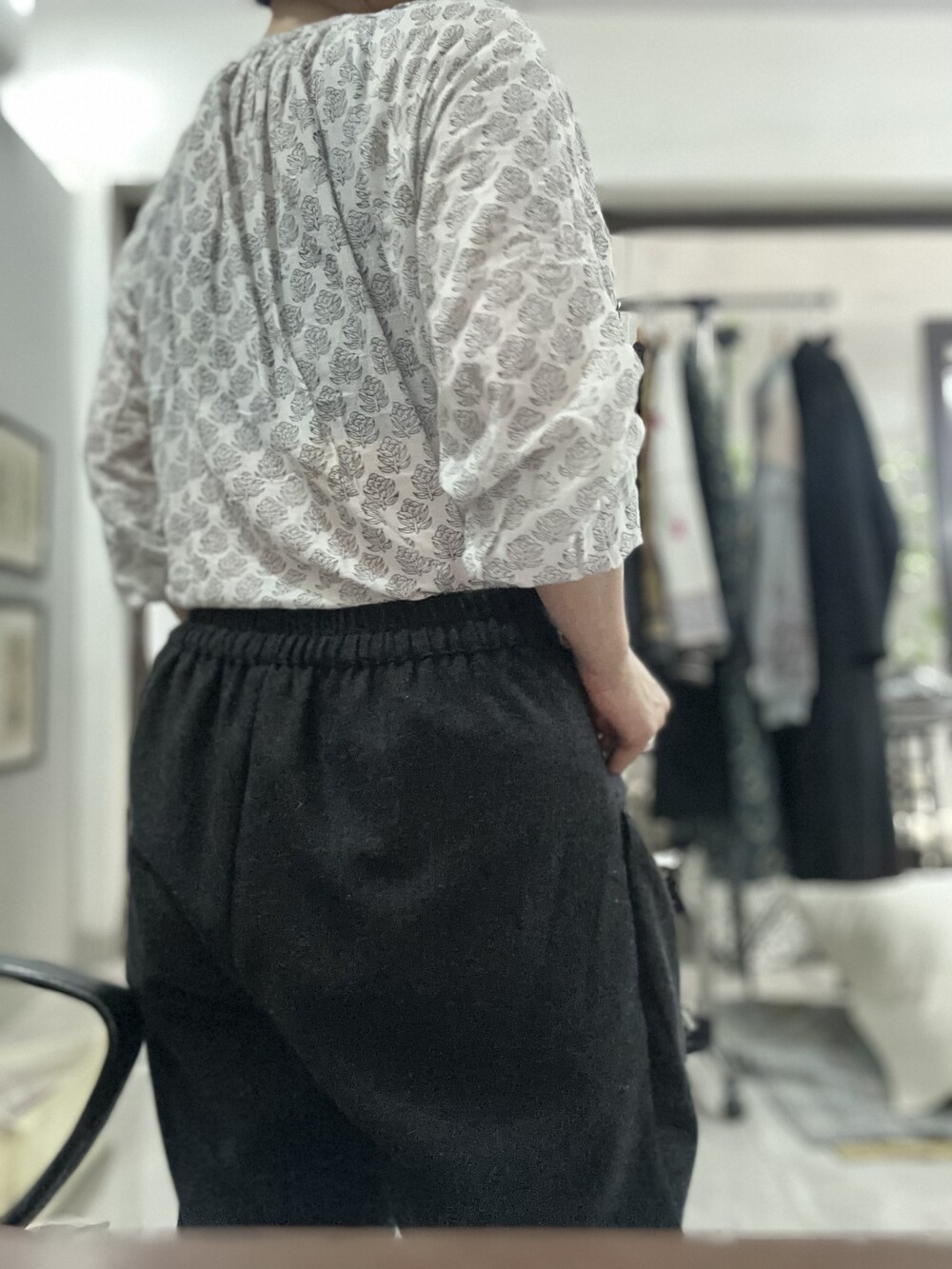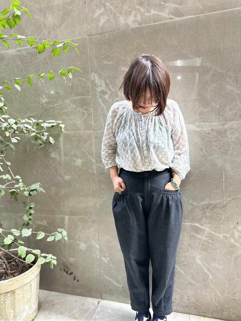 제가 입은 사이즈는 미듐이고 울 소재의 팬츠에요.기장 85이고 허리는 뒷 고무 밴딩과 단추마감이에요 .