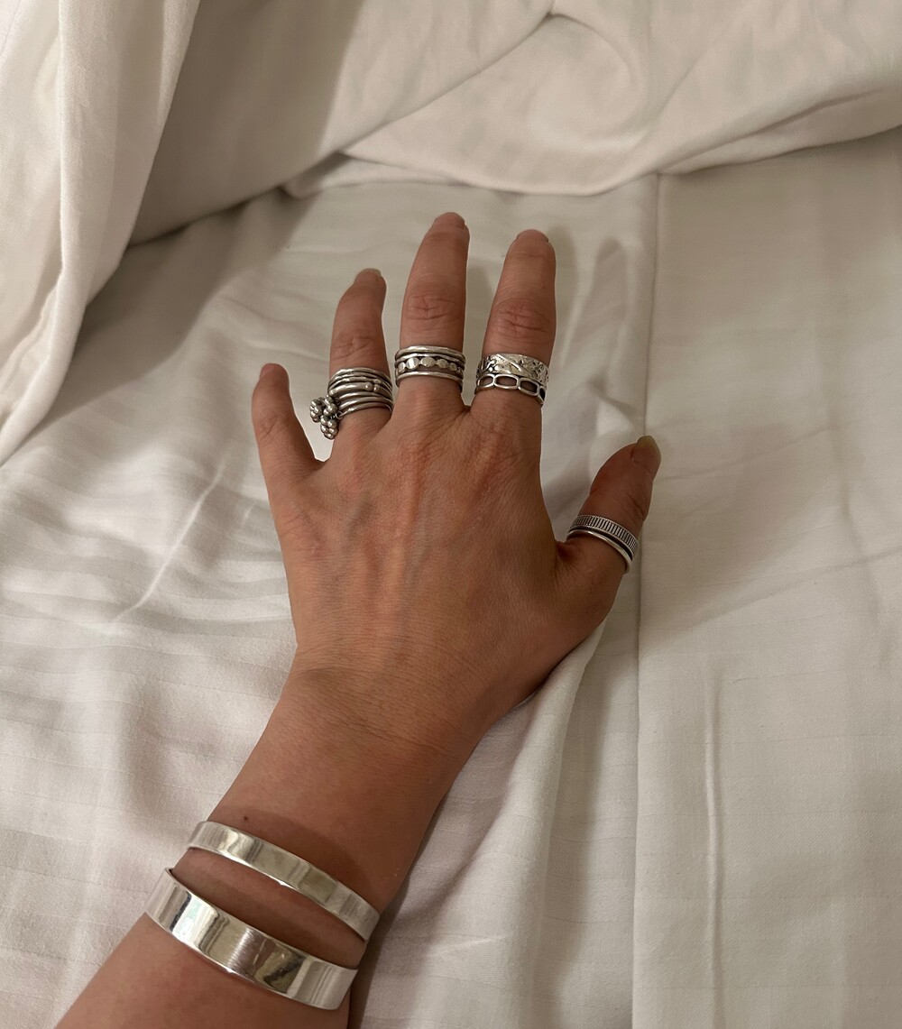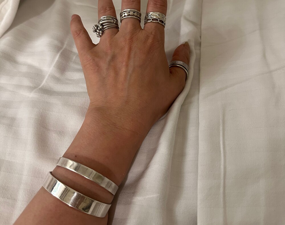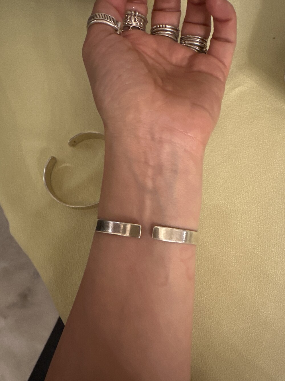 2차 오픈이에요.92.5 % purity of silver and Is other metal like copper , brass and other metals because for make harder silver Otherwise silver is so soft , we cannot make jewellery❤️bangle type의 팔찌이고 그냥 조절하듯 착 끼면되요