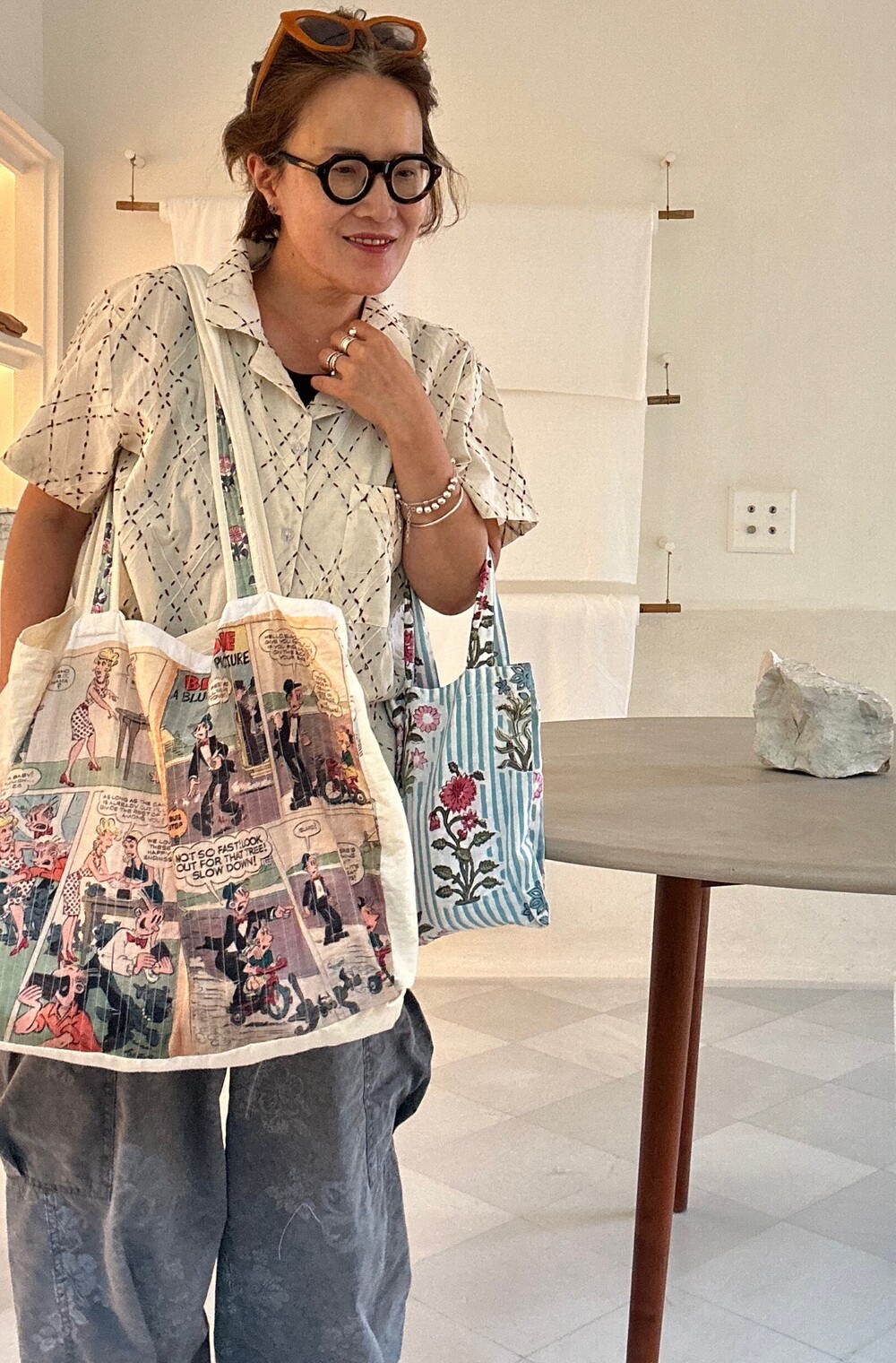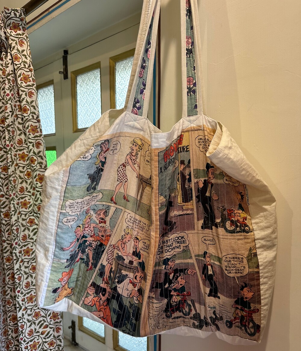 엄청 큰 가방이고 누빔 퀼팅 두겹의 면이라 완전 후들거리지않아요.시월말 받으세요, 보부상 느낌,서양 금발에대한 로망 블론디 애니 프린트에요,빈티지한 컬러로 재해석 해보았어요.단순변심 교환 환불 힘들어요.9.15까재 프리오뎌 할인가이고 손잡이도 퀼팅인데 요건 랜덤 패브릭으로 좀더 중성적으로 교체되요(스트라이프) 그러나 꽃도 좋다 싶으시면 메모에 꽃으로,
