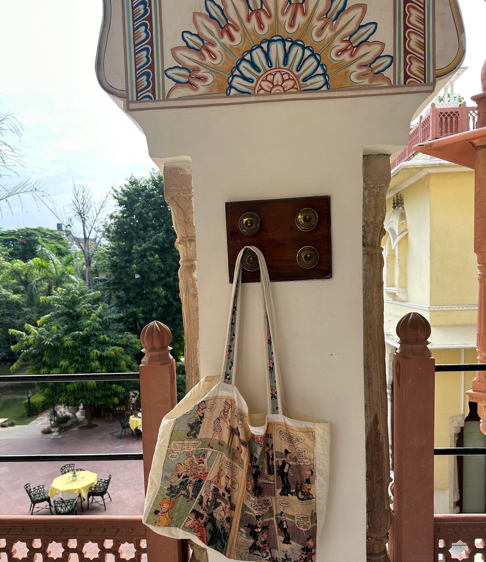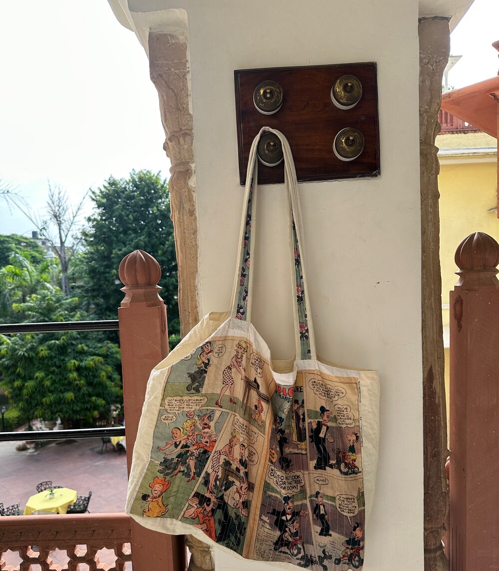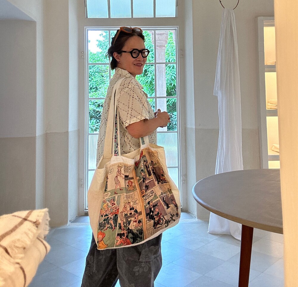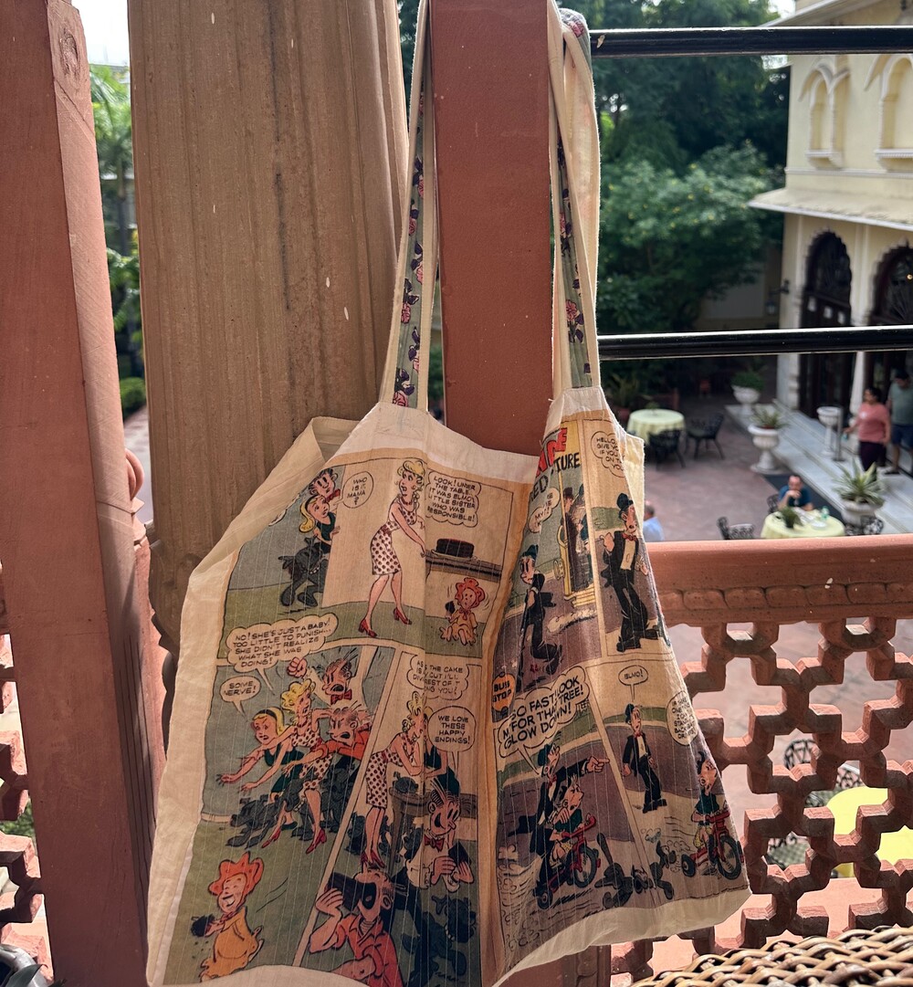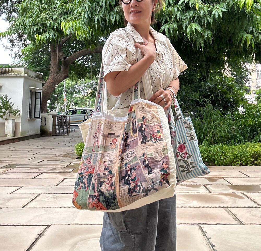 리히텐슈타인 처럼,대중만화를 보부상 느낌가방으로