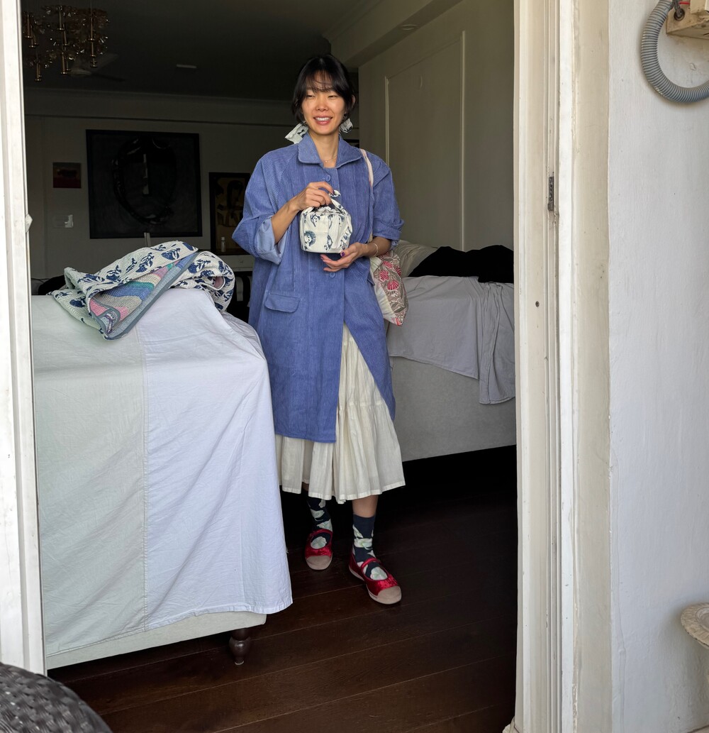 length 라지는93.98 미듐 91.44 그리고 chest 라지는 137.16 미듐은 121.92 또,shoulder 라지 35.56 미듐은 33.7sleeves 라지는 55.88 미듐은 53.34에요❤️ 정말 아름다운 컬러와 좋은 소재의 면자켓이에요. 주문제작으로 짧은시즌 진행됩니다.이번주 일욜까지 프리오더가로 오더를 받고 인도에서 출발되서 곧 한국에서 발송되요.저는 패딩안에도 잘 입어요❤️