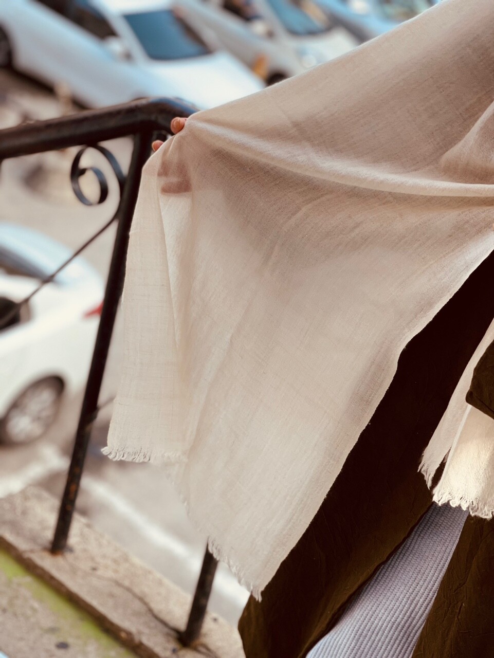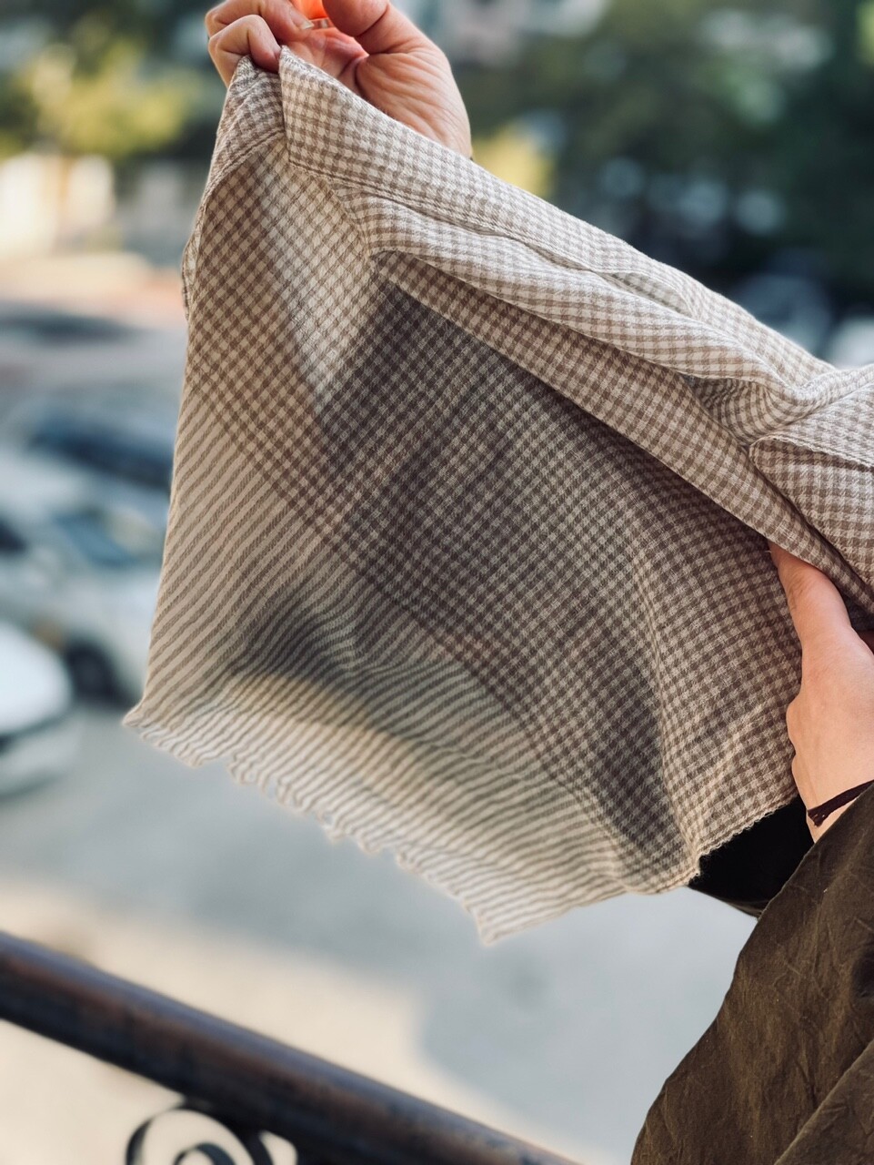 체크무늬와 오프화이트 컬러두가지이고 기장은 145정도이고 폭은 50센티정도의 목에 두르기좋은 스카프사이즈세요
