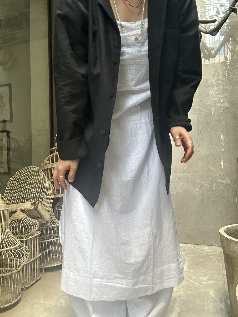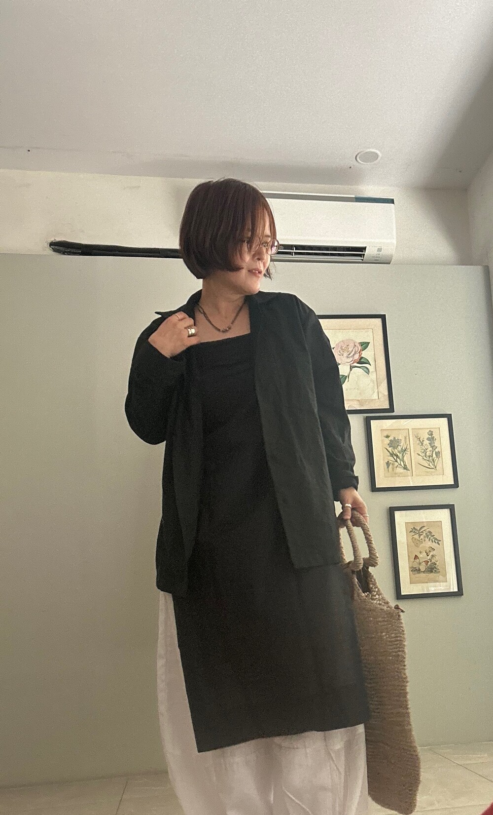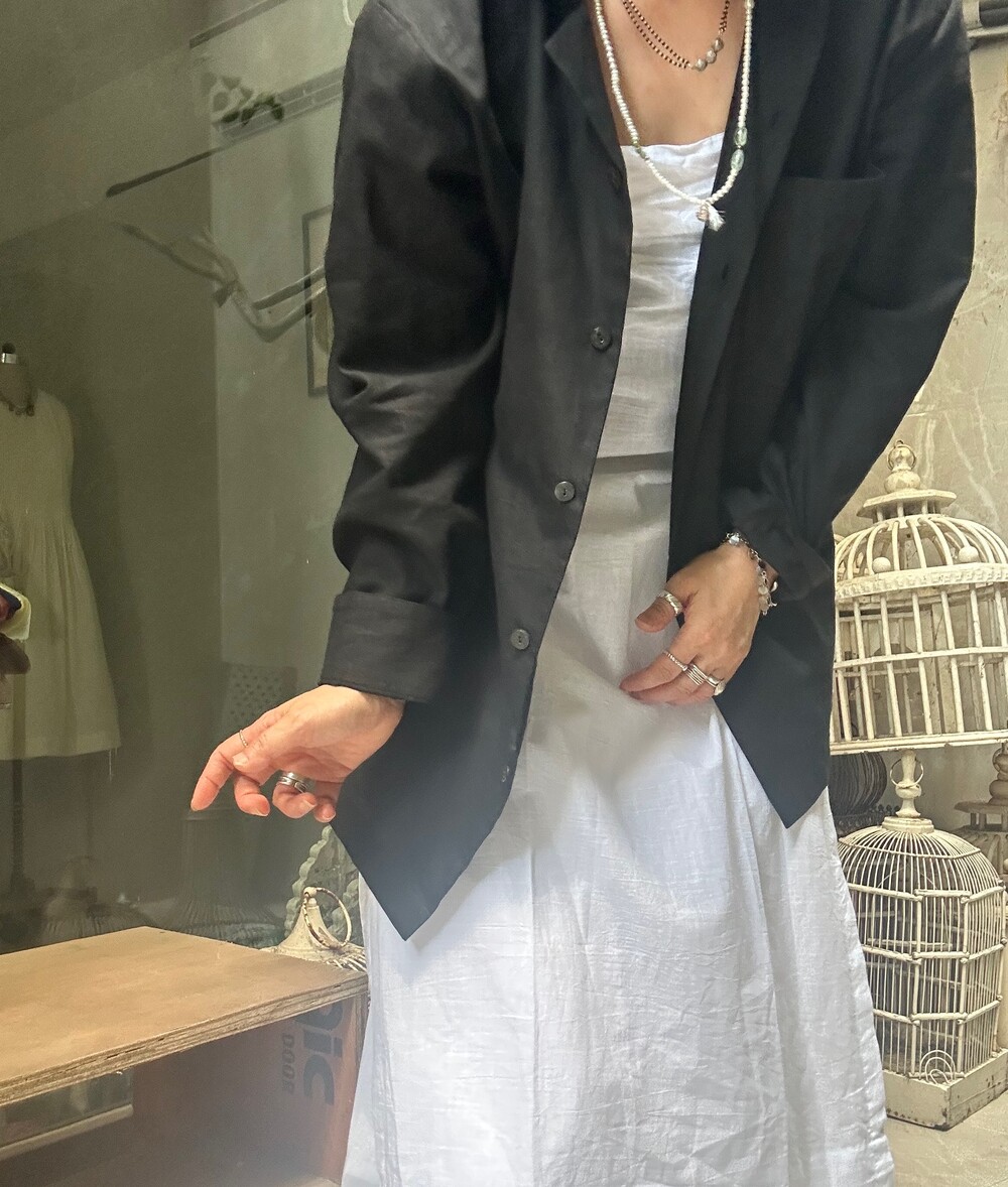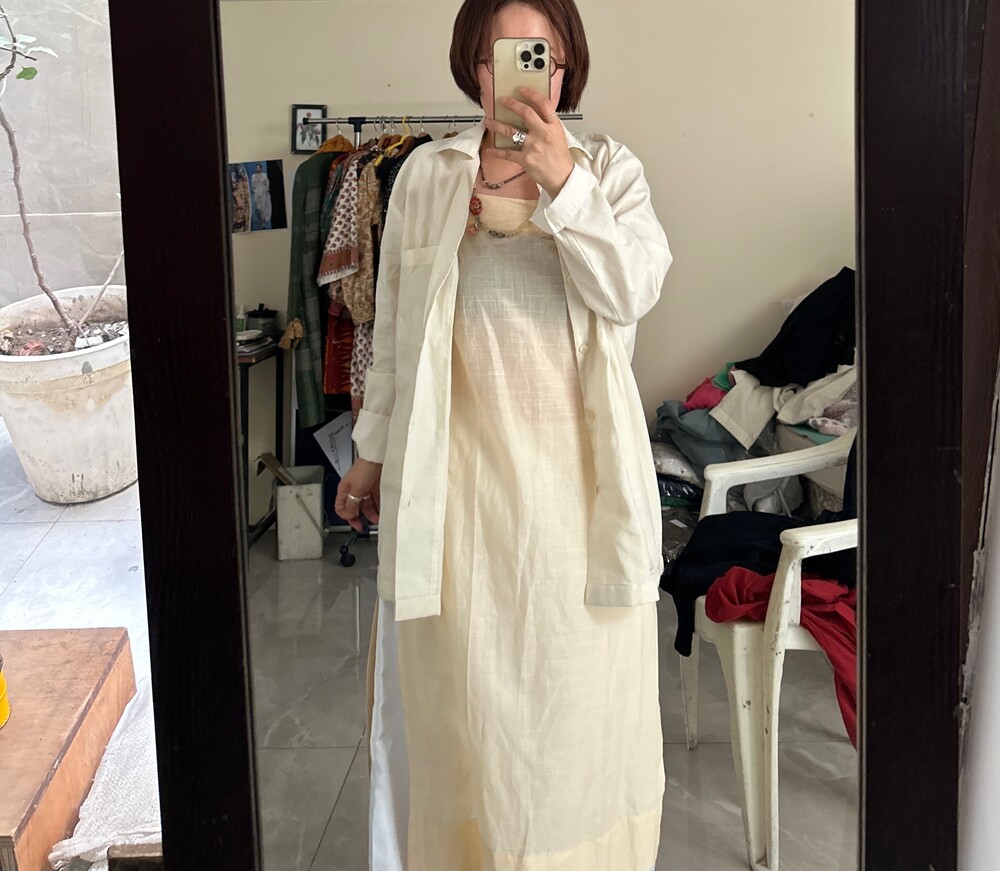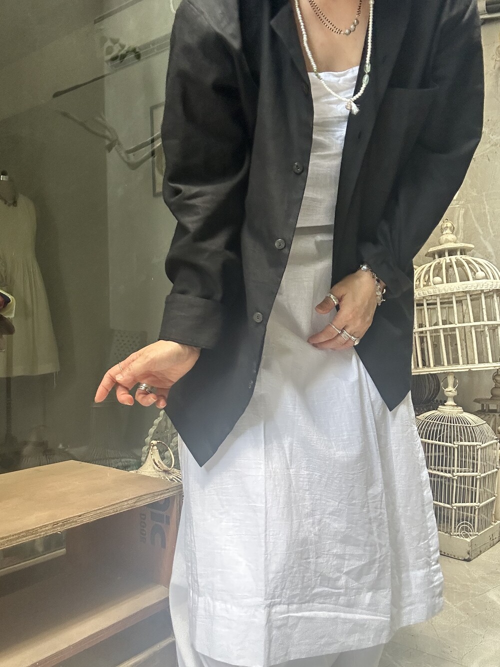 정말 고운 아사면으로 슬립 드레스를 만들었어요 단독으로 압어도 좋을만큼 디테일도 예뻐요.