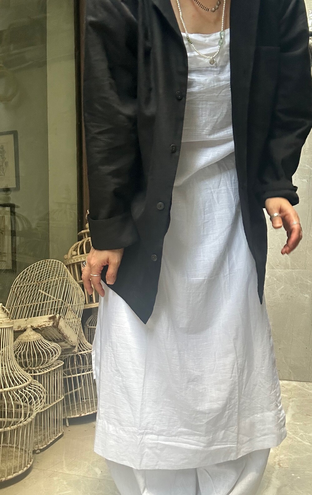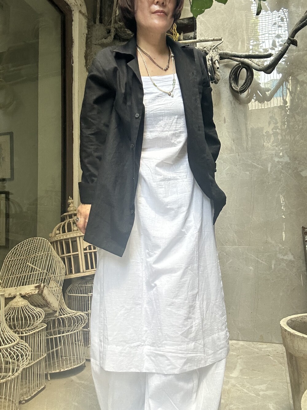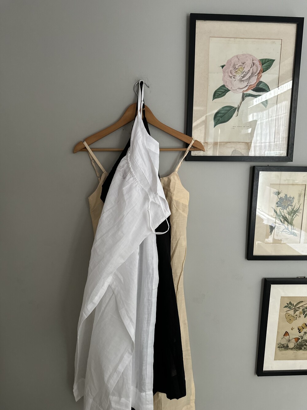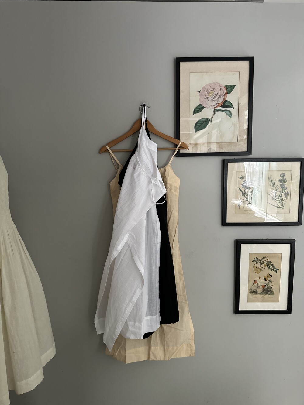 정말 고운 아사면으로 슬립 드레스를 만들었어요 단독으로 압어도 좋을만큼 디테일도 예뻐요.