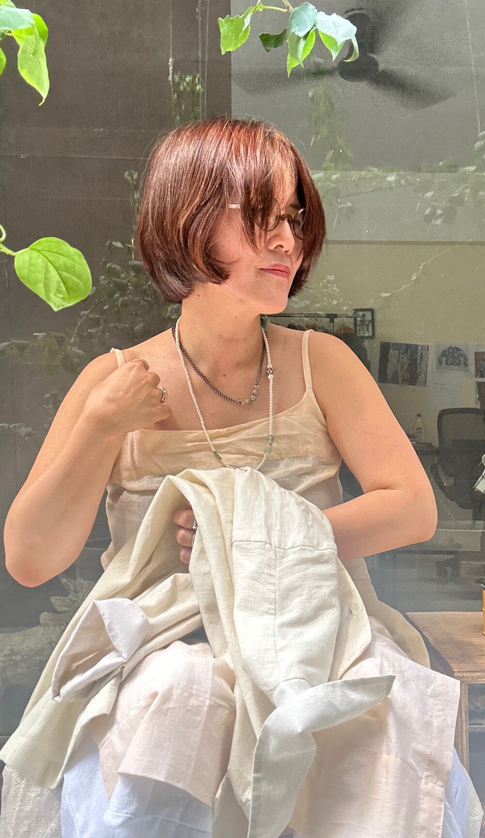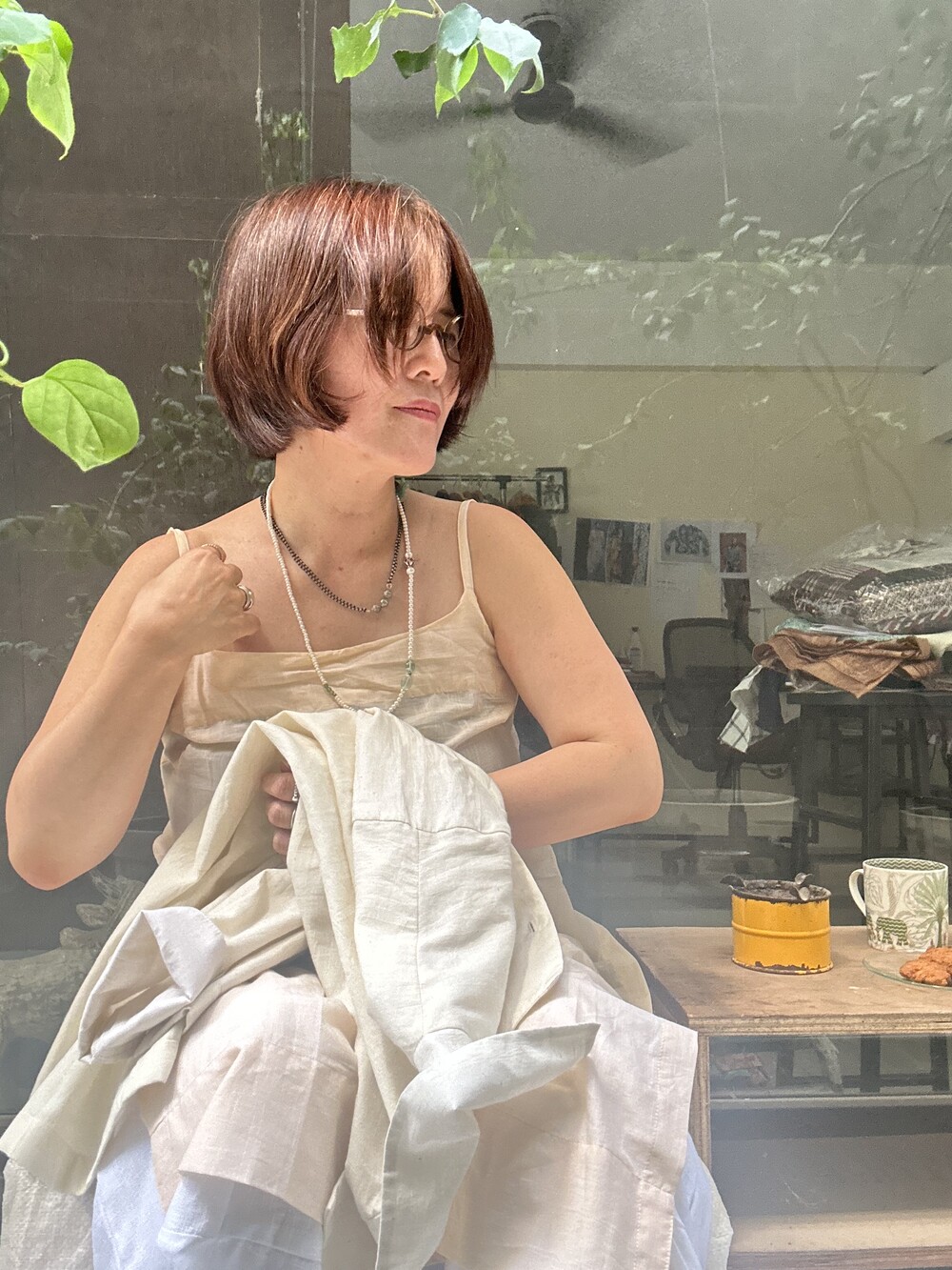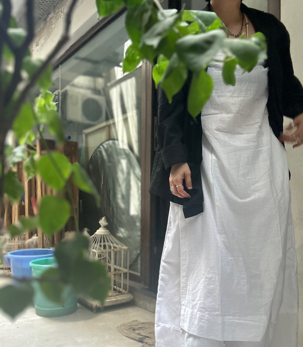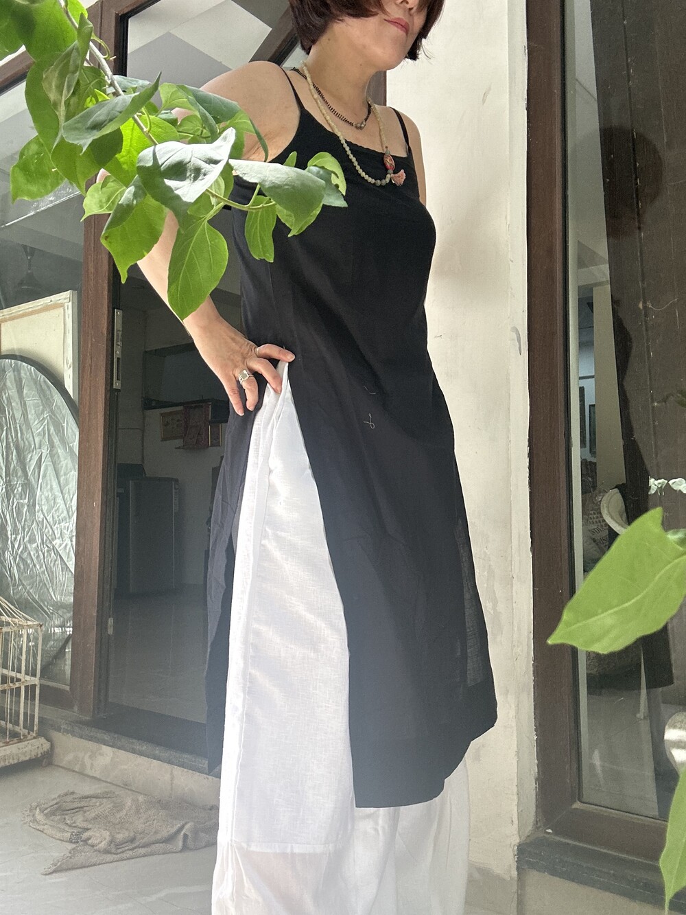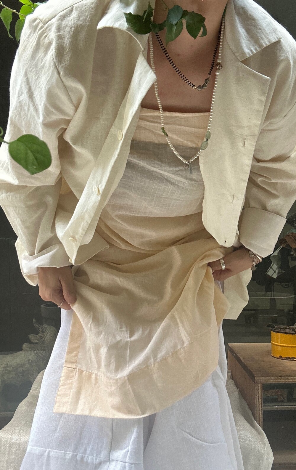 정말 고운 아사면으로 슬립 드레스를 만들었어요 단독으로 압어도 좋을만큼 디테일도 예뻐요.