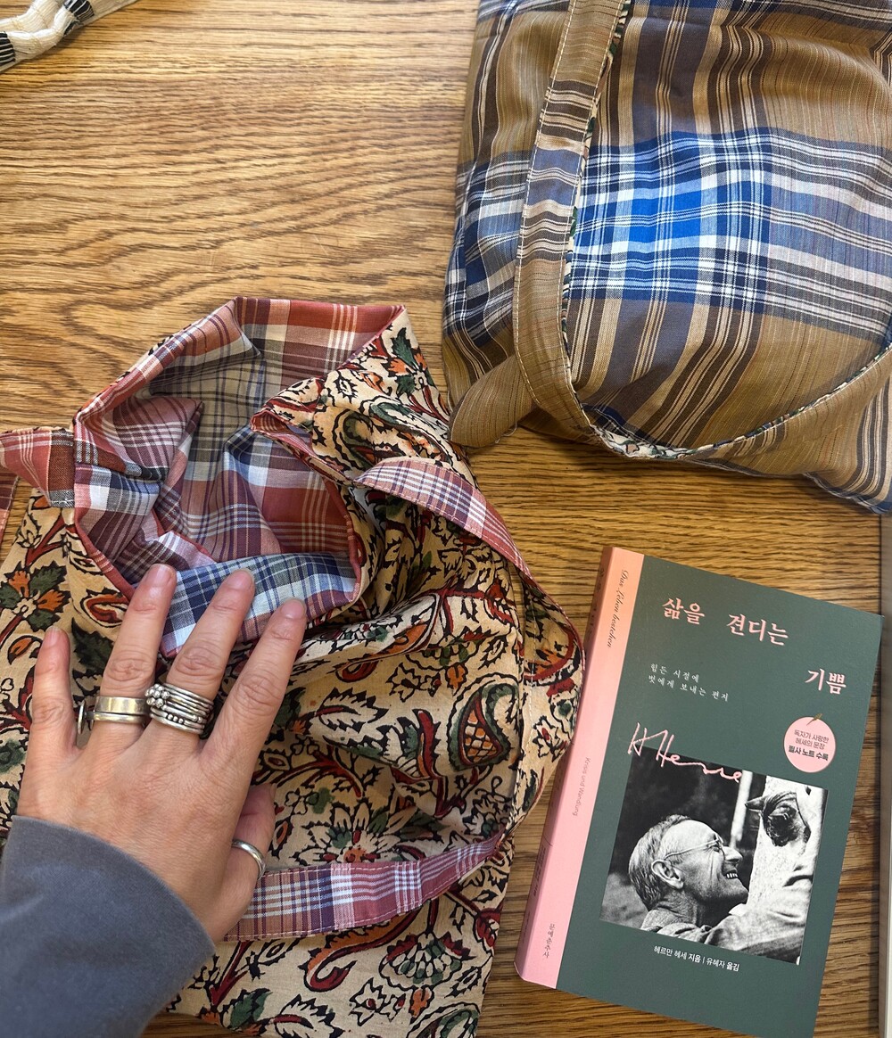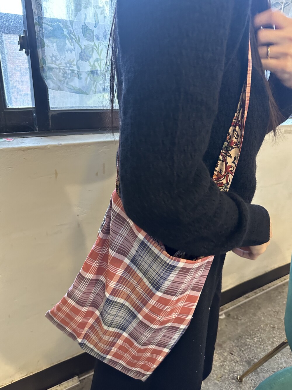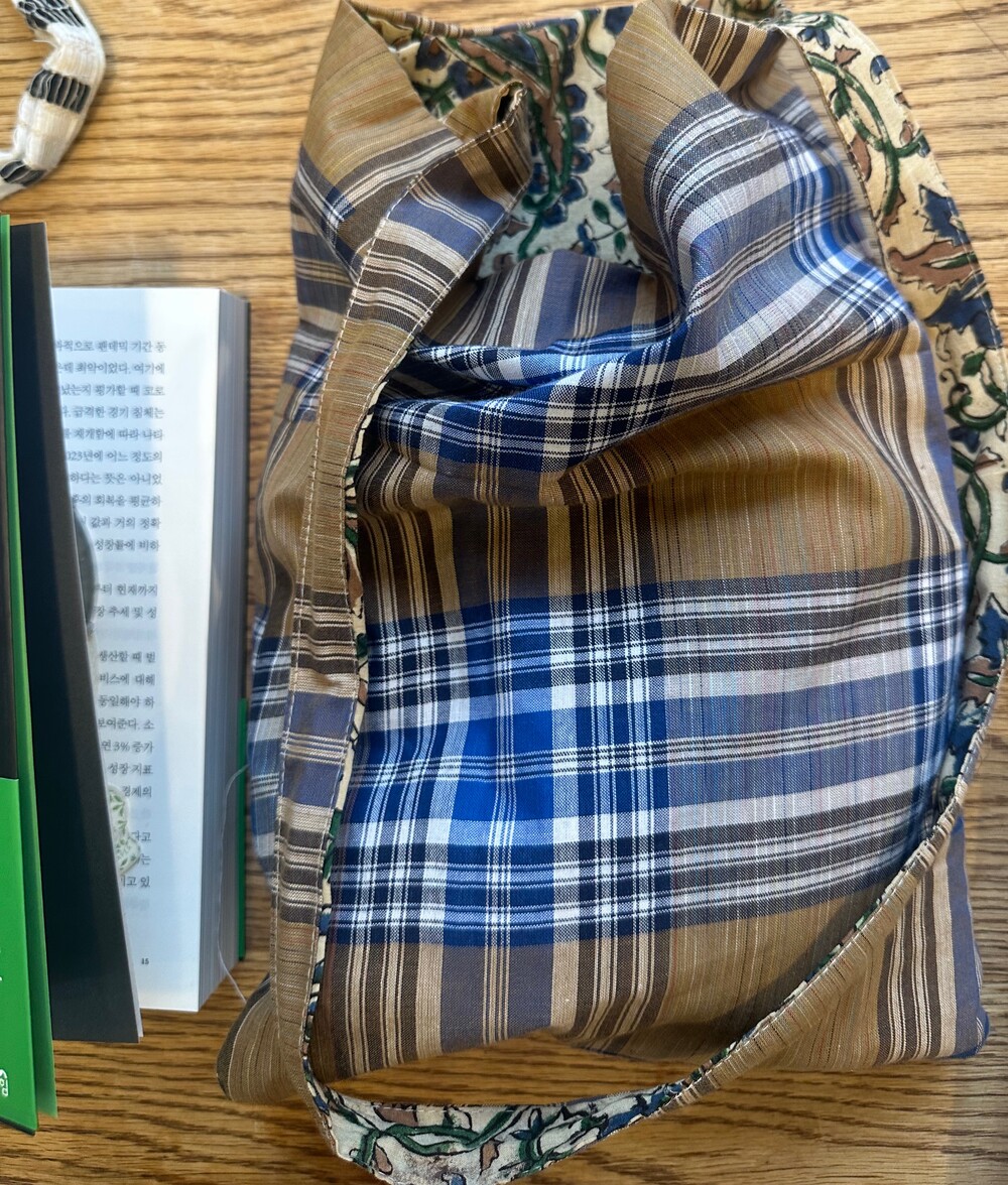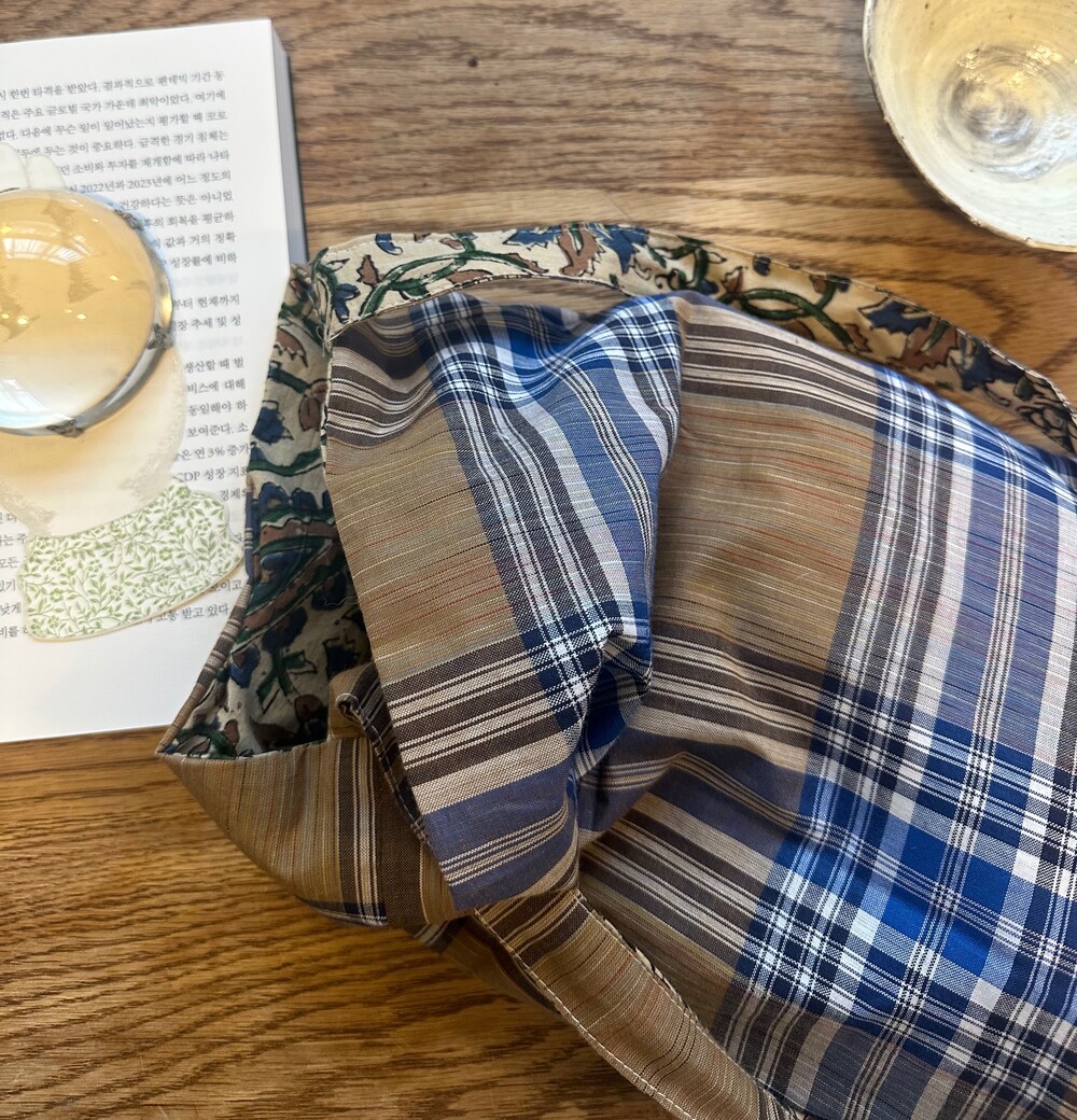 마드라스체크와 머드염색의 면 패브릭으러 만들어진 리버시블 가방이에요.15*34사이즈이고 핸들갈이 45인(사진보다 좀 더 길어요) 여행갈때 여권 휴대폰 핸드크림 책한권 넣기 딱 좋은 사이즈에요❤️ 주문제작으로 3-5소요됩니다❤️