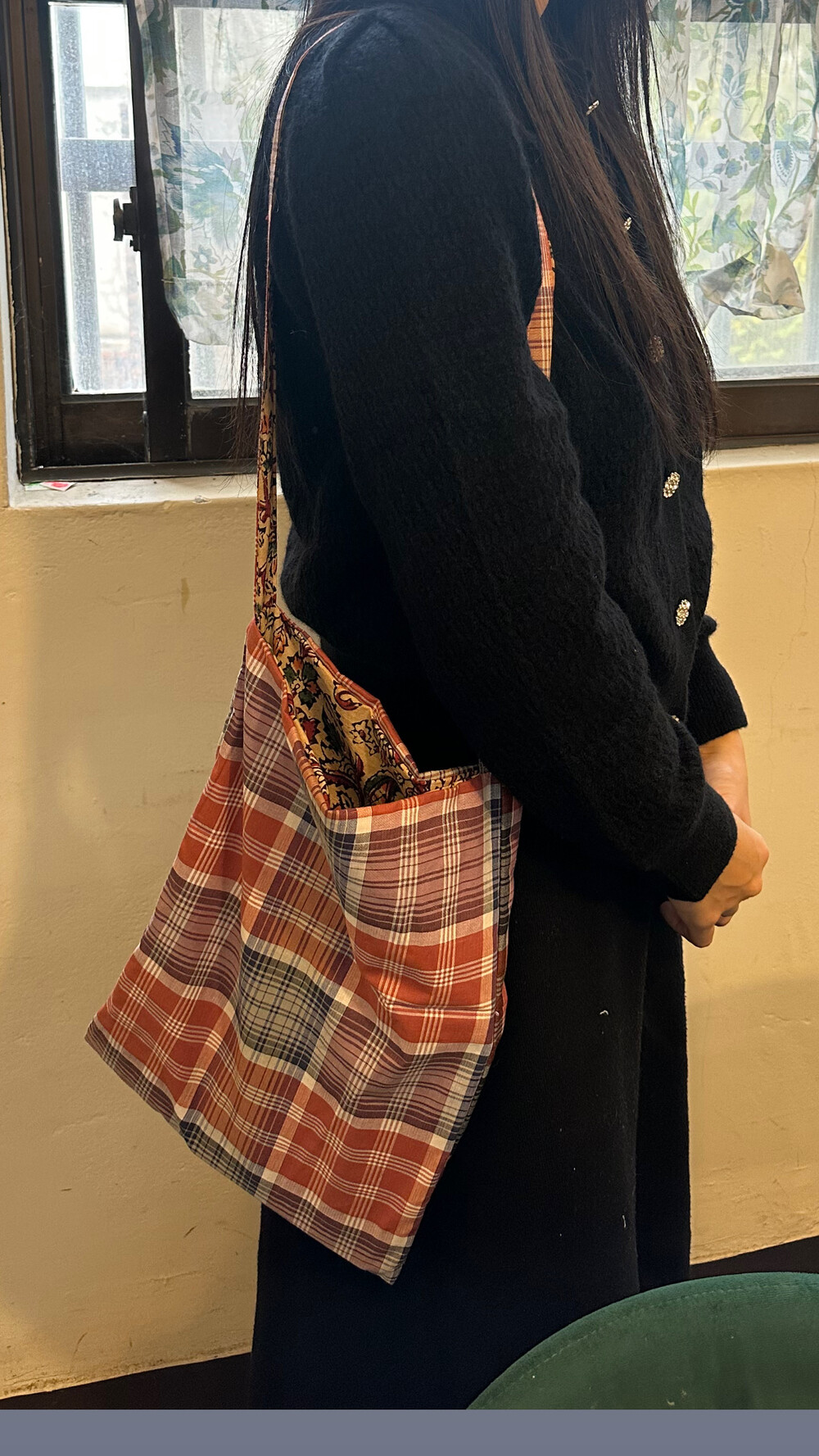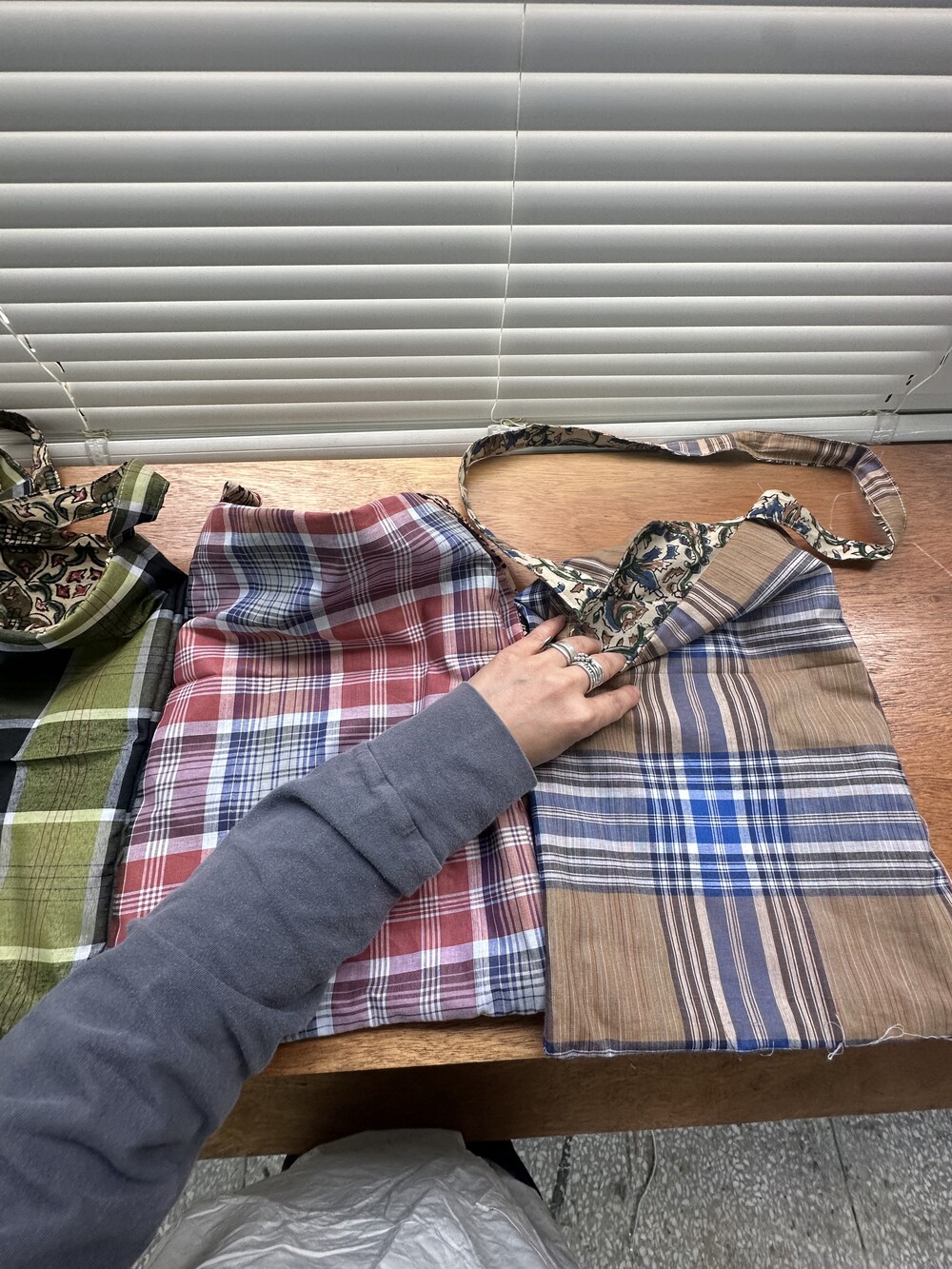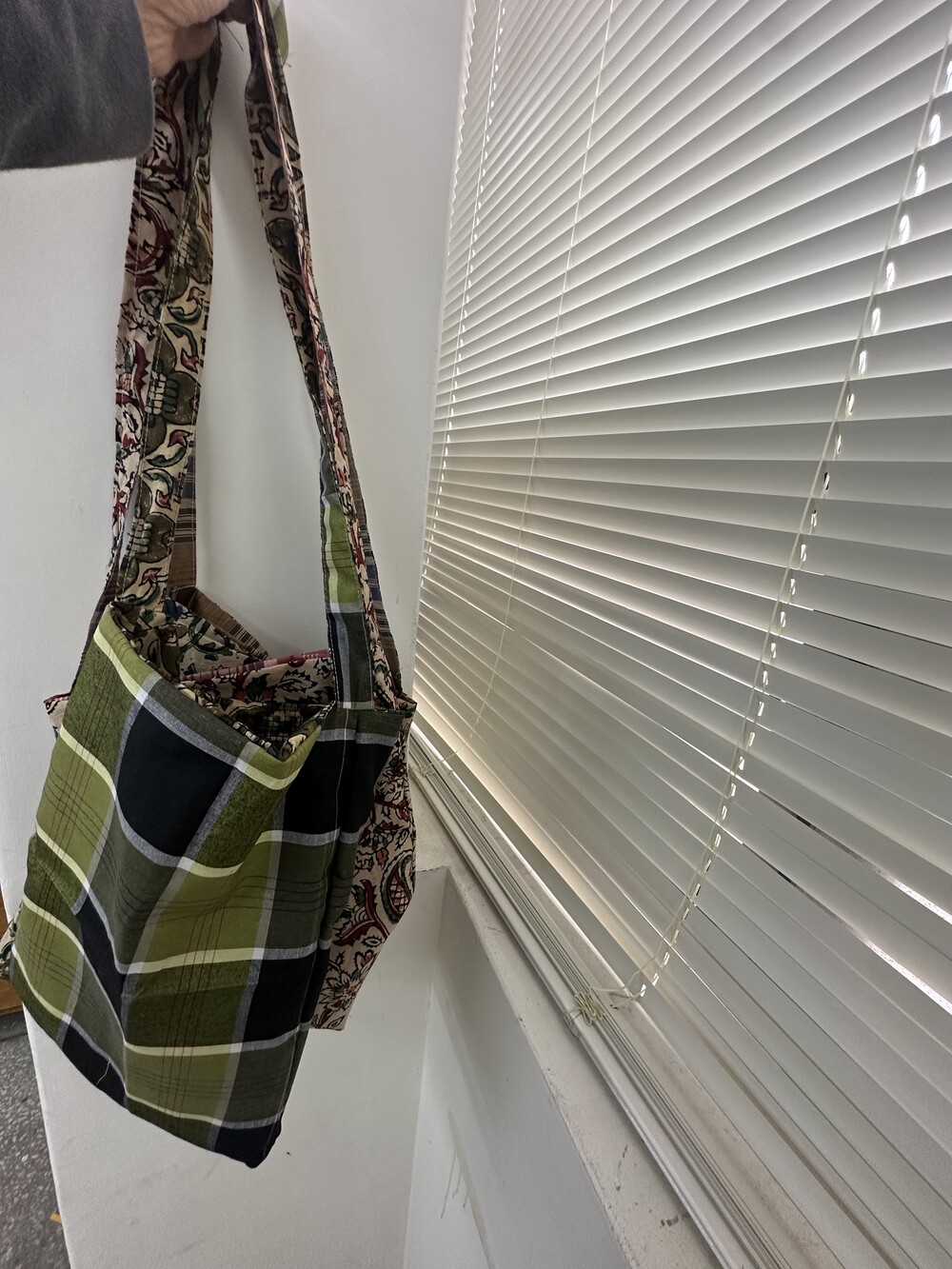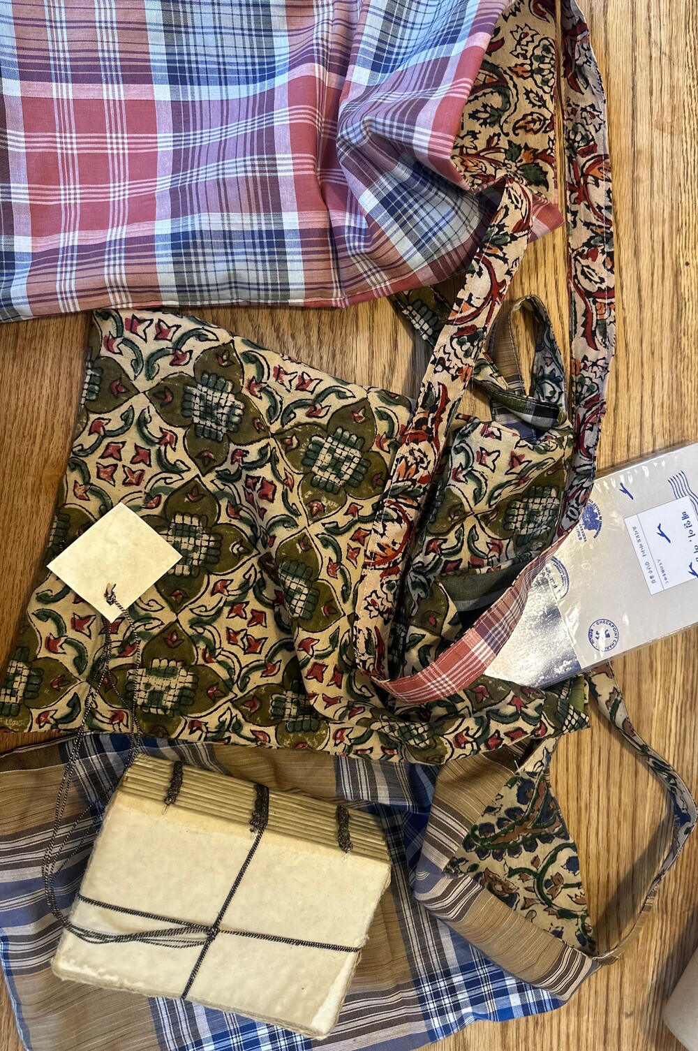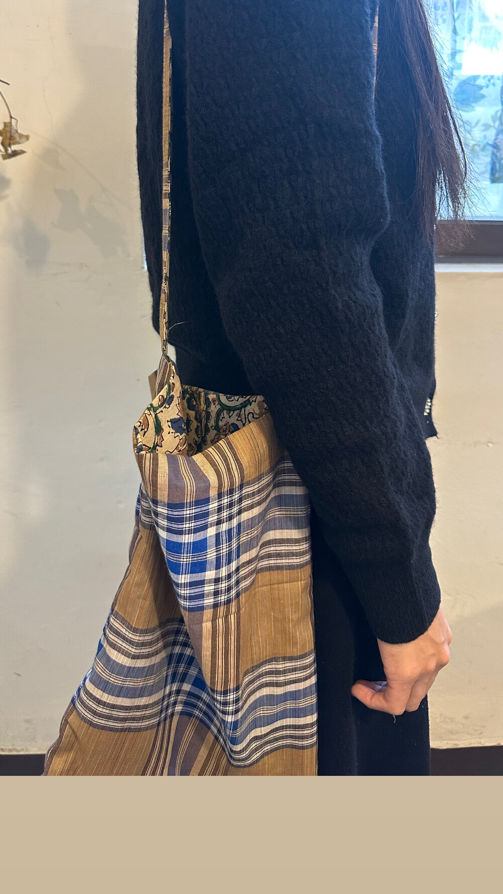 마드라스체크와 머드염색의 면 패브릭으러 만들어진 리버시블 가방이에요.15*34사이즈이고 핸들갈이 45인(사진보다 좀 더 길어요) 여행갈때 여권 휴대폰 핸드크림 책한권 넣기 딱 좋은 사이즈에요❤️ 주문제작으로 3-5소요됩니다❤️