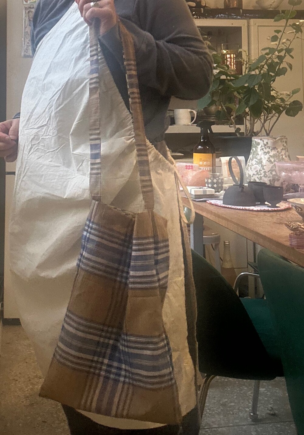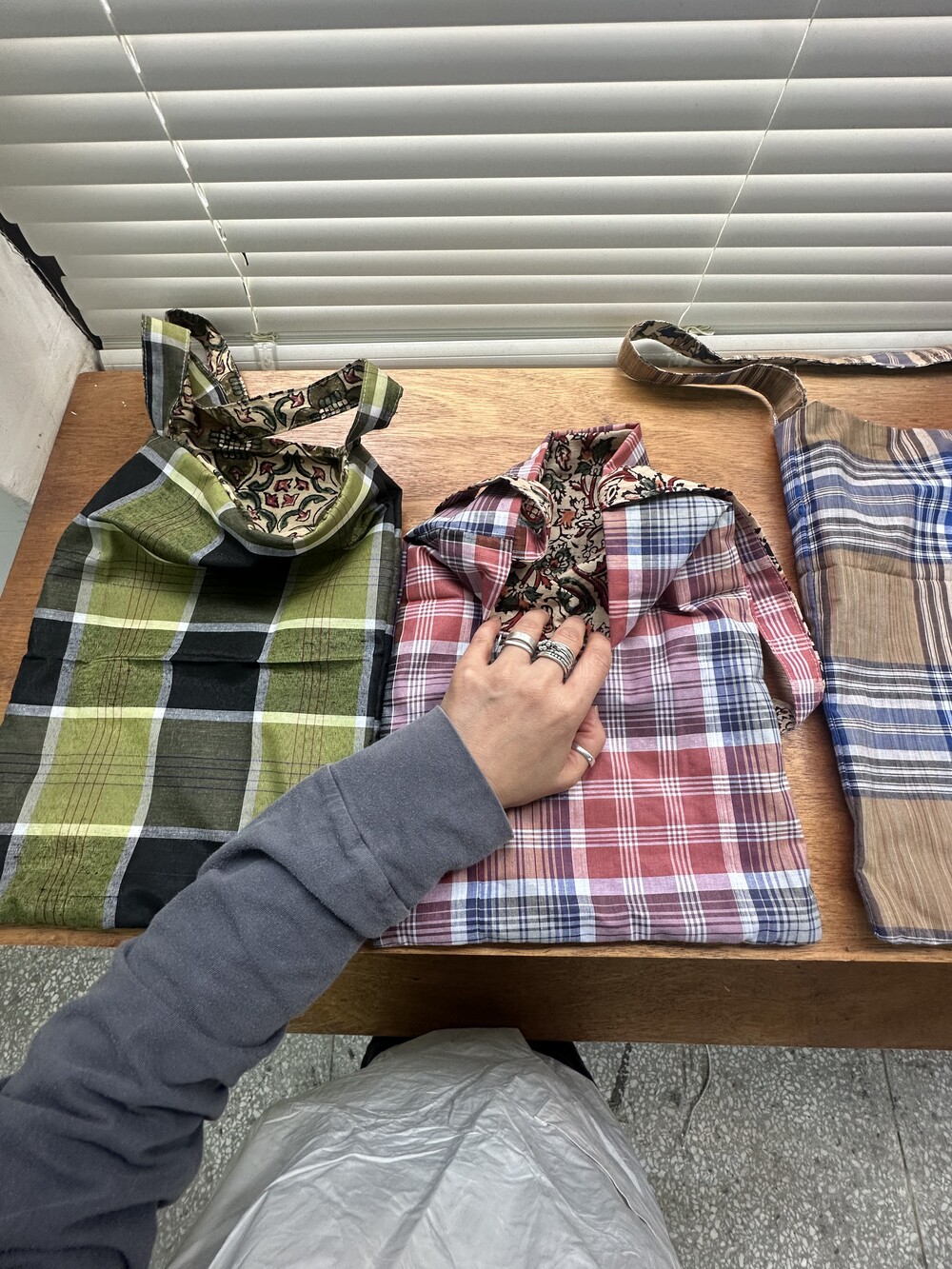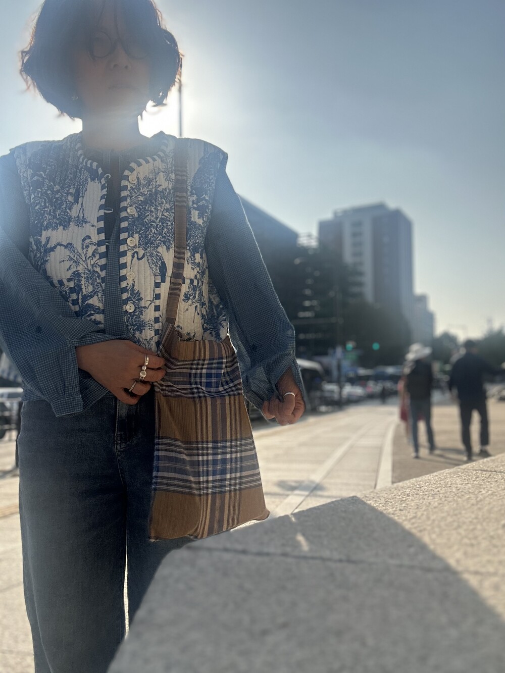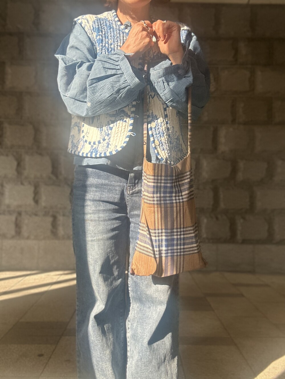 마드라스체크와 머드염색의 면 패브릭으러 만들어진 리버시블 가방이에요.15*34사이즈이고 핸들갈이 45인(사진보다 좀 더 길어요) 여행갈때 여권 휴대폰 핸드크림 책한권 넣기 딱 좋은 사이즈에요❤️ 주문제작으로 3-5소요됩니다❤️