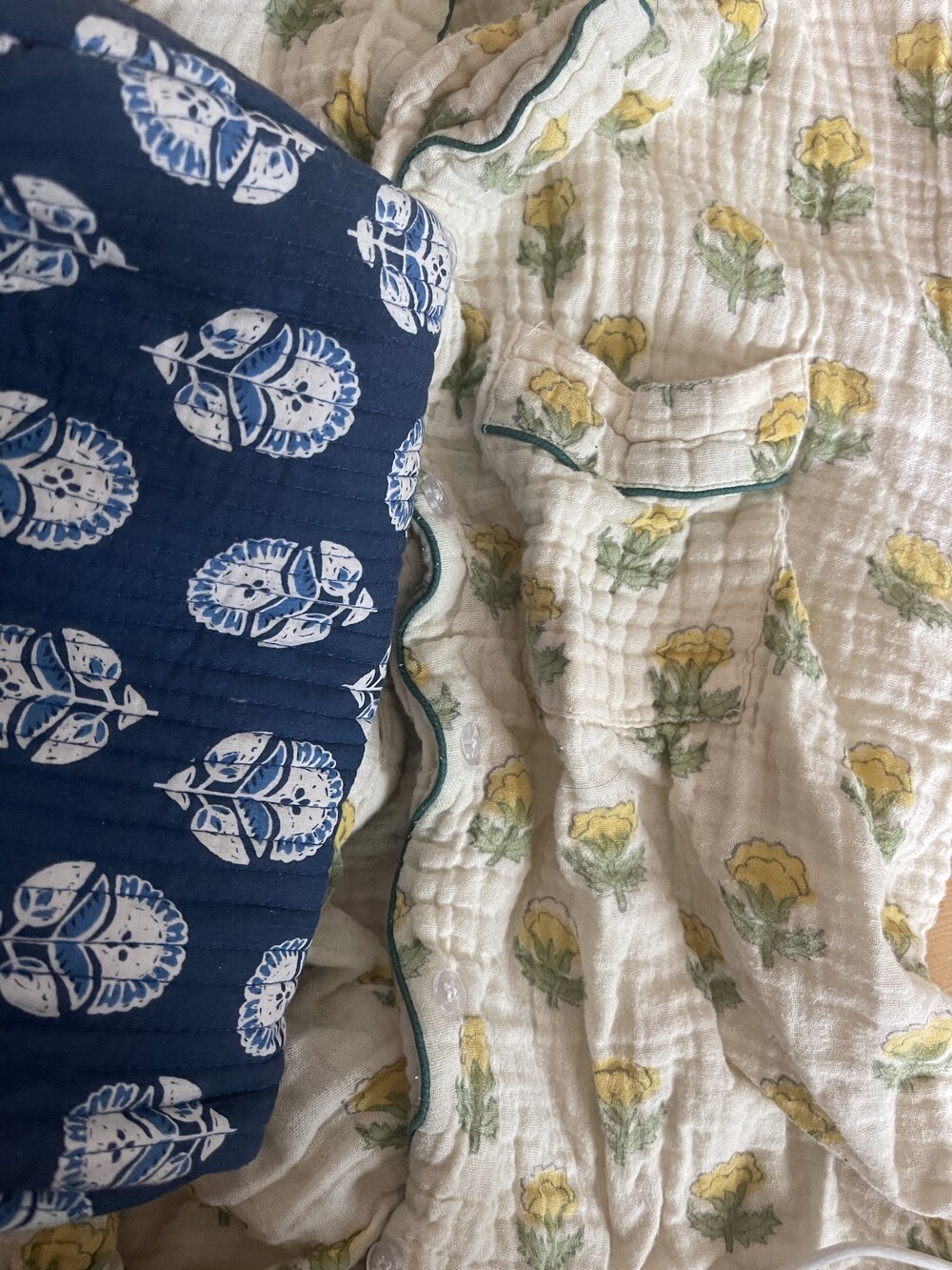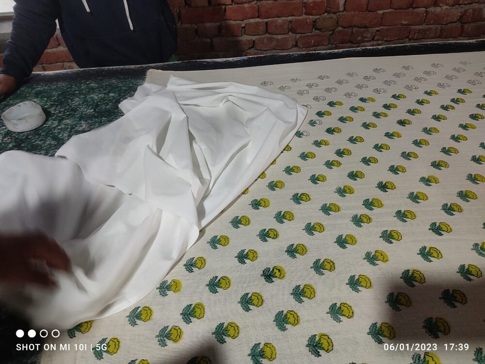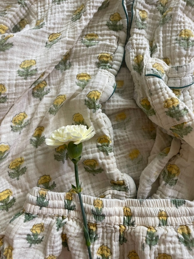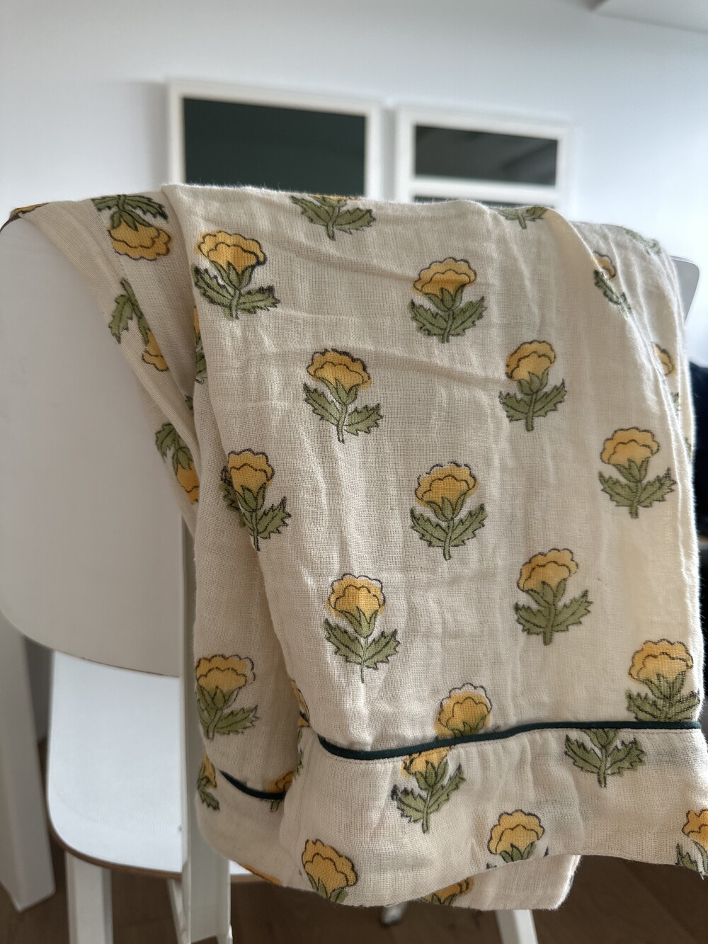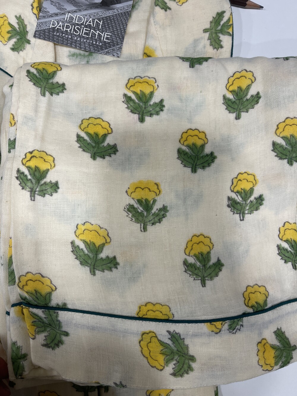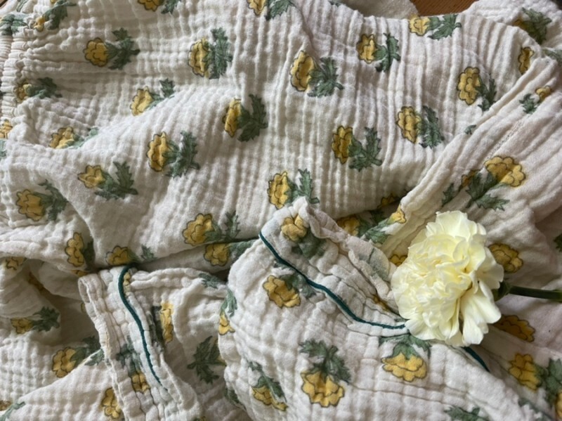가장좋은 인도면거즈에 손으로 하나씩 우드블럭으로 프린팅한 소재입니다.