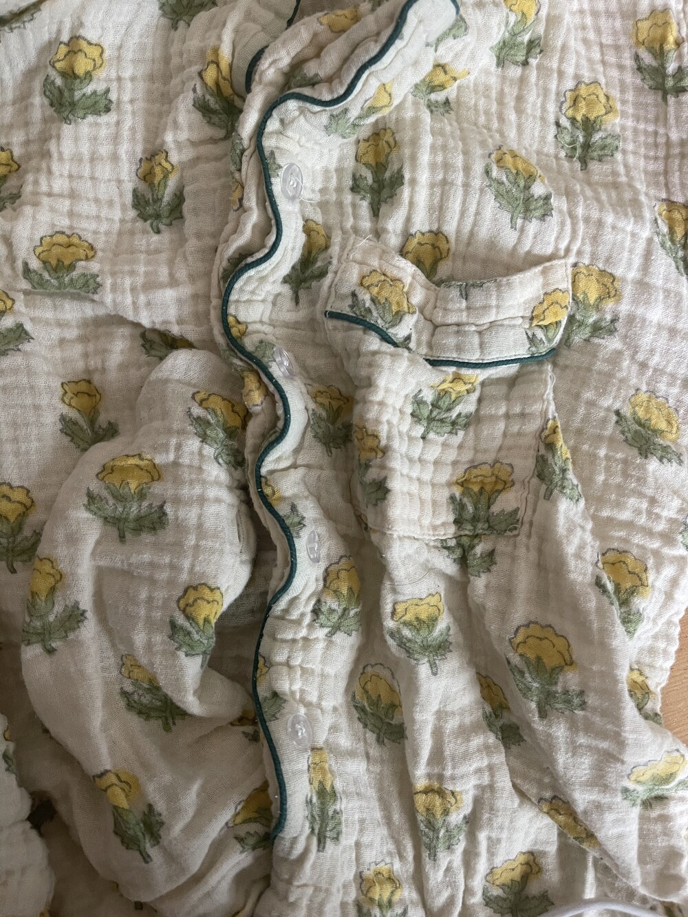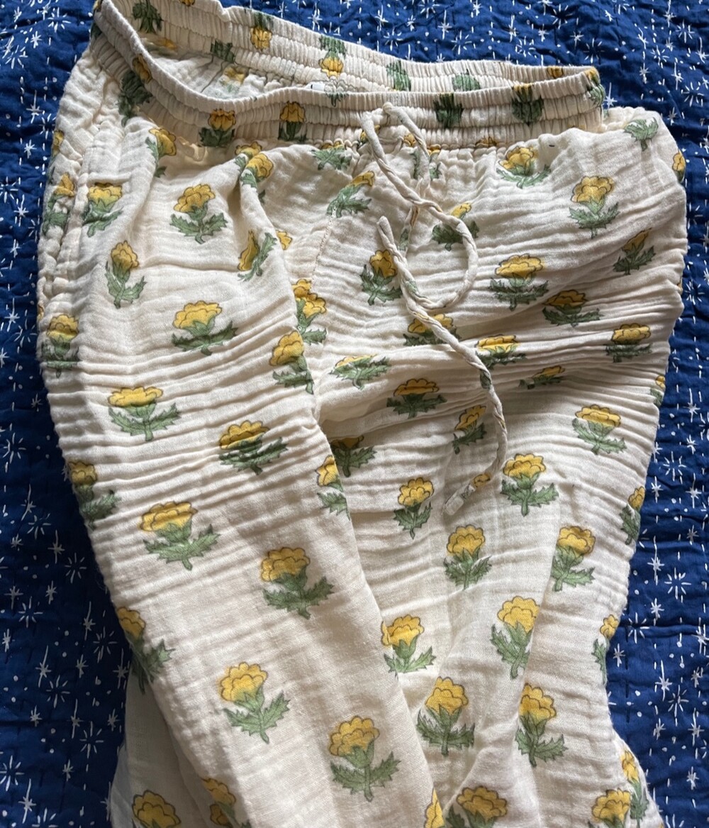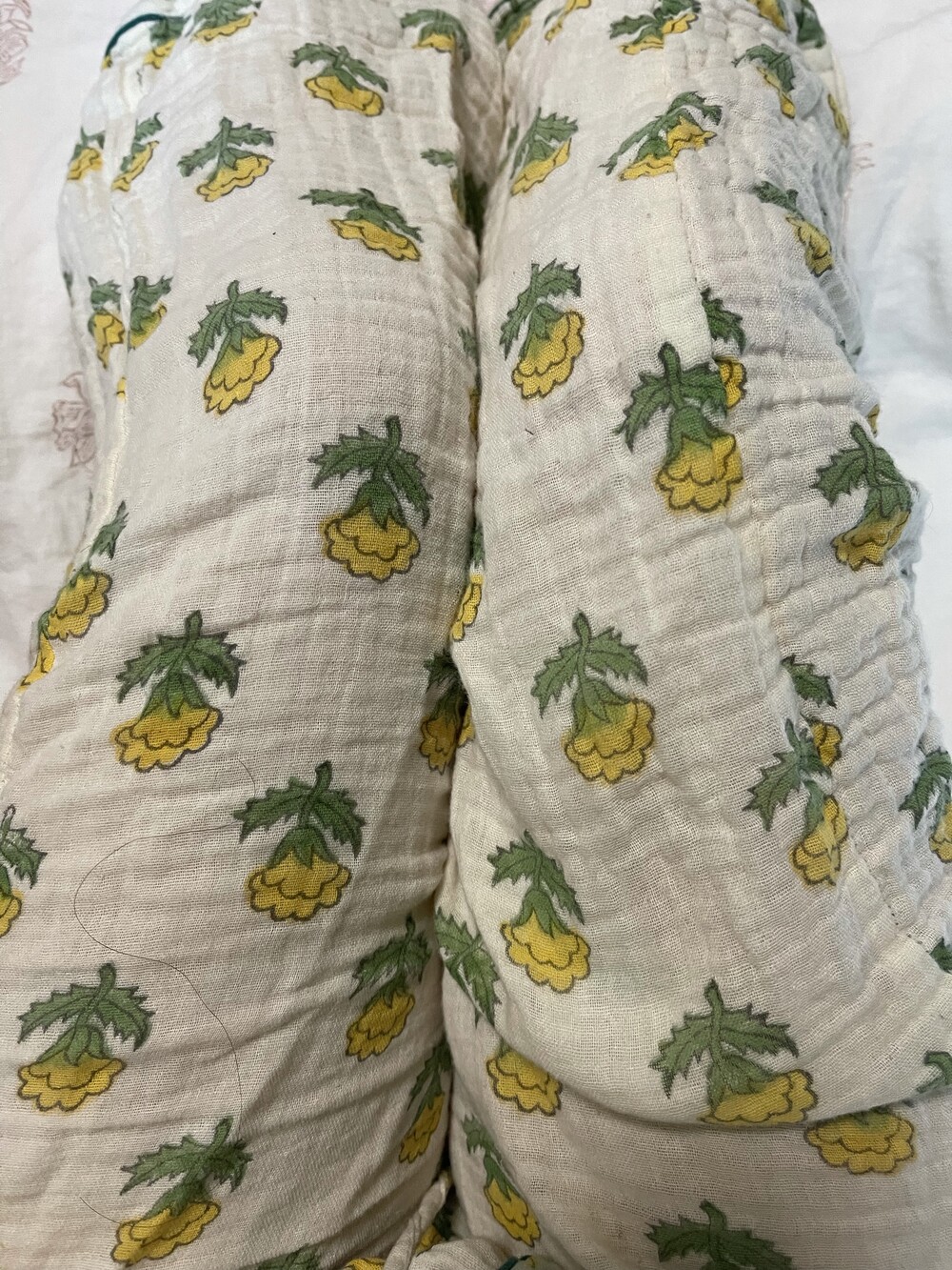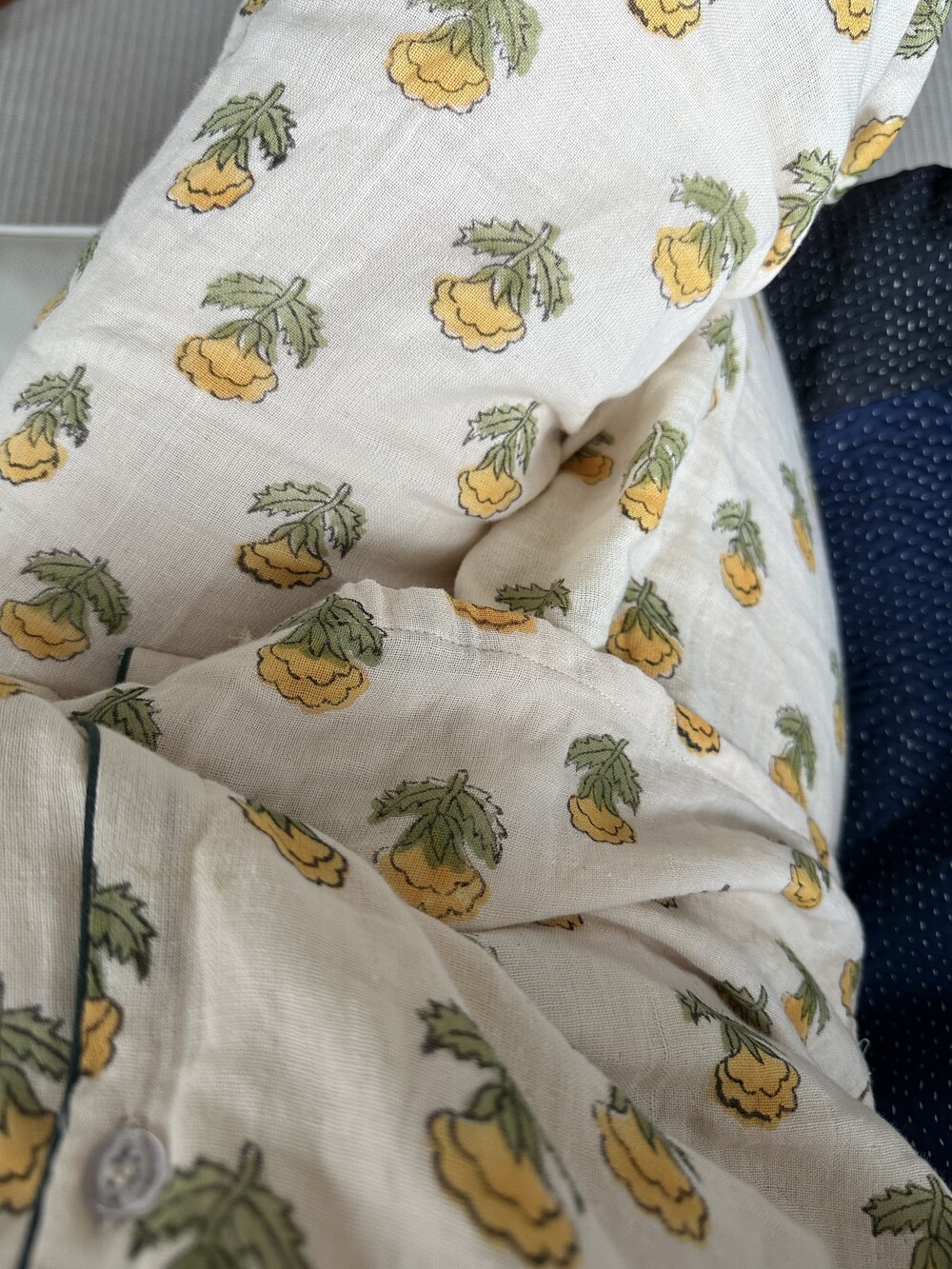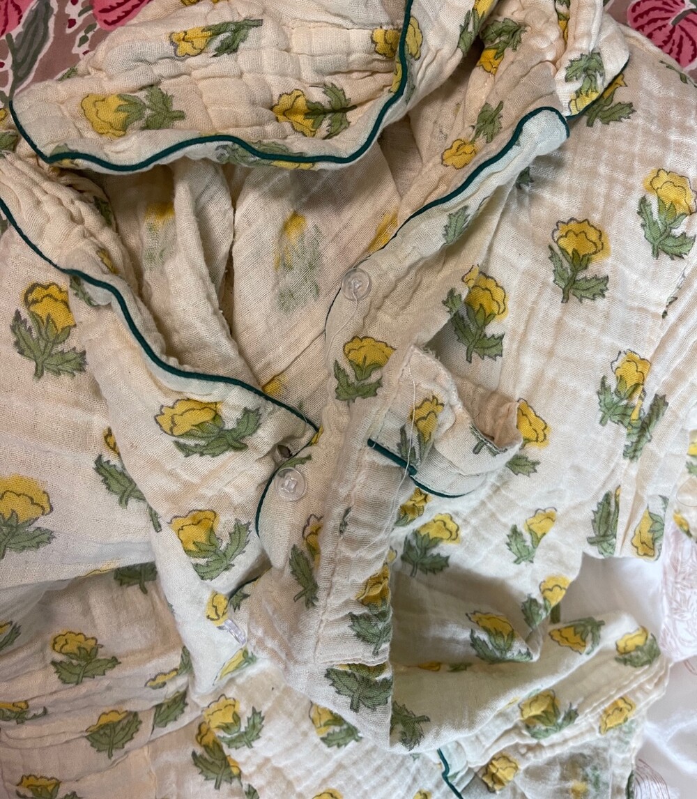 가장좋은 인도면거즈에 손으로 하나씩 우드블럭으로 프린팅한 소재입니다.