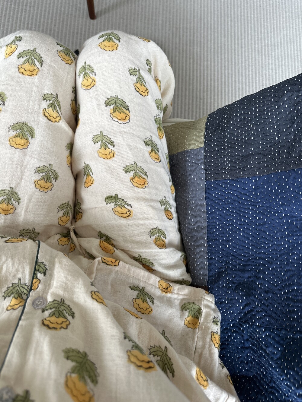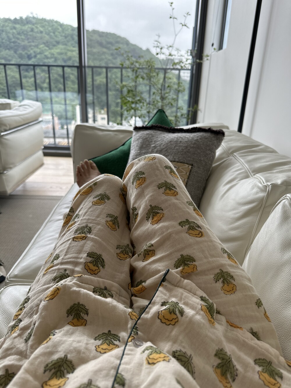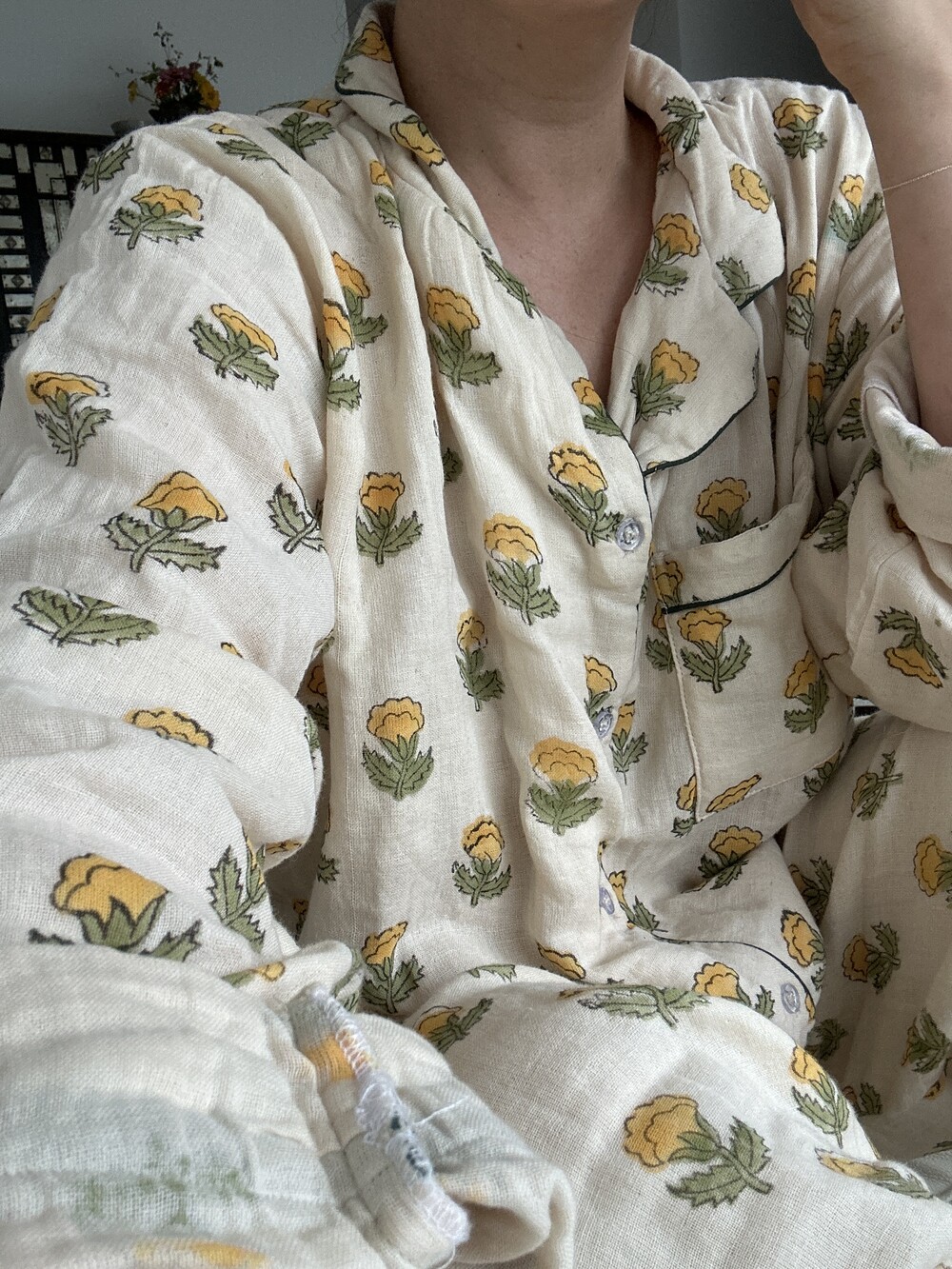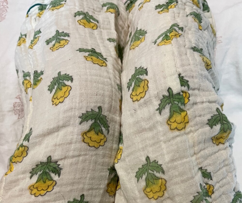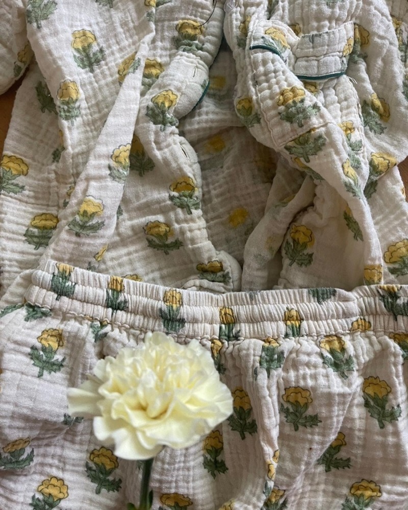 가장좋은 인도면거즈에 손으로 하나씩 우드블럭으로 프린팅한 소재입니다.