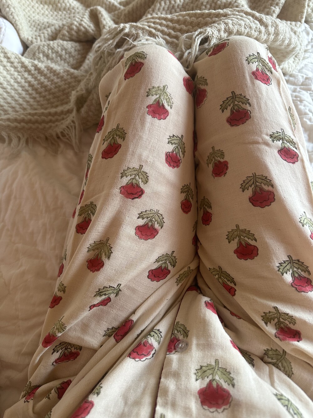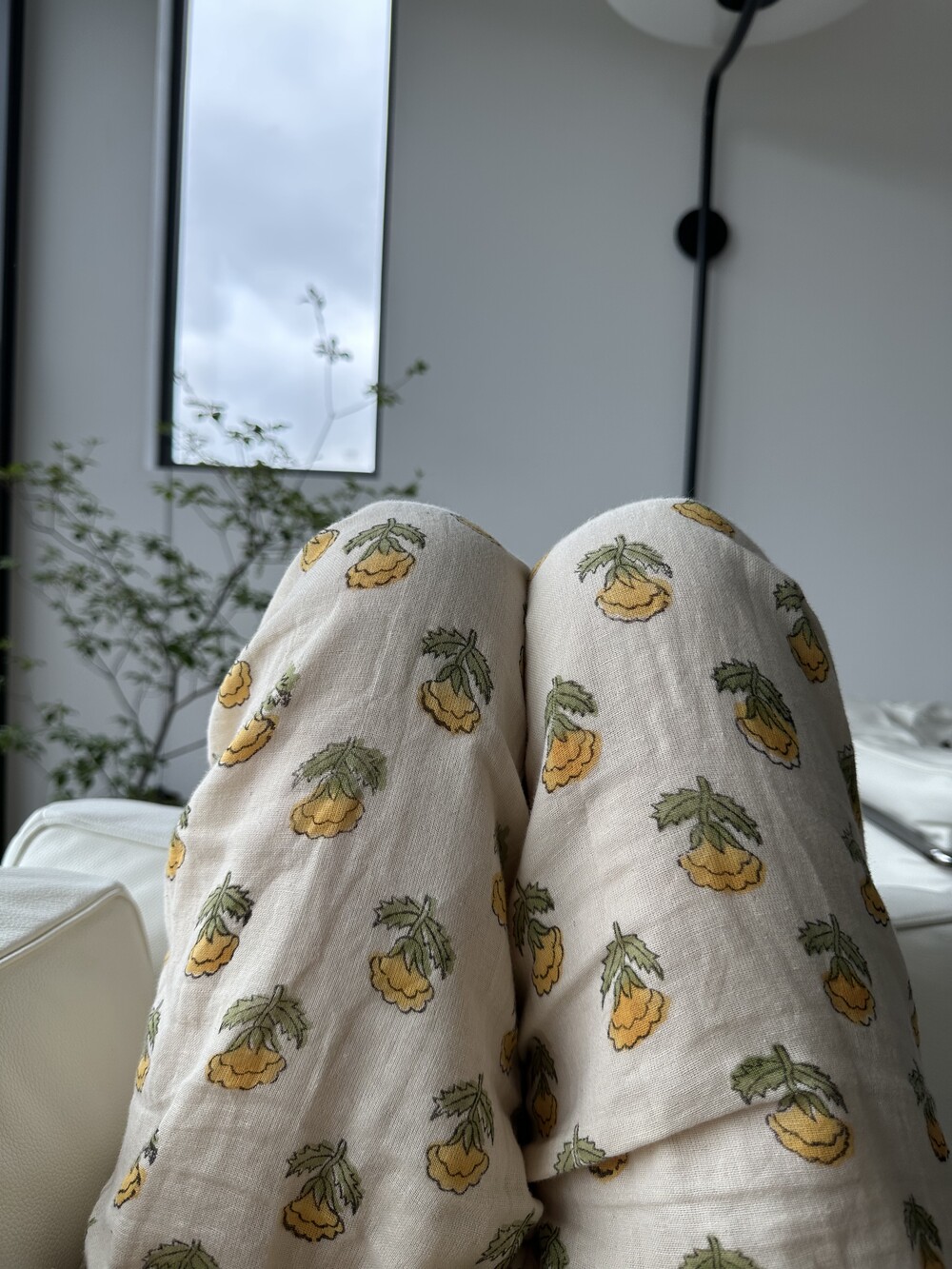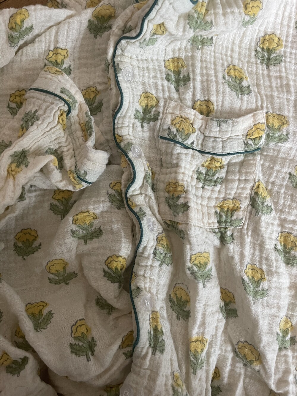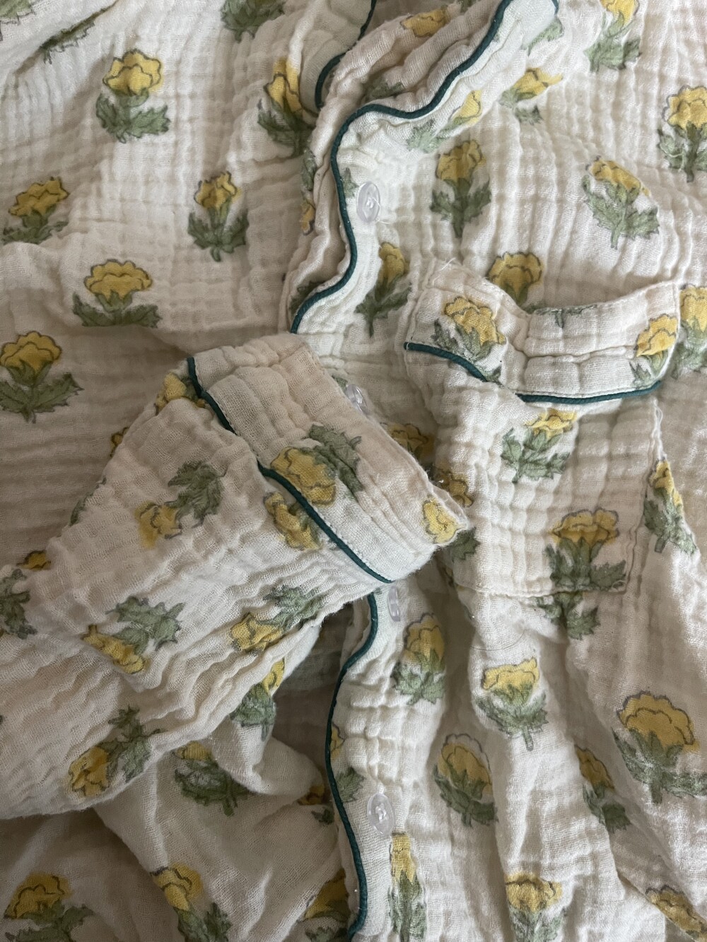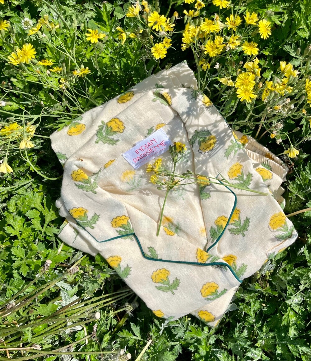가장좋은 인도면거즈에 손으로 하나씩 우드블럭으로 프린팅한 소재입니다.
