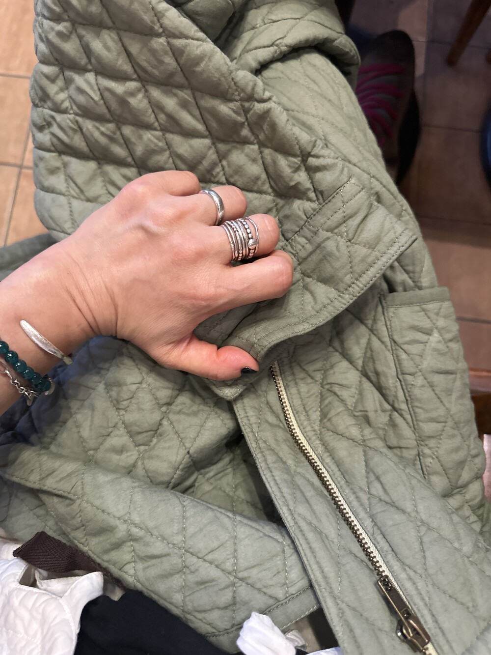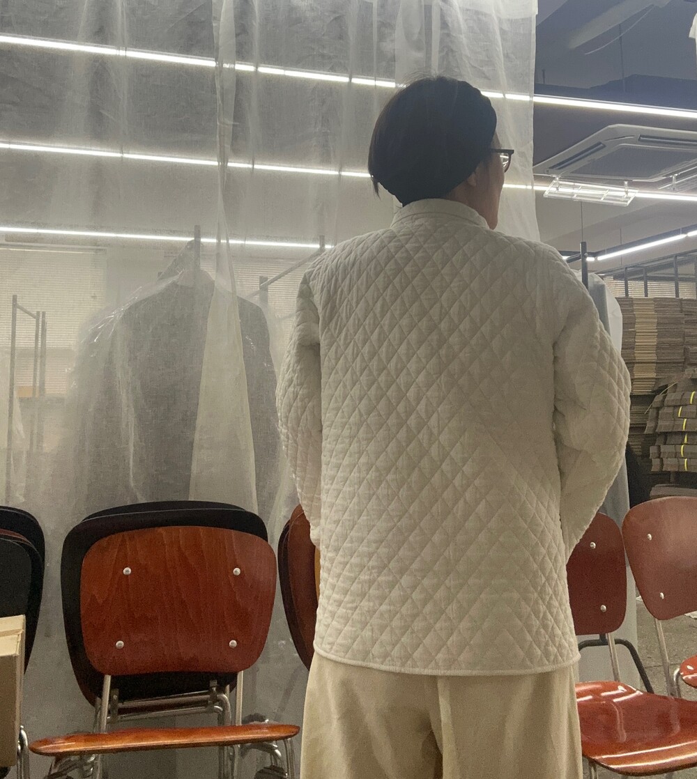 굉장히 평범한 디자인같지만 퀼팅과 소재에 신경썼으며 목화솜이 살짝들어가있어서 가볍고 따뜻합니다.