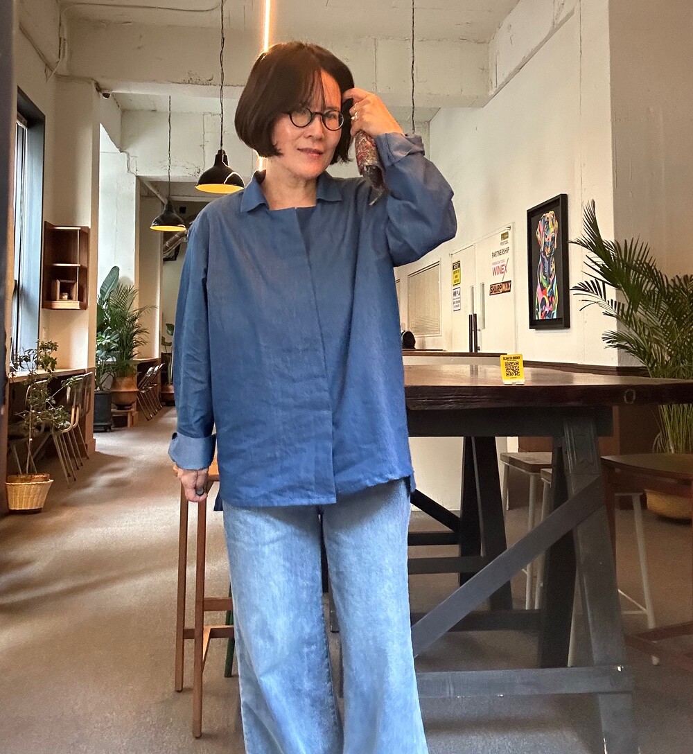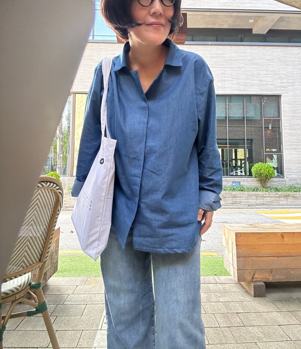 친환경 소재 denim tencil소재에요,소매길이 넉넉하게 걷어입으시면 되고 가슴둘레 51-54 기장 67이고 라지는 가슴둘레 63이에요.좀 더 보드랍고 따뜻한 느낌은 연청,좌르르 핏이고 좀 더 힘있는 소재는 진청이에요. 주문제작이지만 원단이 모두 준비되어 담주에 받으시는 제품이에요. 터틀넥과 입으셔도 좋아요 전,라지 입었어요.준비된 원단으로만 오더받아요.꼭 소장해주세요. 이번주금욜까지민 프리오더가로 진행해요