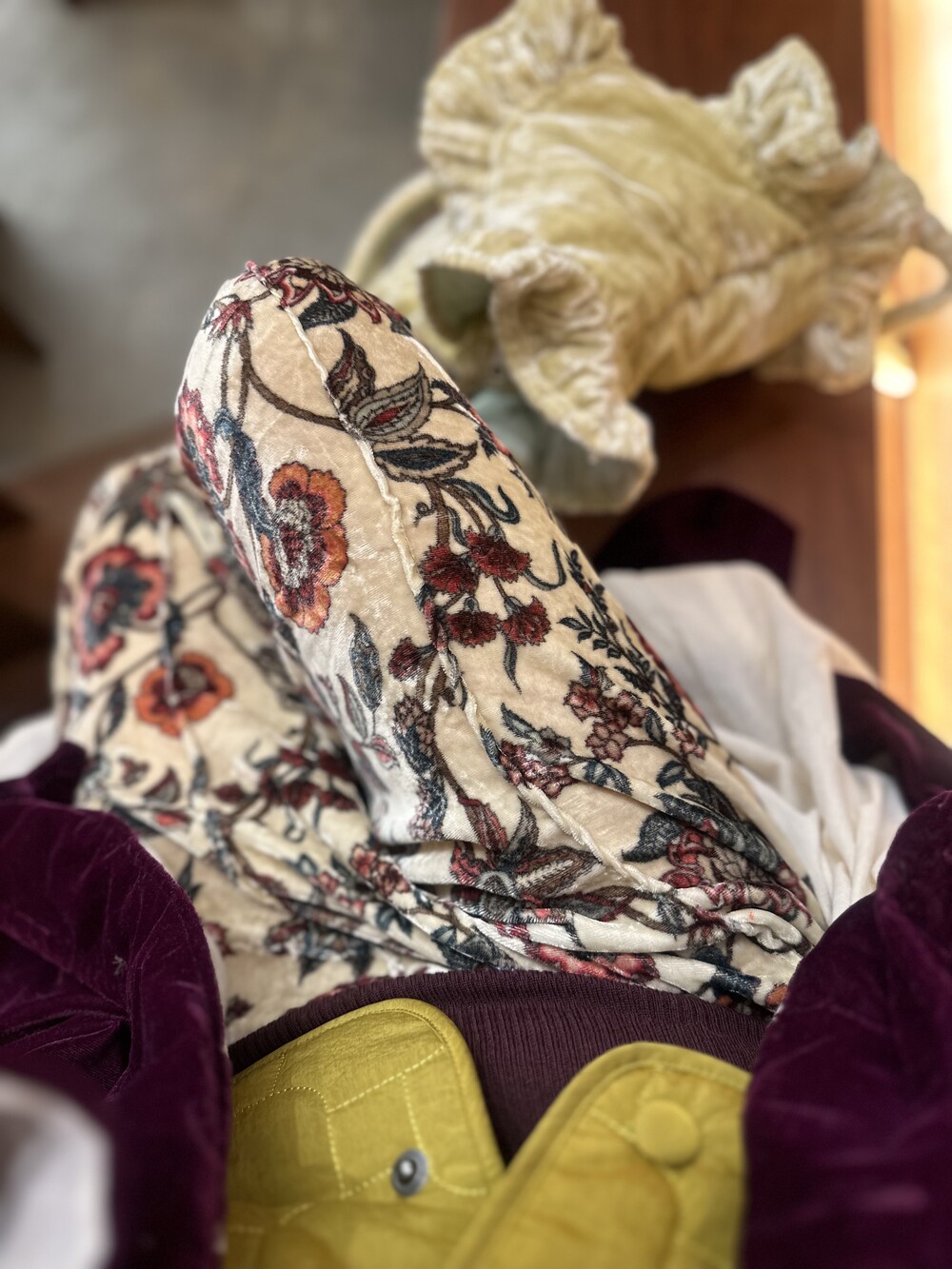 뭔가 고전적인 느낌의 패브릭이에요.아주가볍고 따뜻하고 포근해요.