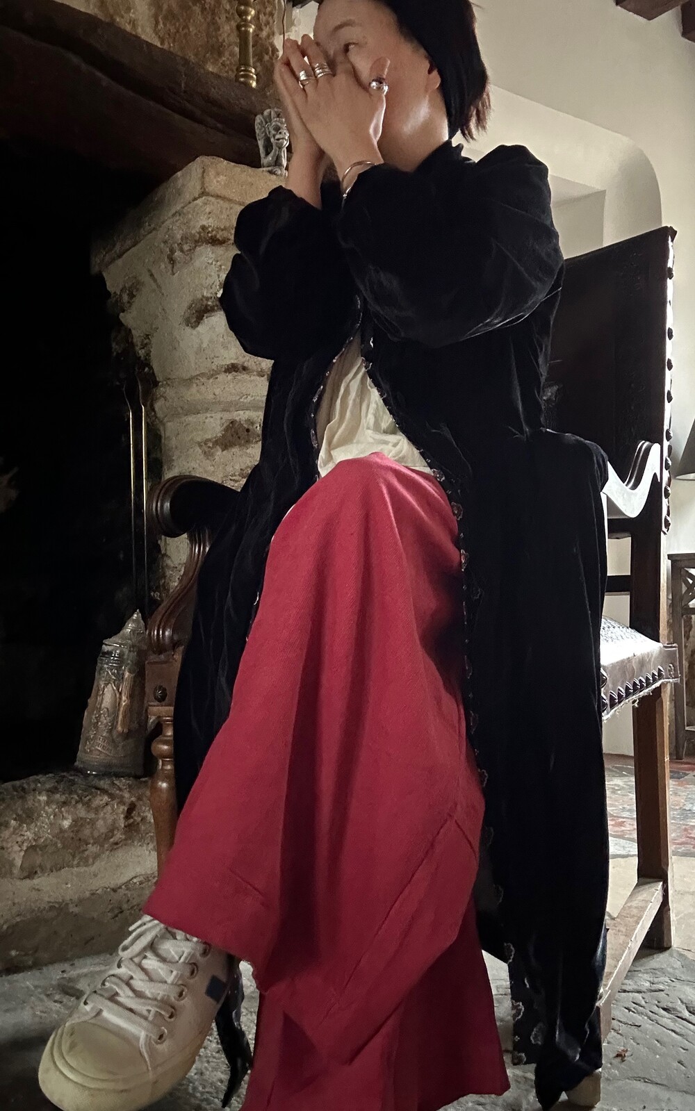 면 골덴 소재이고 아주 얇은 골이에요.기장 90이고