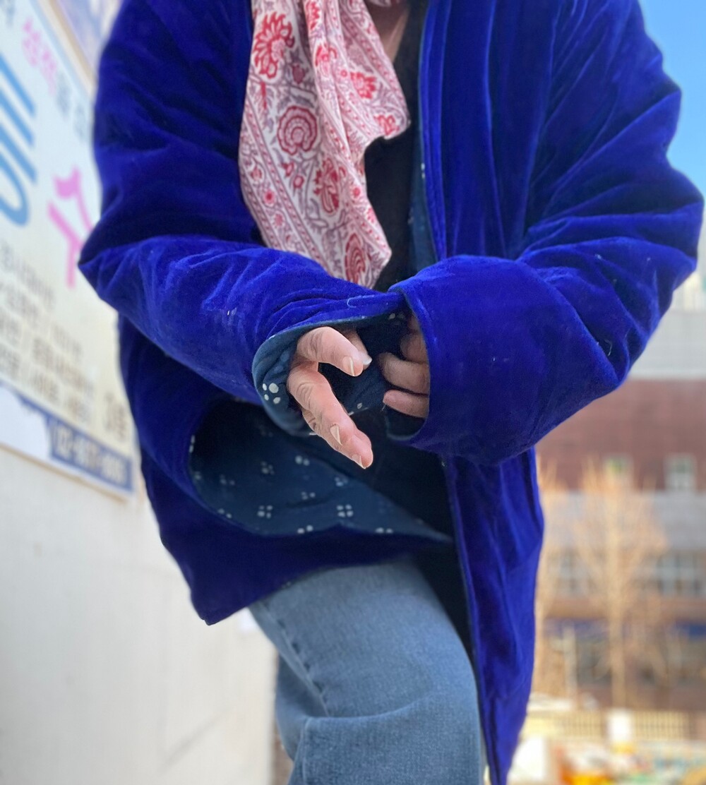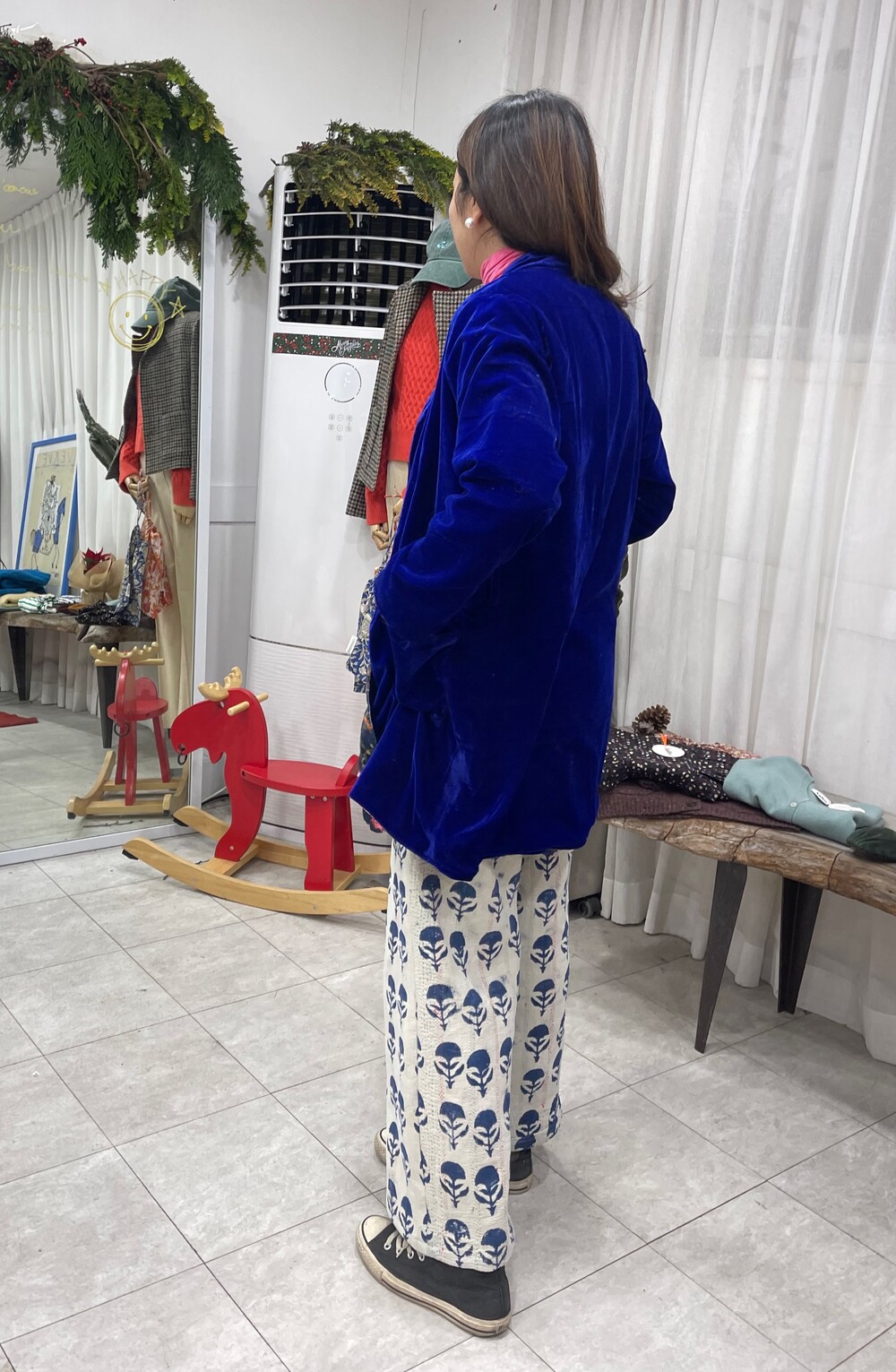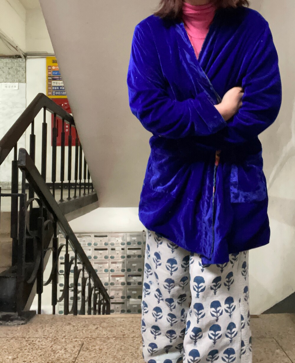 인도의 면벨벳이에요 촉감도 넘 좋고 실키한 감촉으로 좌르르 벨벳이에요.가슴둘레는 뭐 완전 넉넉히 62정도이구요 소매도 61-62정도이고 기장은 85와 90 두가지로 진행됩니다.양면으로 입으실수있고 양면 모두 주머니 장착되어있으며 위에 코트입으시기도 좋고 패딩입으셔도되요