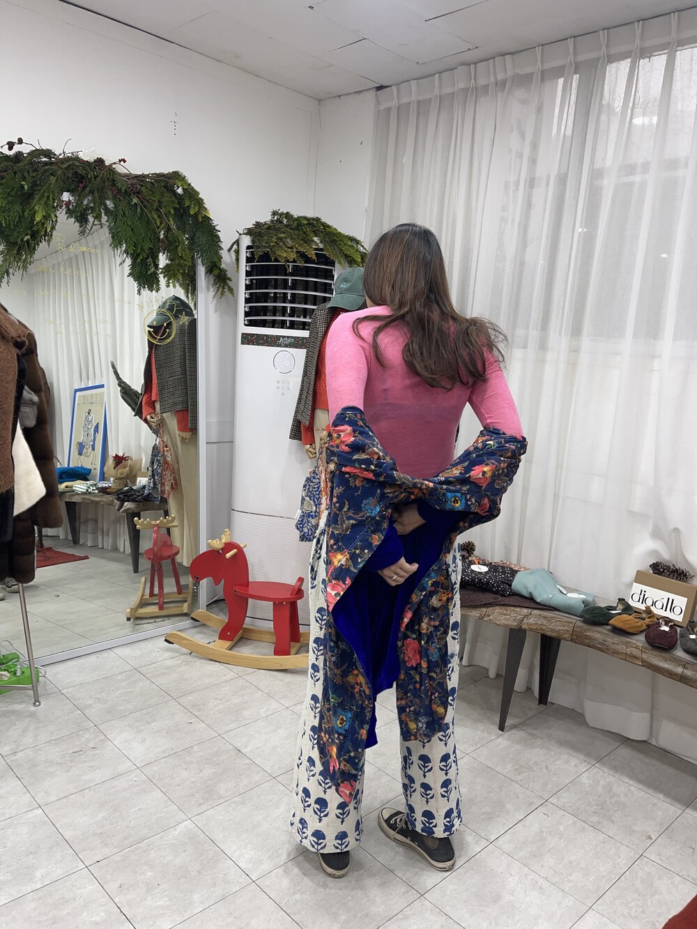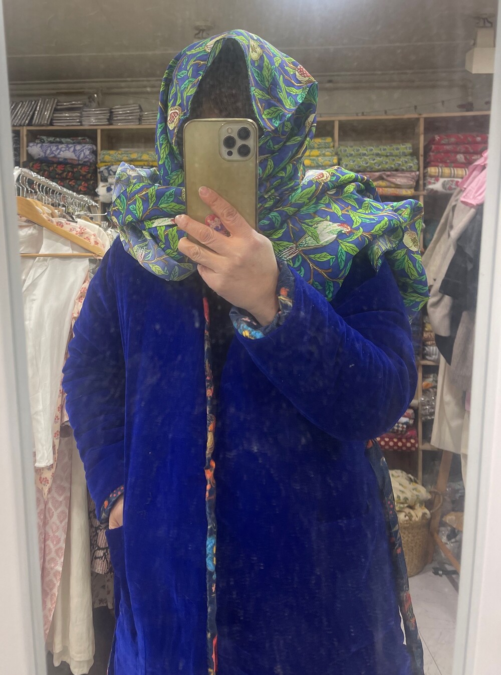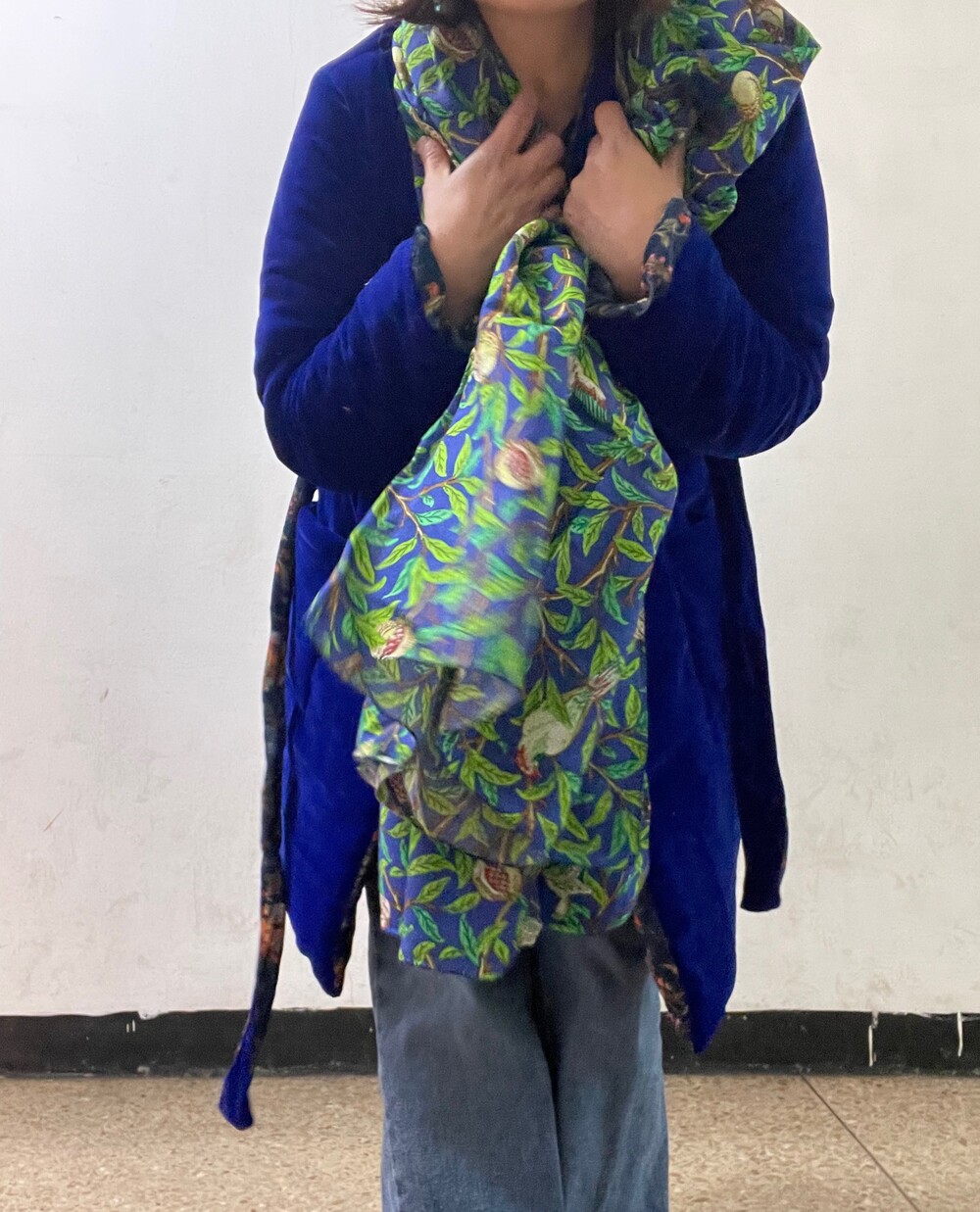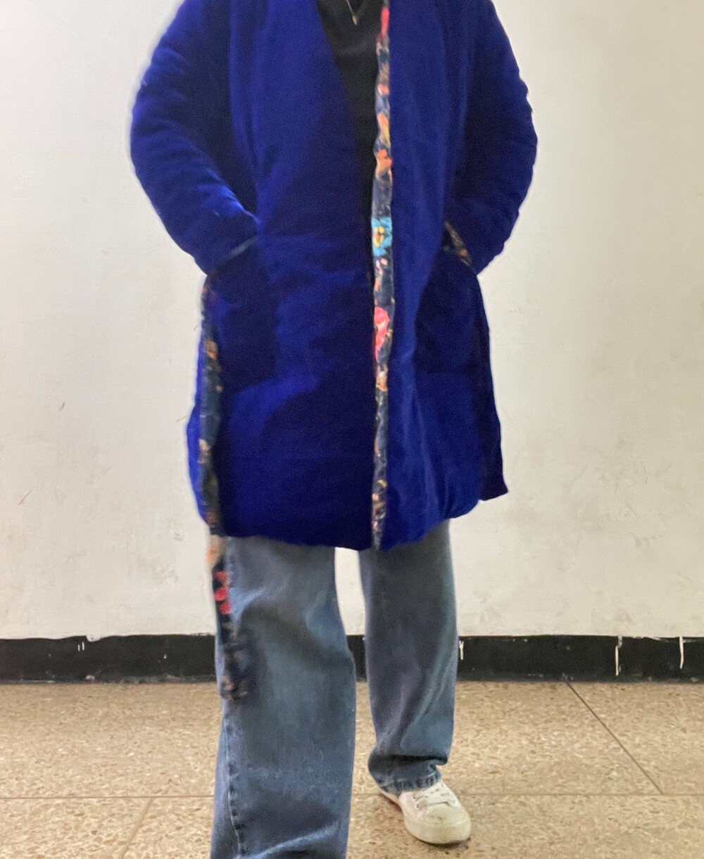 인도의 면벨벳이에요 촉감도 넘 좋고 실키한 감촉으로 좌르르 벨벳이에요.가슴둘레는 뭐 완전 넉넉히 62정도이구요 소매도 61-62정도이고 기장은 85와 90 두가지로 진행됩니다.양면으로 입으실수있고 양면 모두 주머니 장착되어있으며 위에 코트입으시기도 좋고 패딩입으셔도되요