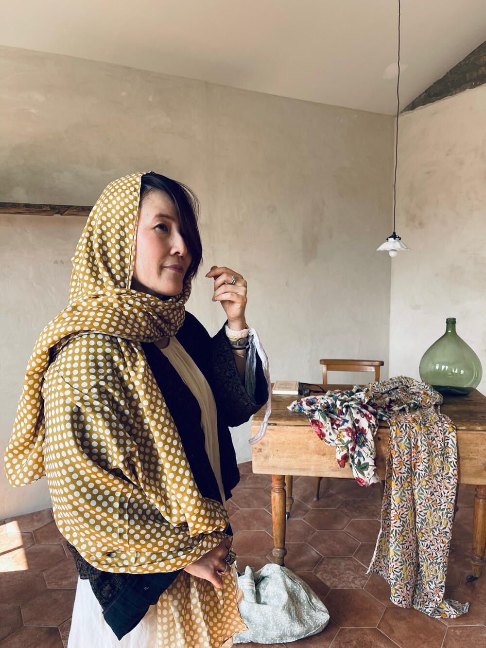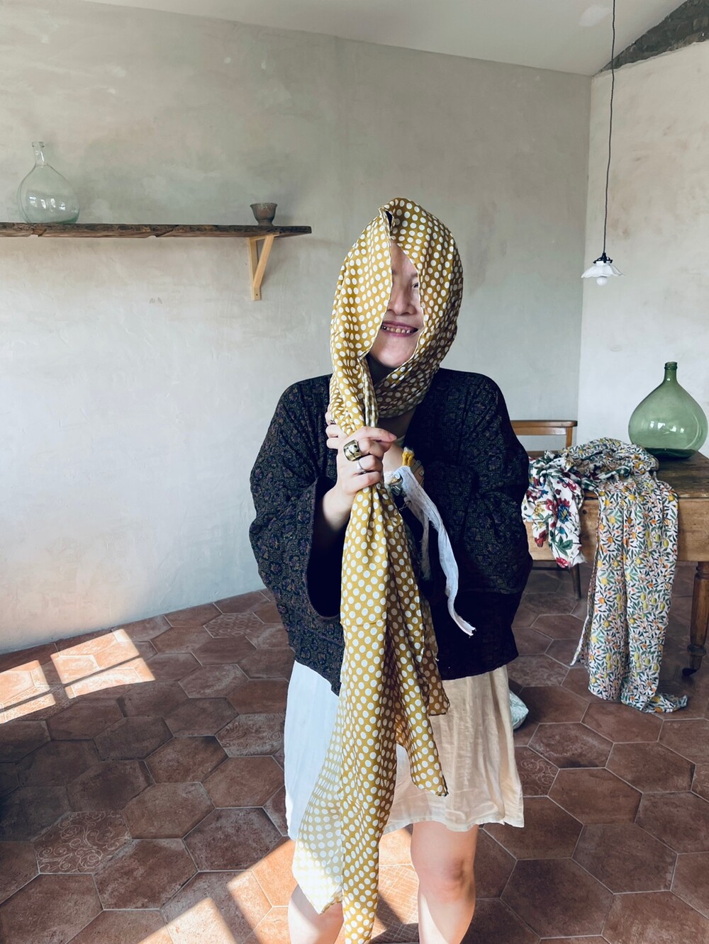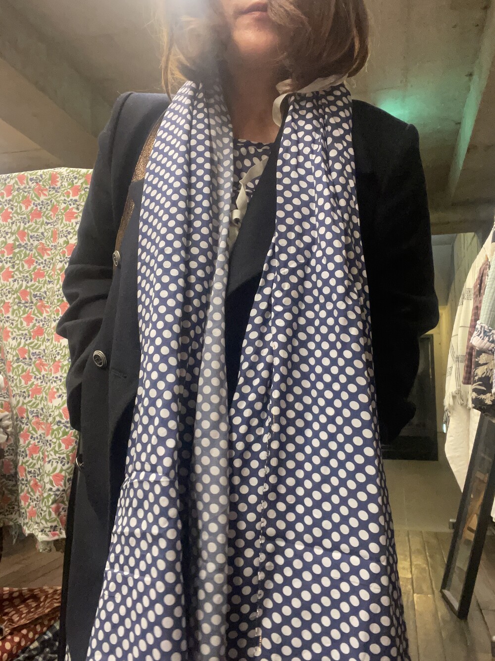 85*177사이의 하부타이 실크 스카프입니다.시몬느 보봐르처럼 멋지게 !