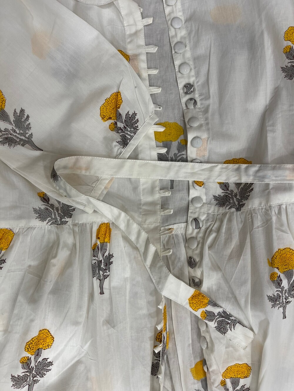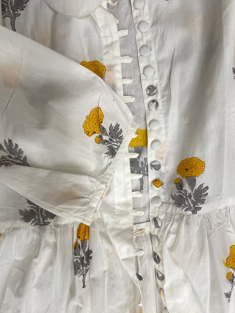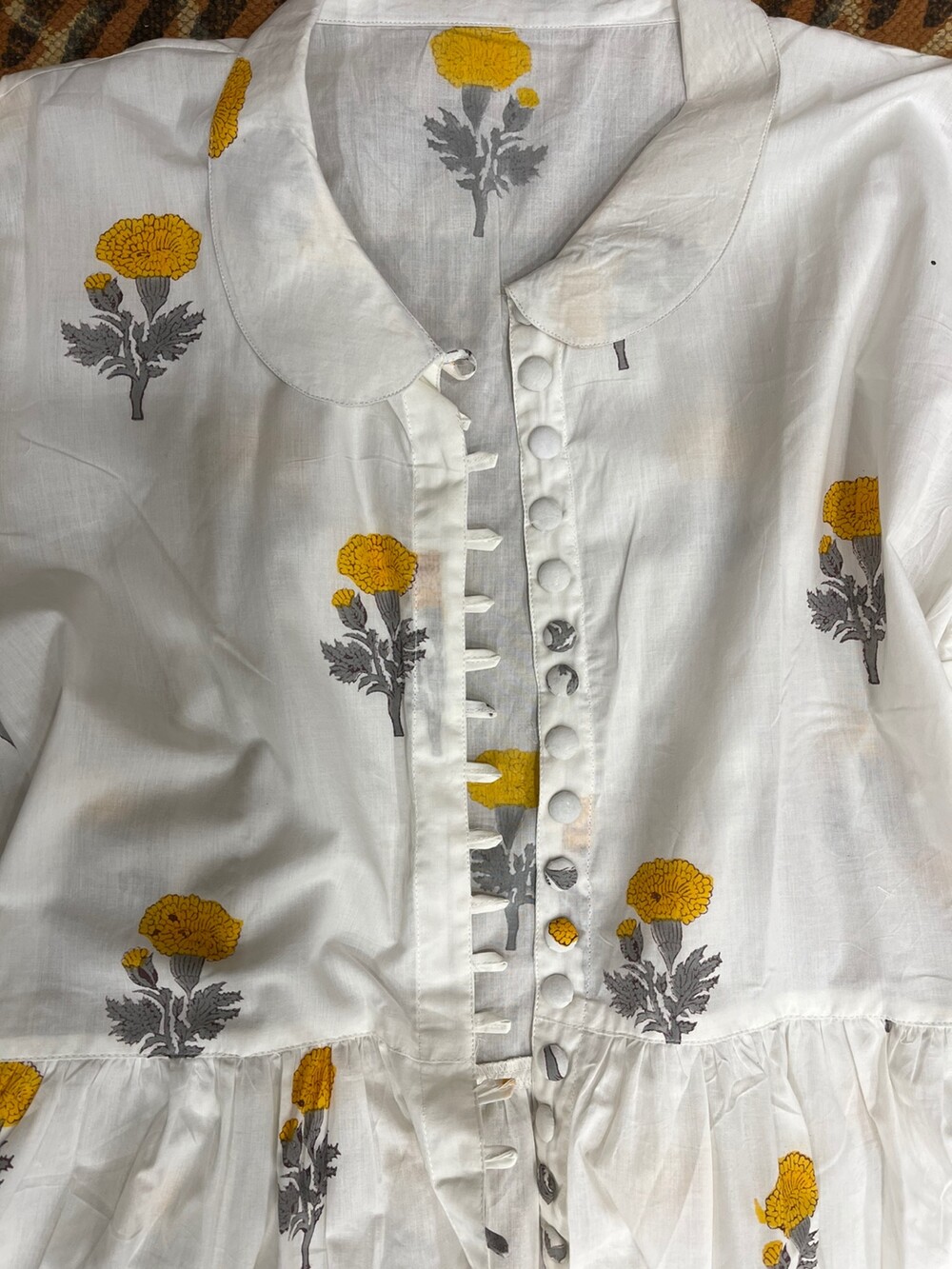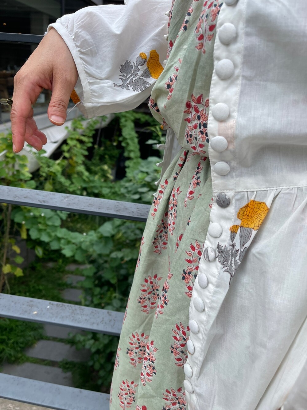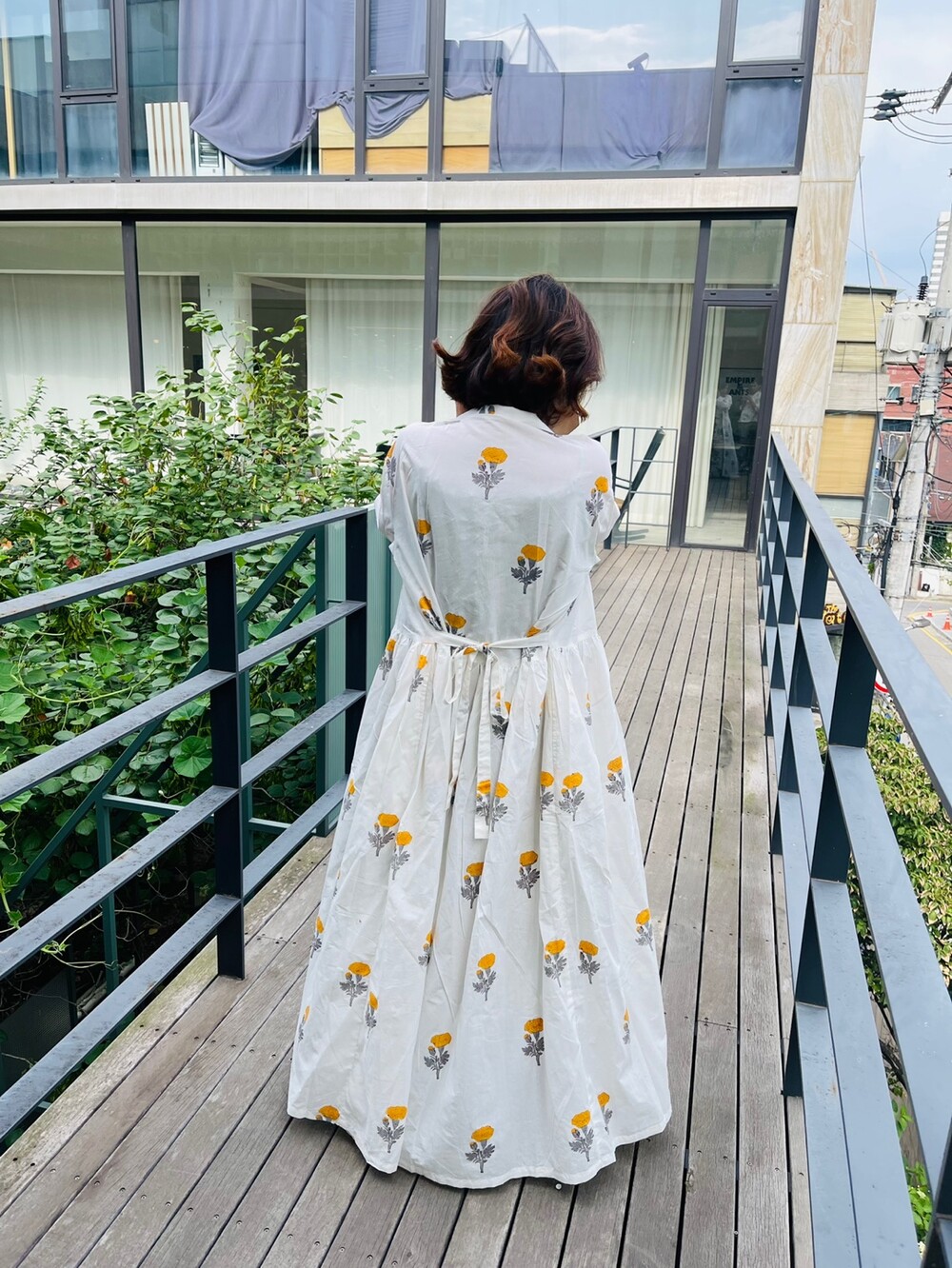 메리골드 플라워의 페턴으로 디자인된 싸개단추하나하나까지 정말 정성스러운 로브이기도 하고 자켓이기도하고 드레스이기도 한 실용적인 옷이에요기장은 원하시는 기장으로 사이즈기재해주심되고 기본 기장은 130센티입니다.