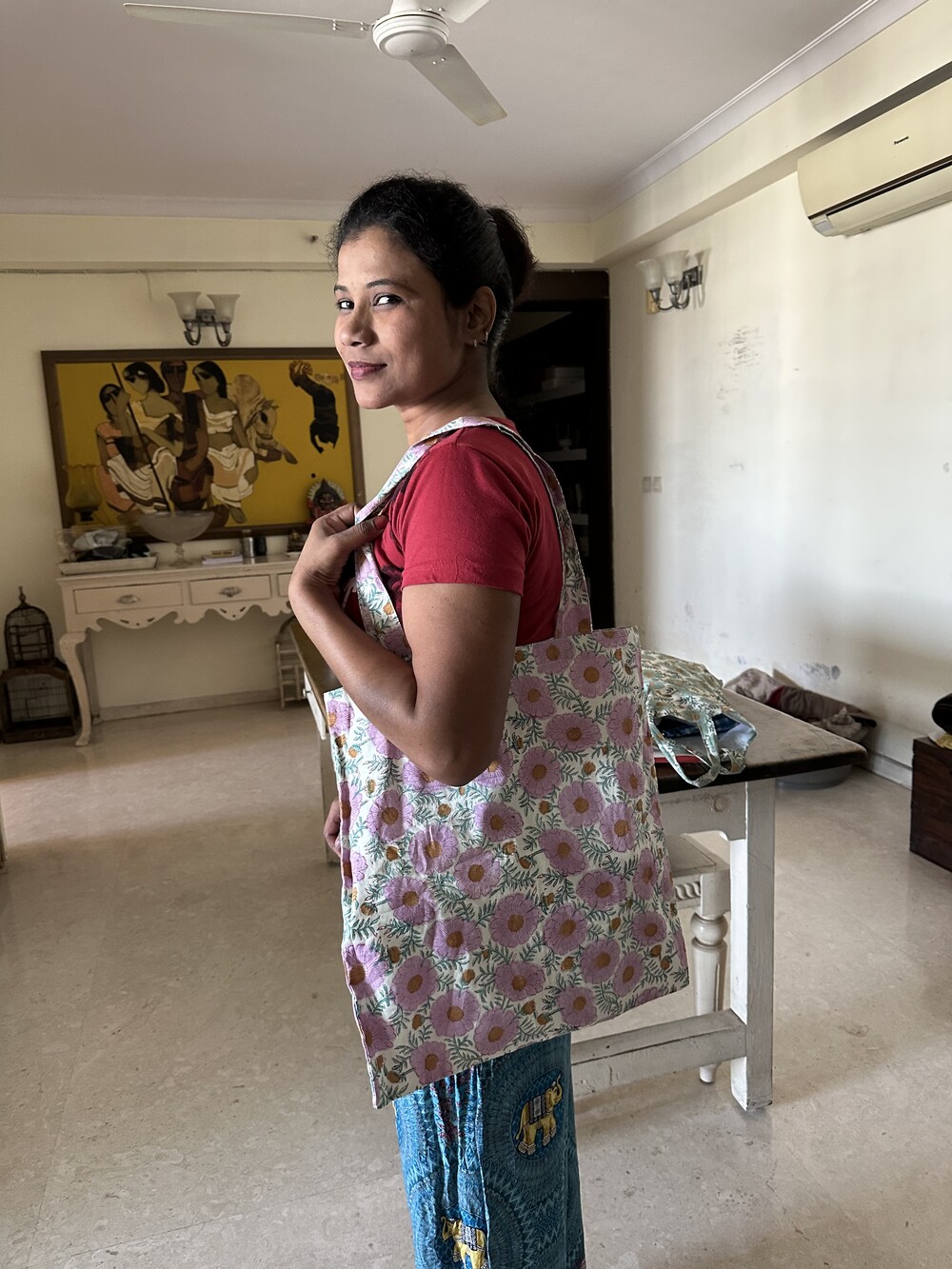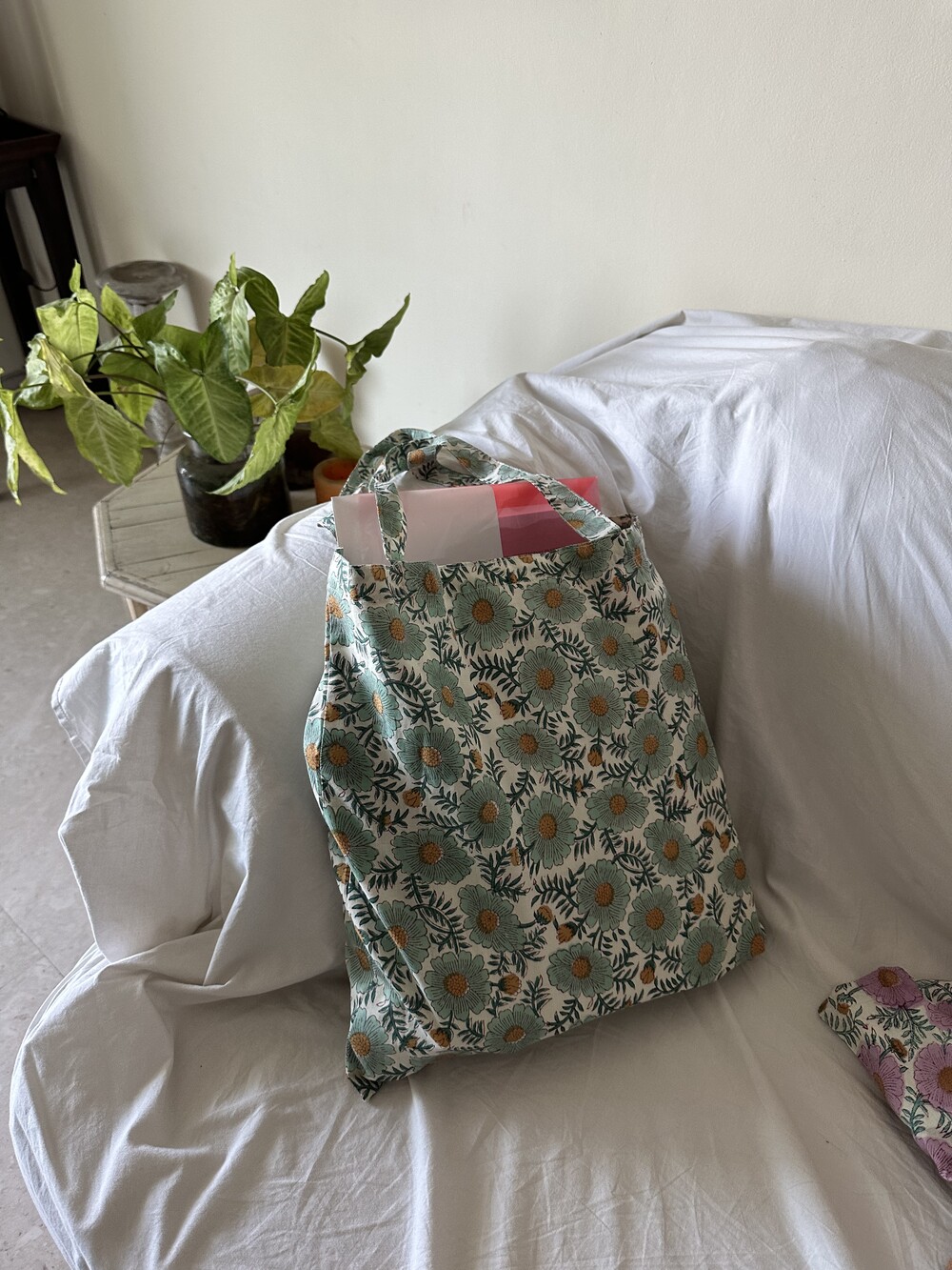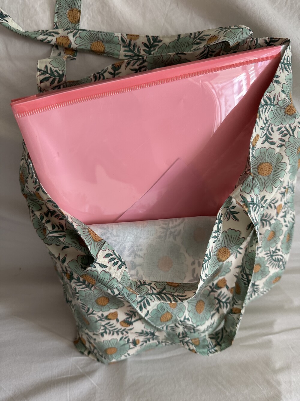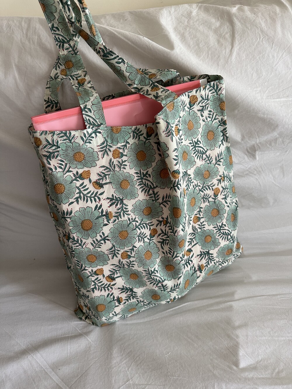 36*38센티 사이즈의 가방이고,라이닝을 덧대어서 만들었어요.한정수량으로 만들어졌고 바로 발송가능해요 ❤️수입재품으로 단순변심 교환힘들고 우드블럭 프란팅이라 들쑥날쑥 손맛있어요