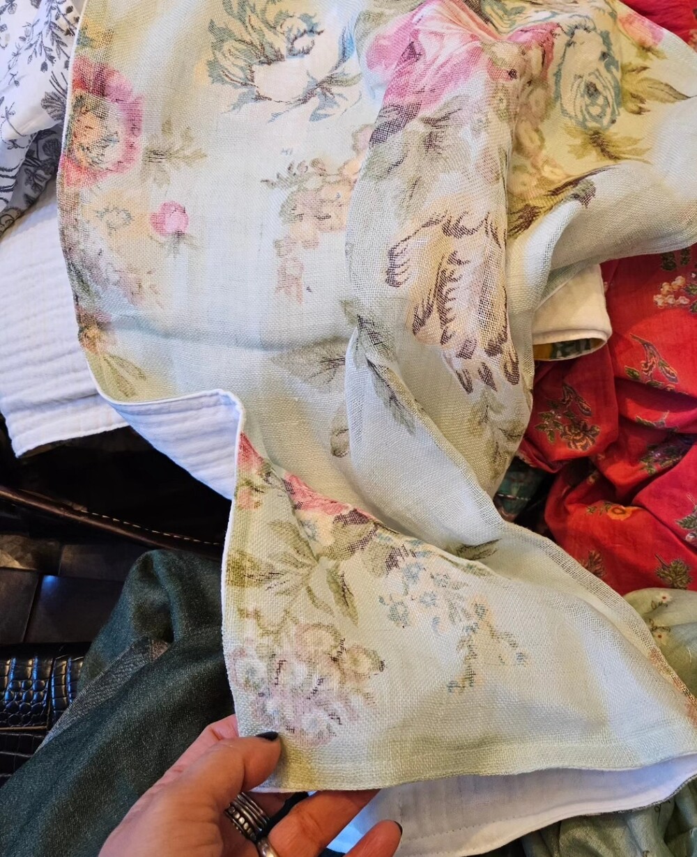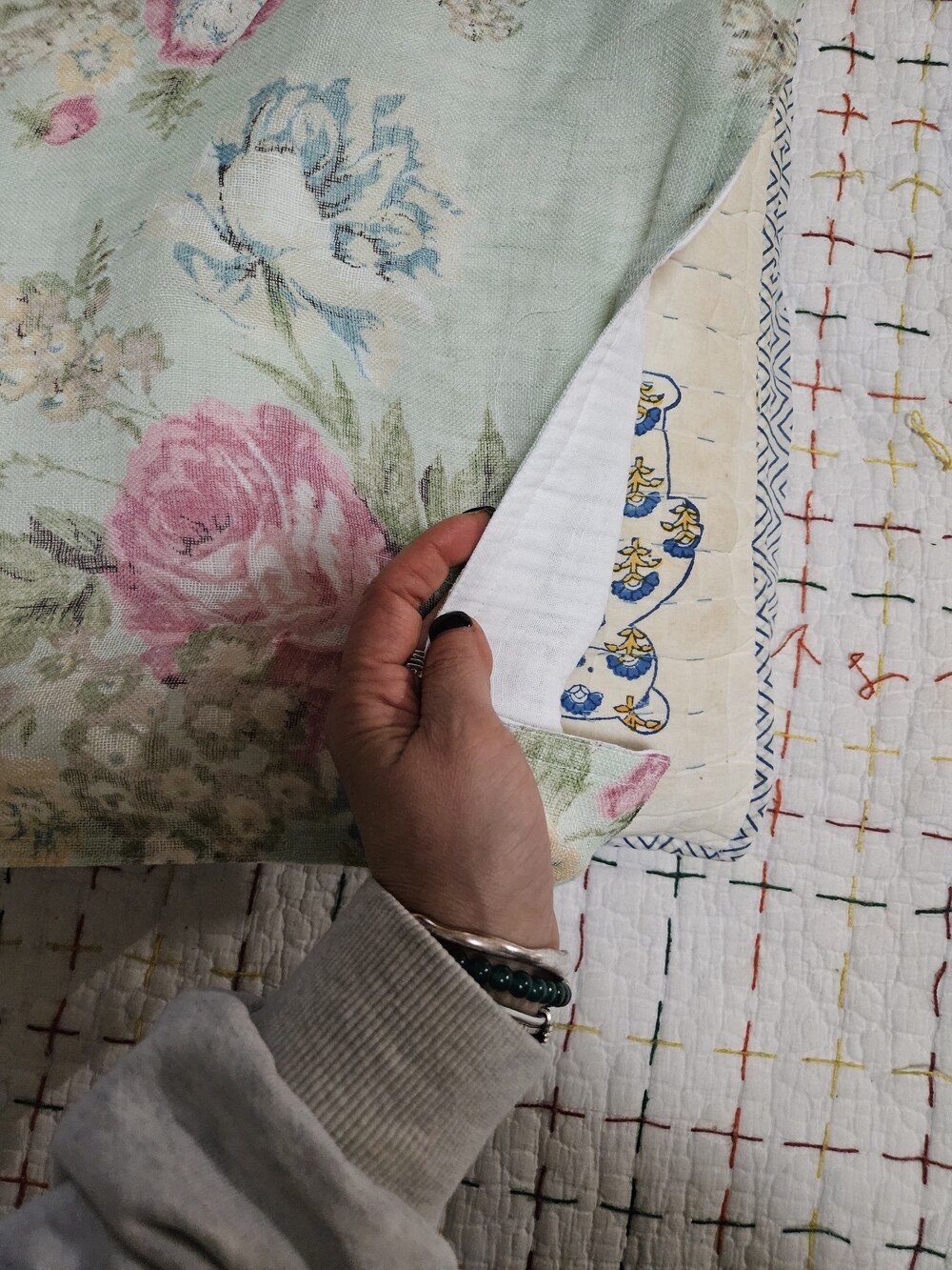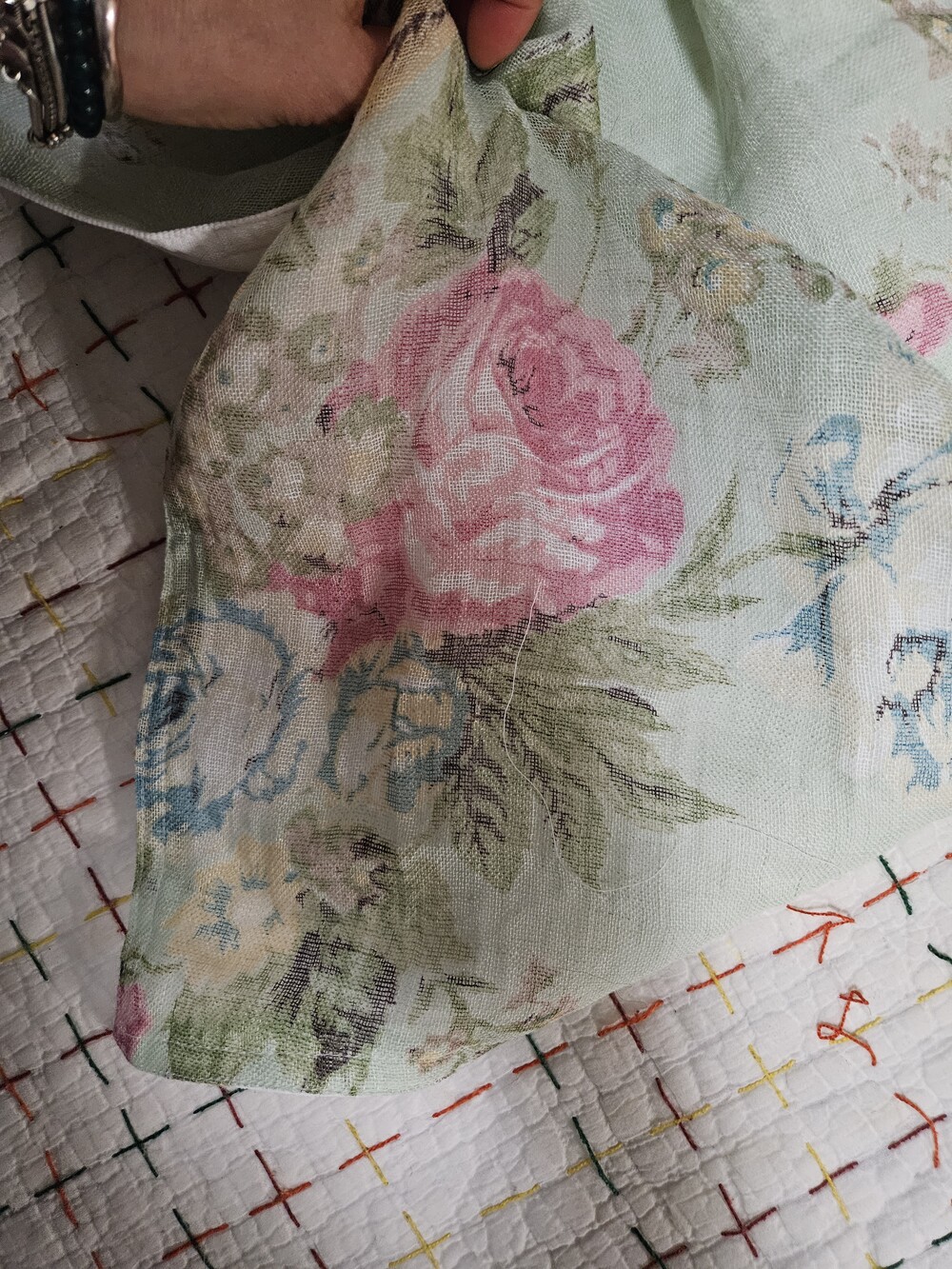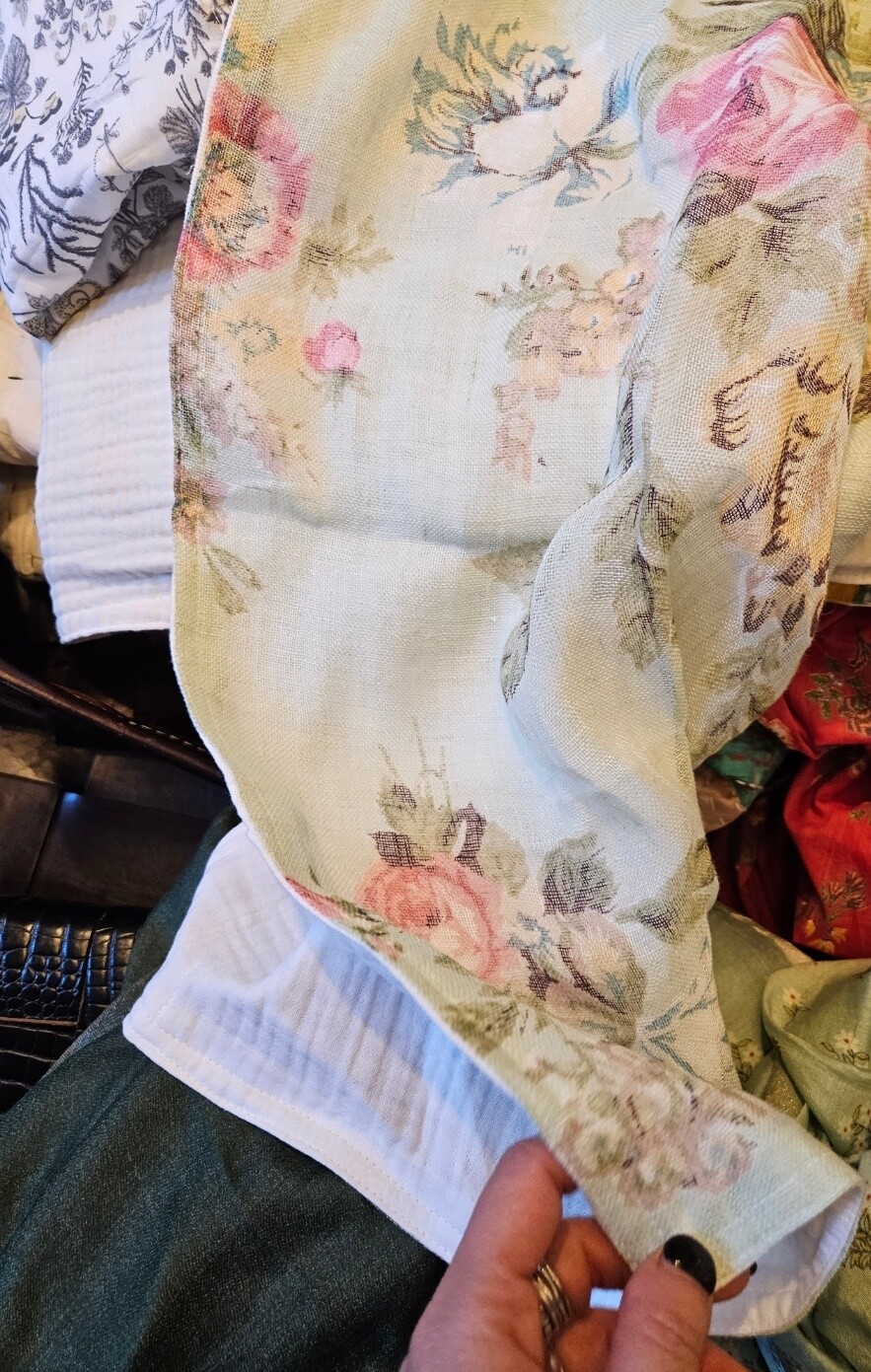 베갯닛위에도 턱받이나 세안수건으로도 연말선물하시기에도 정말. 아름다운 민트와 핑크로즈에요.