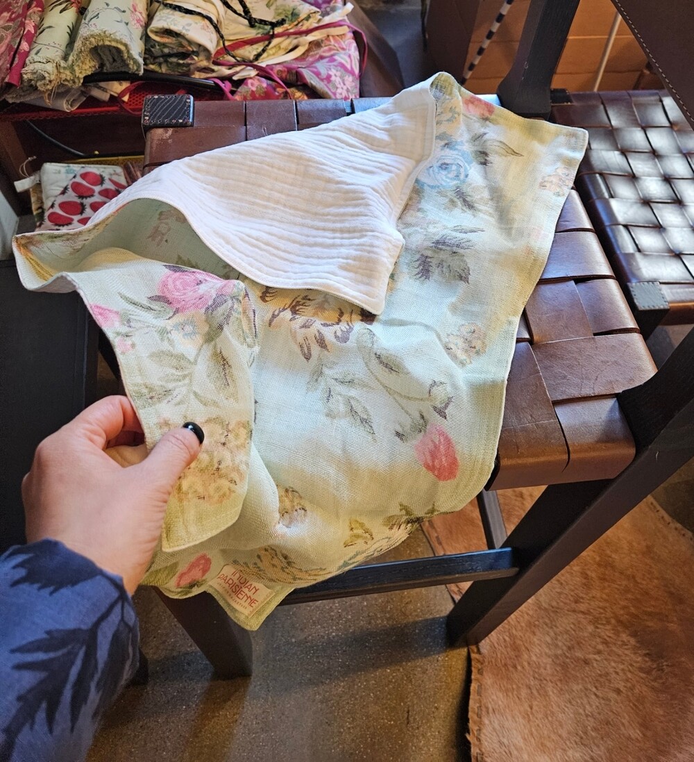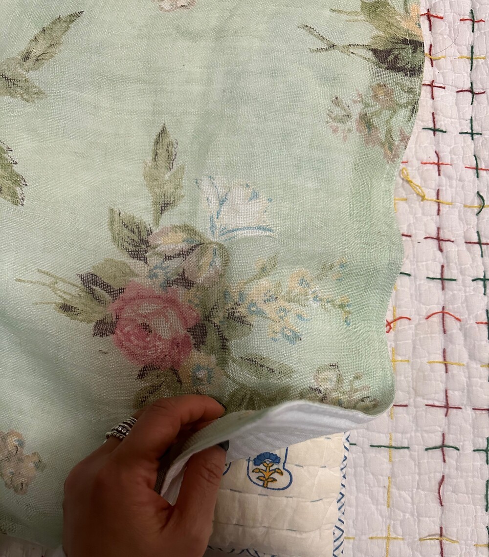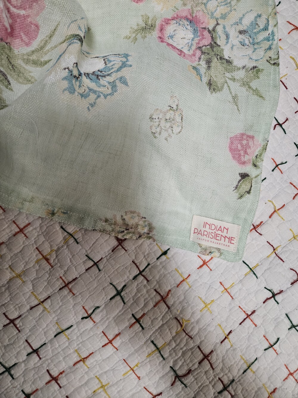 베갯닛위에도 턱받이나 세안수건으로도 연말선물하시기에도 정말. 아름다운 민트와 핑크로즈에요.