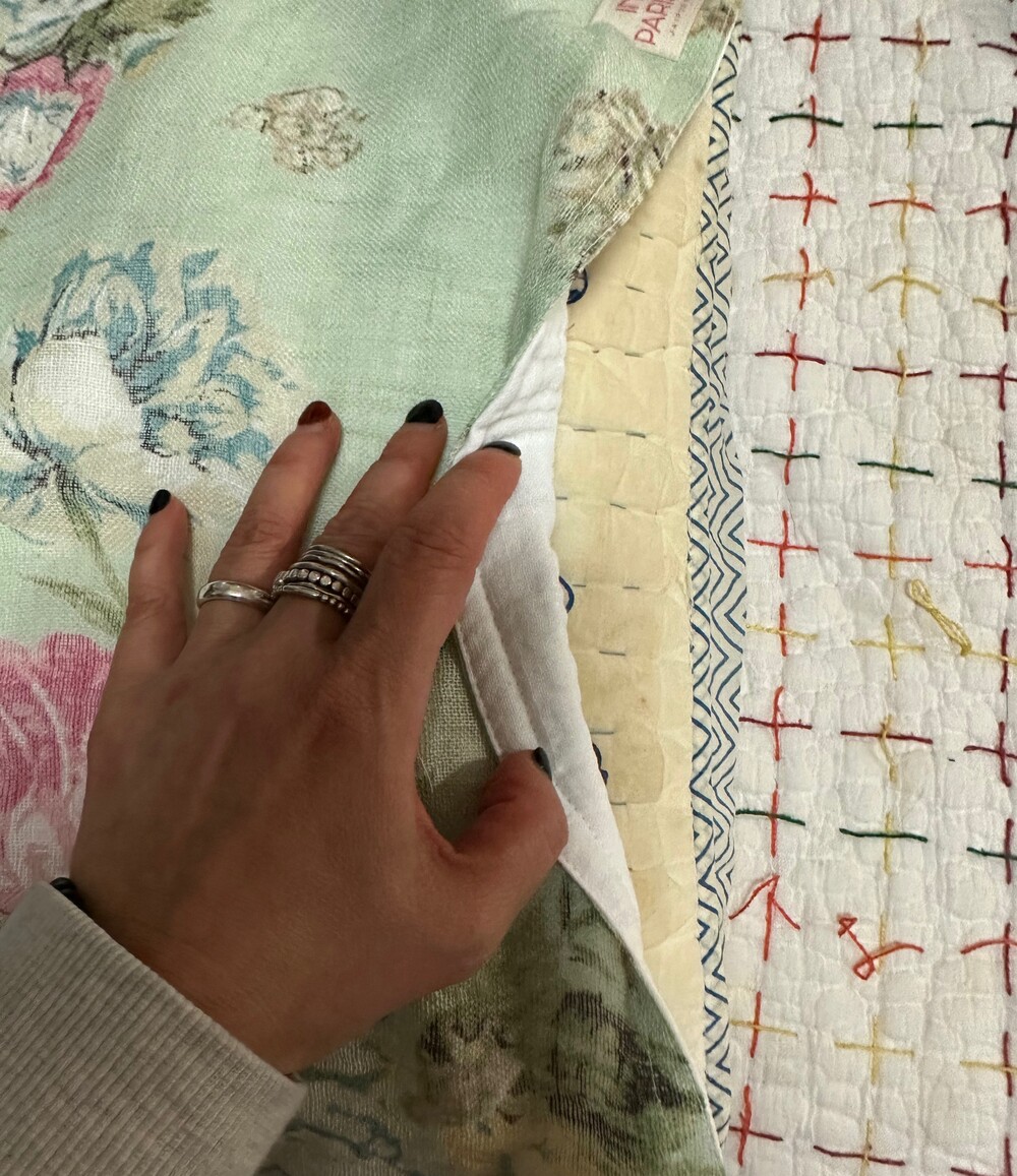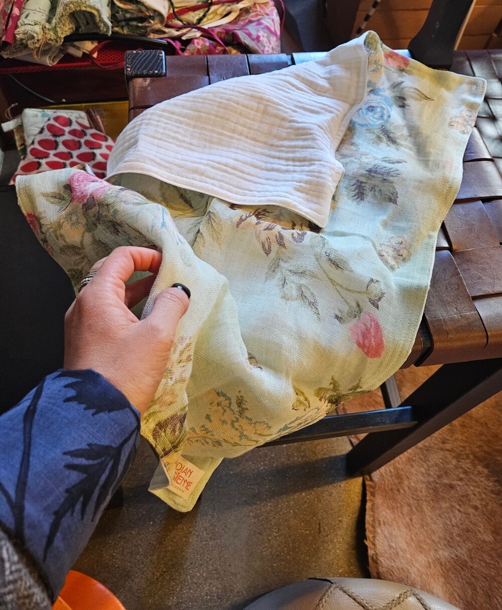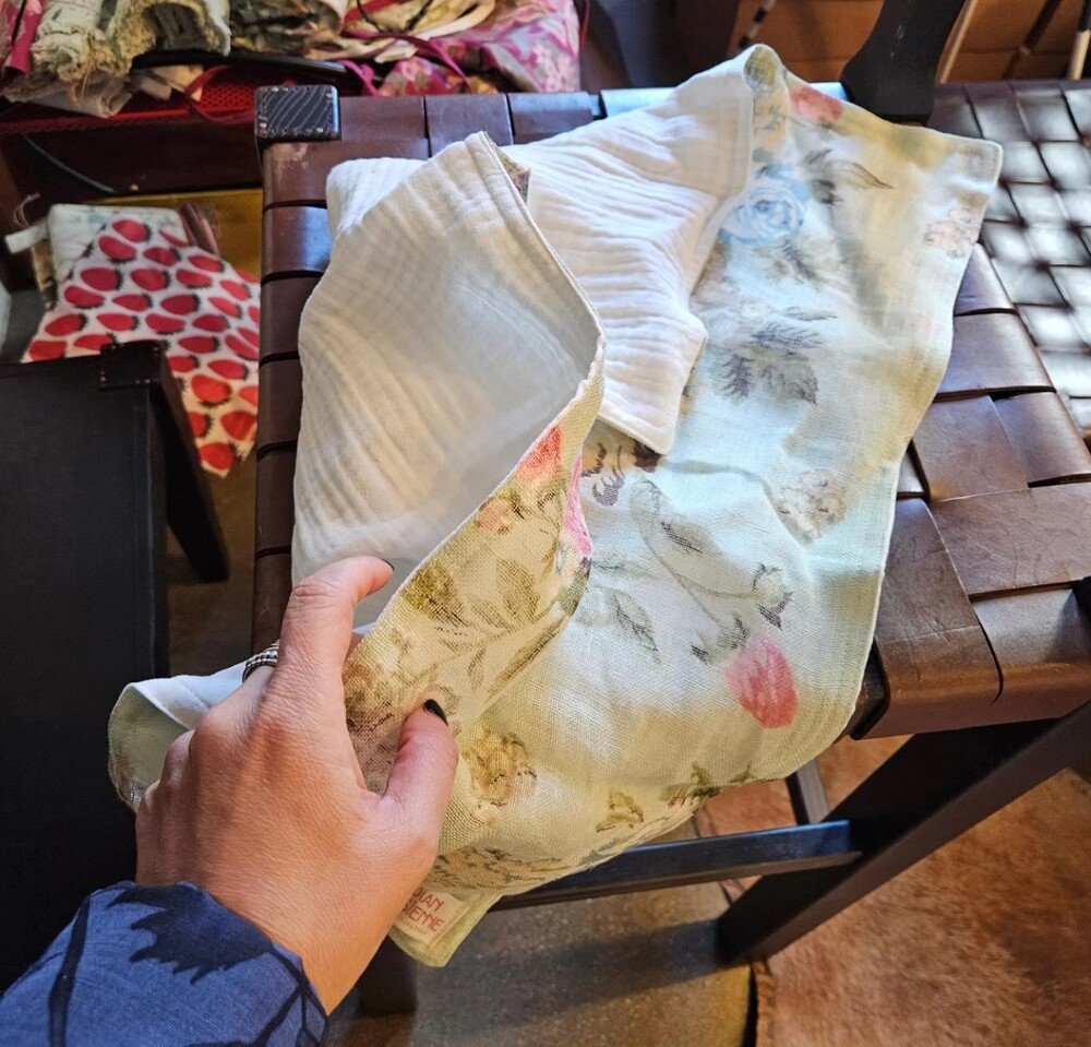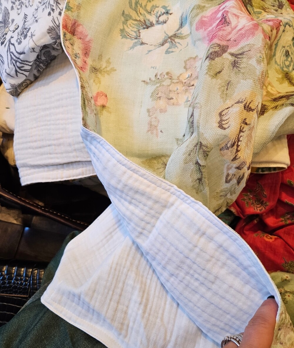 베갯닛위에도 턱받이나 세안수건으로도 연말선물하시기에도 정말. 아름다운 민트와 핑크로즈에요.