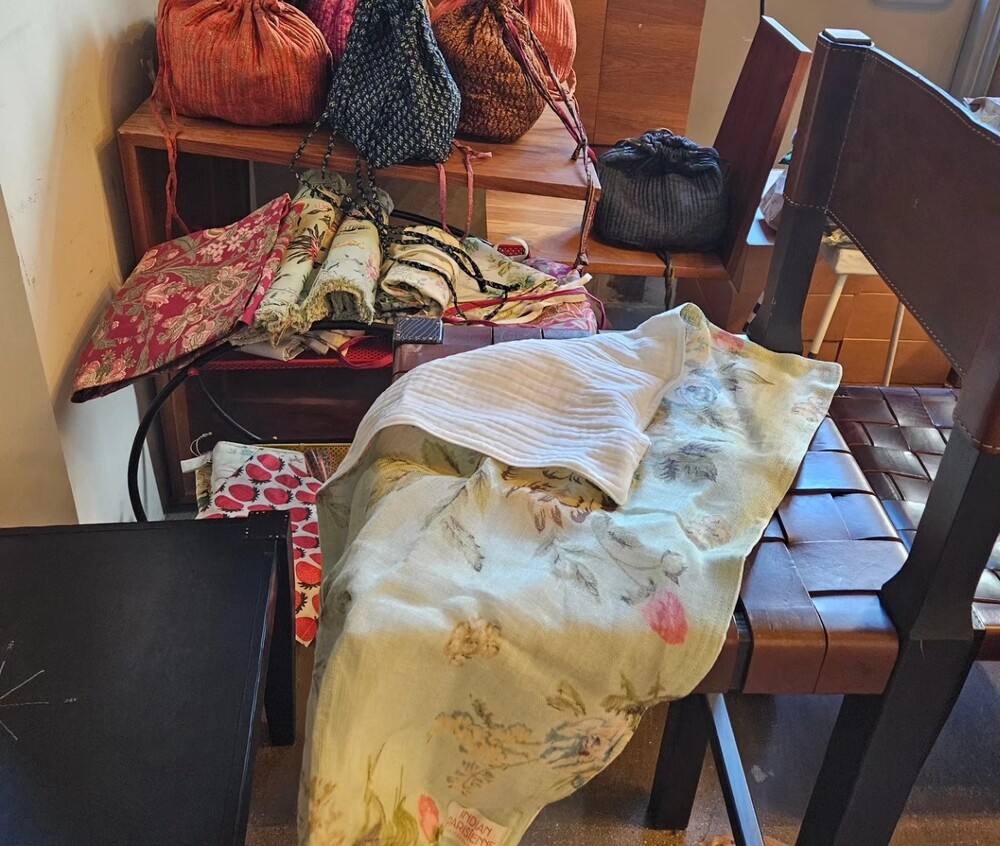 30*30 솜포함 린넨쿠션(커버세탁 가능)과 40*60사이즈의 린넨과 거즈조합의 수건이에요.